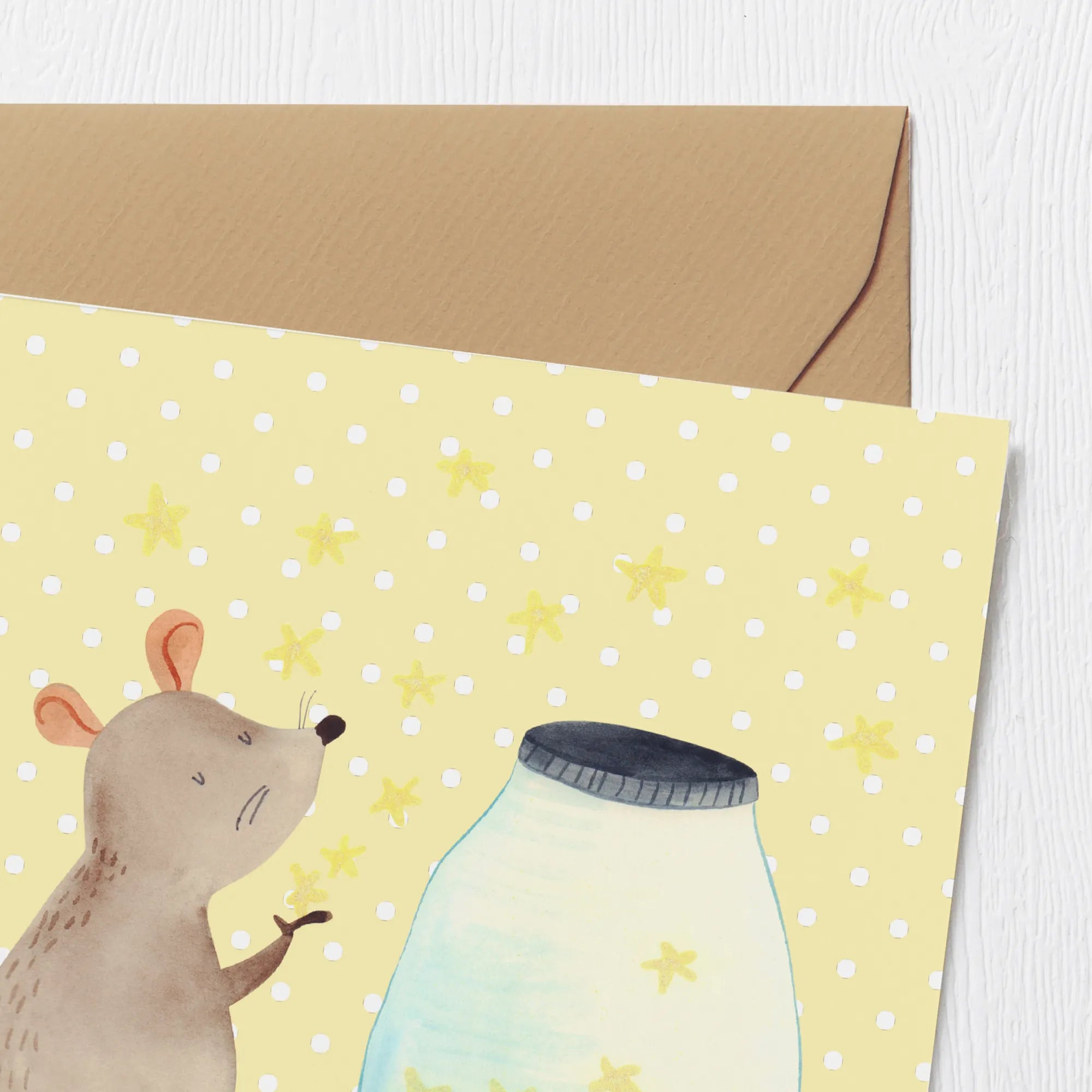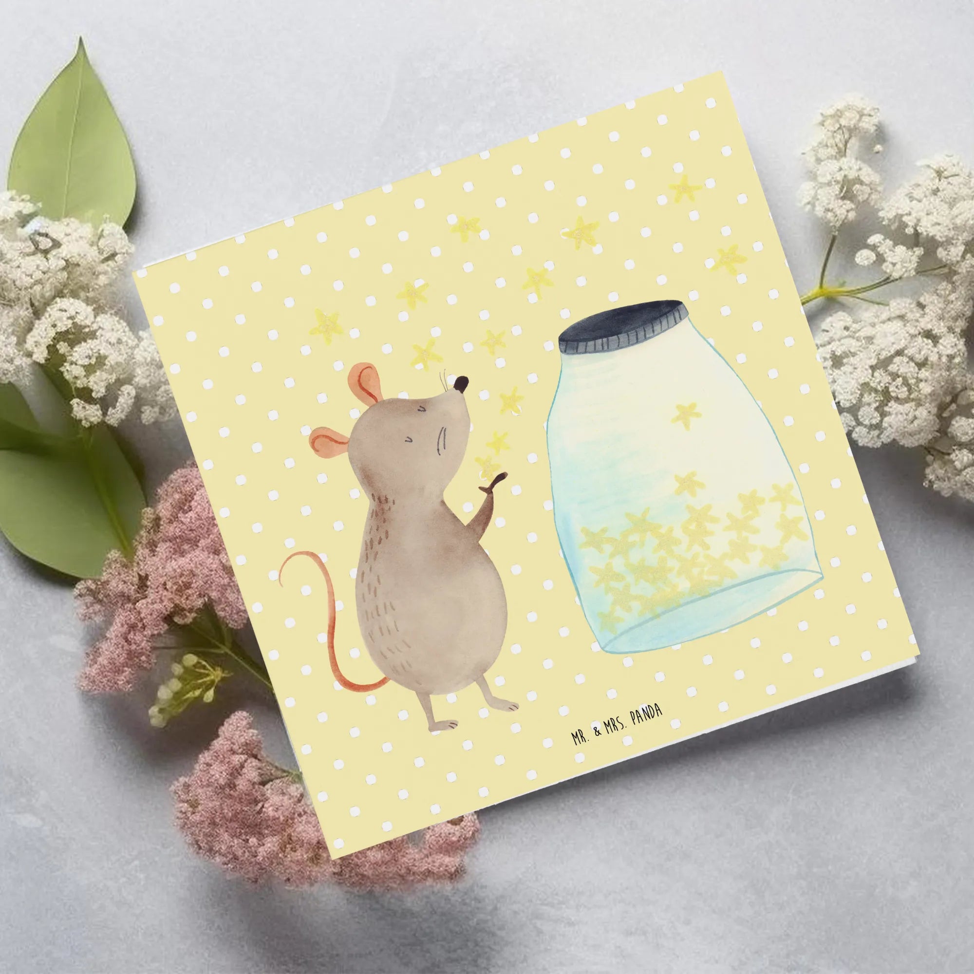 Entdecke die zauberhafte Deluxe Karte mit dem Motiv Maus Sterne aus der Kollektion Small World von Mr. & Mrs. Panda!