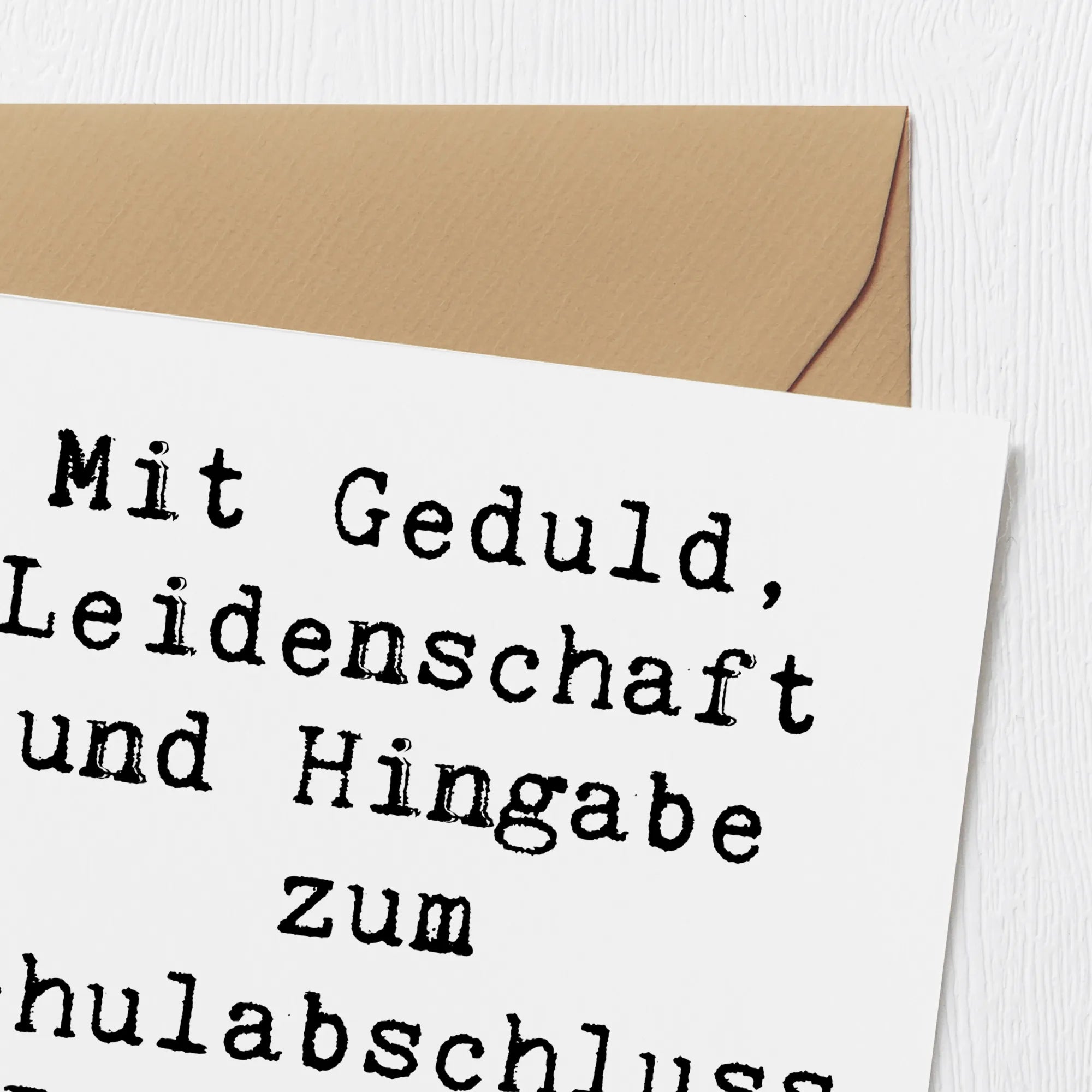 Die Vorderseite der Karte ist mit dem schönen Spruch 'Mit Geduld, Leidenschaft und Hingabe zum Schulabschluss - Danke, liebe Lehrer!' bedruckt, während die Innenseite matt und blanko gehalten ist, damit du deine persönlichen Worte ganz einfach hinzufügen kannst. Der edle Umschlag, der im Lieferumfang enthalten ist, rundet das Ganze ab und sorgt dafür, dass deine Danksagung nicht nur gehört, sondern auch gesehen wird.