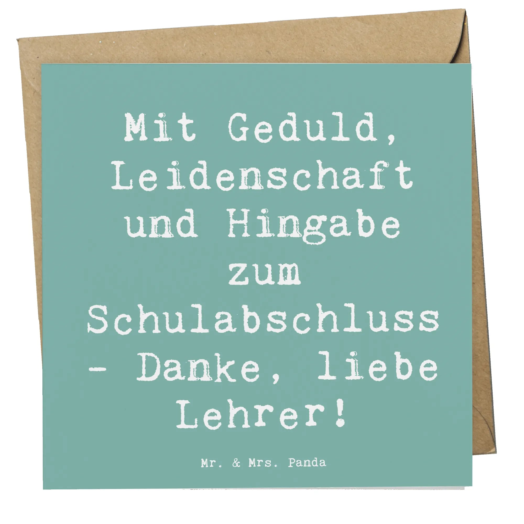 Die Deluxe Karte "Lehrer" aus der Dankeschön-Kollektion von Mr. & Mrs. Panda ist das perfekte Geschenk, um Deinen Dank und Deine Wertschätzung für einen herausragenden Lehrer auszudrücken. Diese hochwertige Klappkarte ist mit einem liebevollen Spruch bedruckt: "Mit Geduld, Leidenschaft und Hingabe zum Schulabschluss - Danke, liebe Lehrer!" Sie ist eine wunderbare Möglichkeit, um sich bei den Menschen zu bedanken, die einen im Leben gefördert und unterstützt haben.