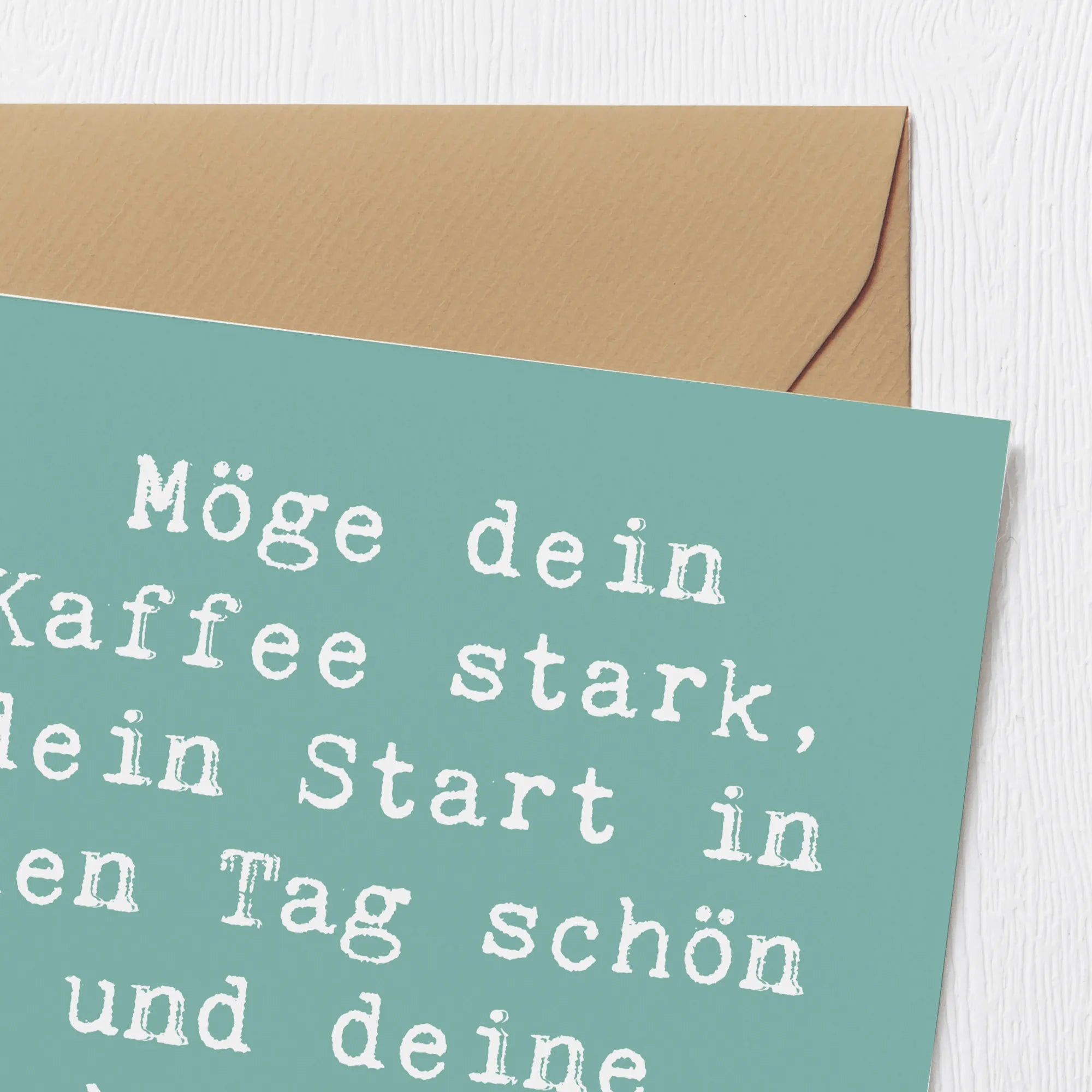 Auf der Vorderseite der Karte befinden sich liebevolle Sprüche, die das Herz erwärmen und zum Nachdenken anregen. Der Slogan: "Möge dein Kaffee stark, dein Start in den Tag schön und deine Woche herrlich sein!" bringt nicht nur einen Lächeln auf die Lippen, sondern ist auch ein toller Motivator für den Alltag.