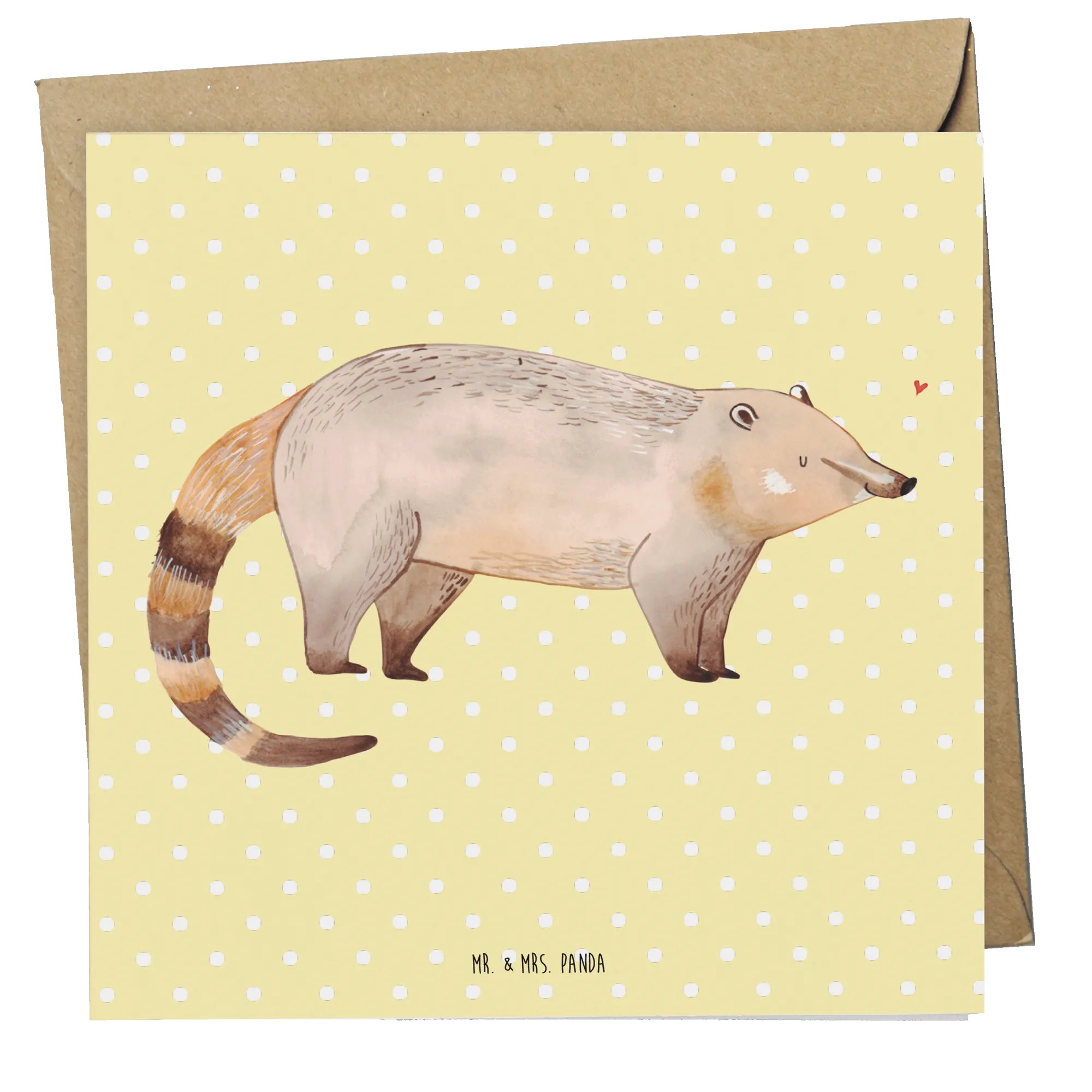 Die maßgefertigte Deluxe Karte mit dem süßen Nasenbär-Motiv aus der bezaubernden Small World Kollektion von Mr. & Mrs. Panda ist das perfekte Geschenk für jeden Anlass. Egal, ob Du einen Geburtstag, eine Hochzeit, ein Jubiläum oder einen anderen feierlichen Moment feierst - diese hochwertige Grußkarte bringt garantiert Freude und Glück.