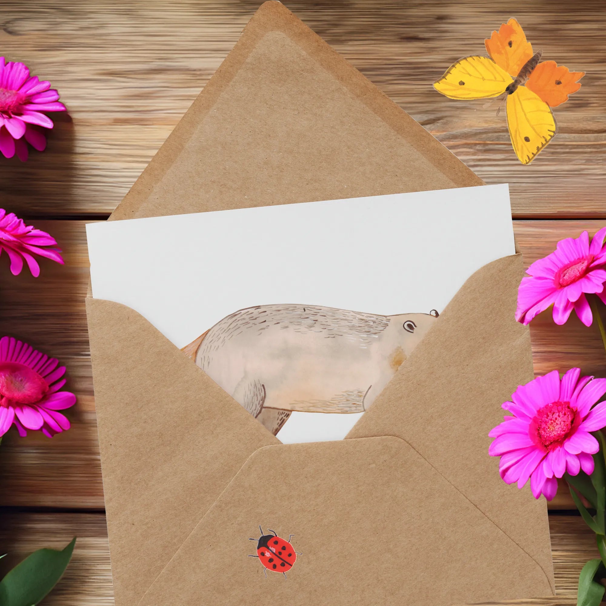 Beachte die hochwertigen Materialien: Diese wunderschöne Karte ist aus 300 Gramm starkem Karton gefertigt und besticht durch ihre hochglänzend veredelte Vorderseite sowie eine matte Innenseite, die das Beschriften erleichtert. Der niedliche Nasenbär auf der Vorderseite mit seiner charmanten Nase und den großen Augen bringt jeden zum Schmunzeln und verbreitet gute Laune.
