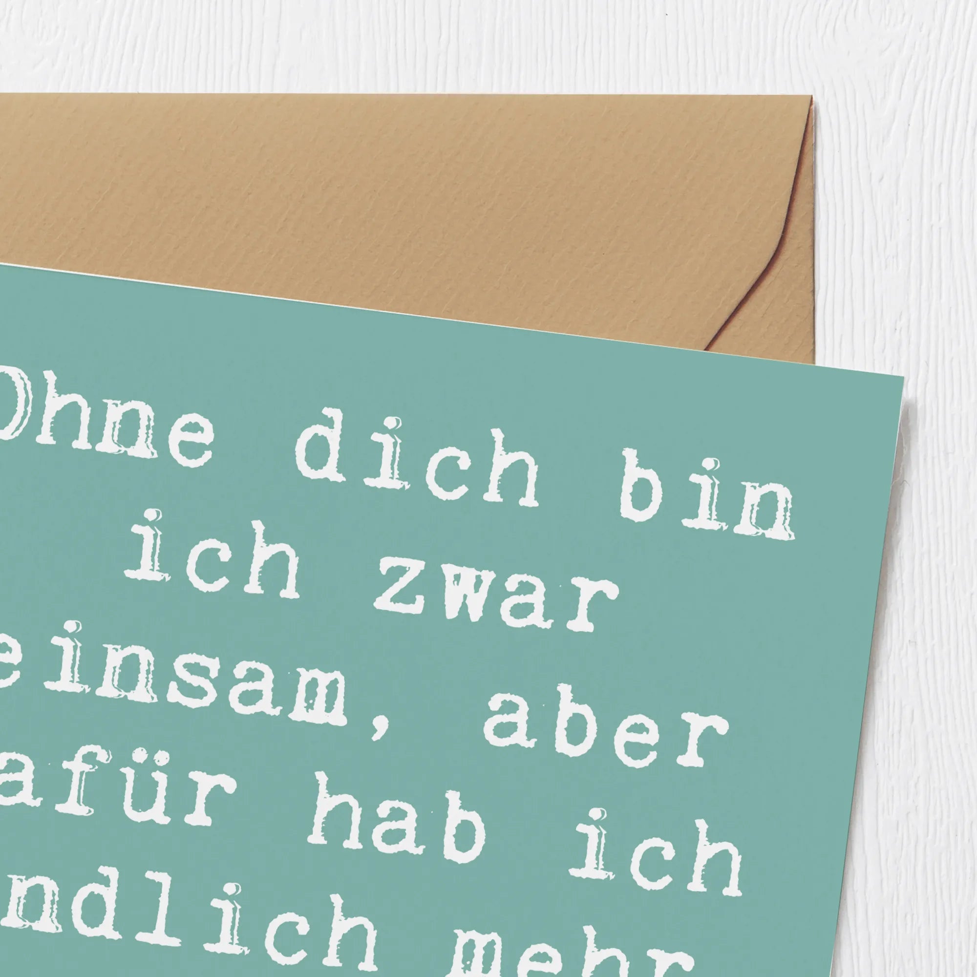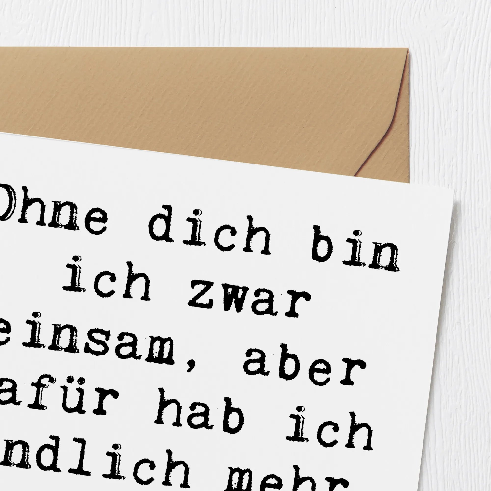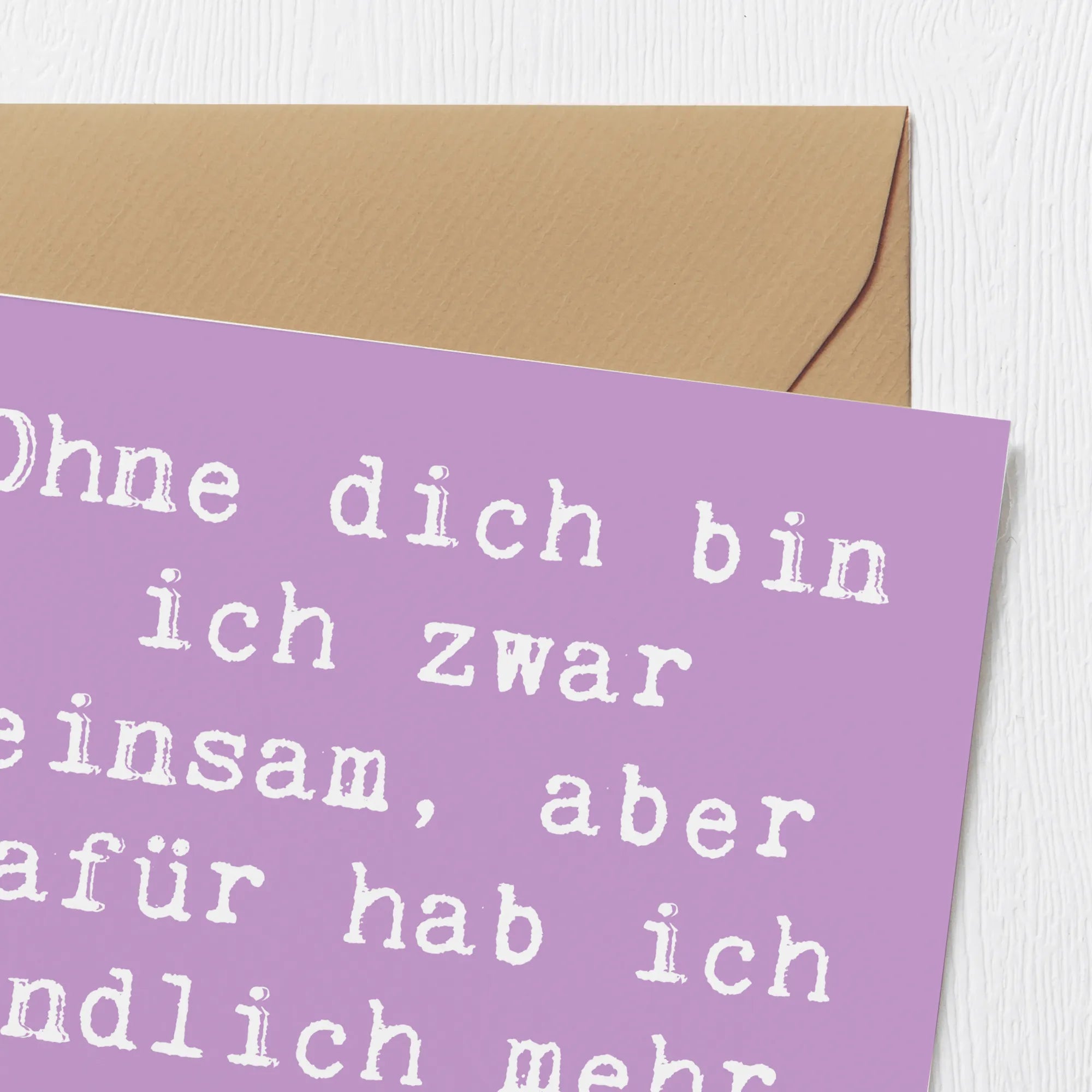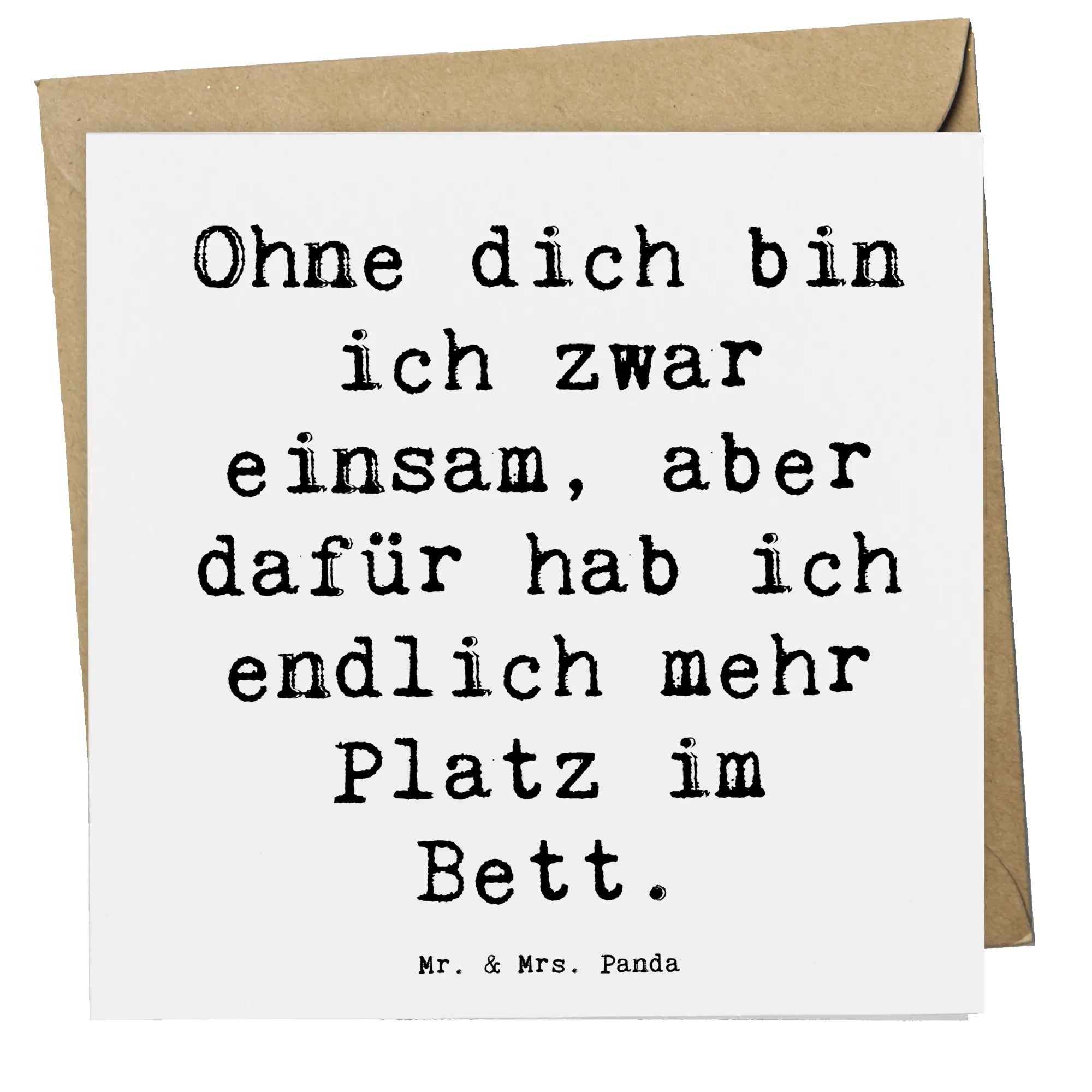 Der witzige Spruch "Ohne dich bin ich zwar einsam, aber dafür hab ich endlich mehr Platz im Bett" bringt mit einem Augenzwinkern etwas Humor in die bedrückende Zeit des Liebeskummers. Hergestellt aus hochwertigem, 300 Gramm schwerem Karton und mit einer hochglänzenden Vorderseite versehen, wird diese Karte garantiert zum Hingucker.