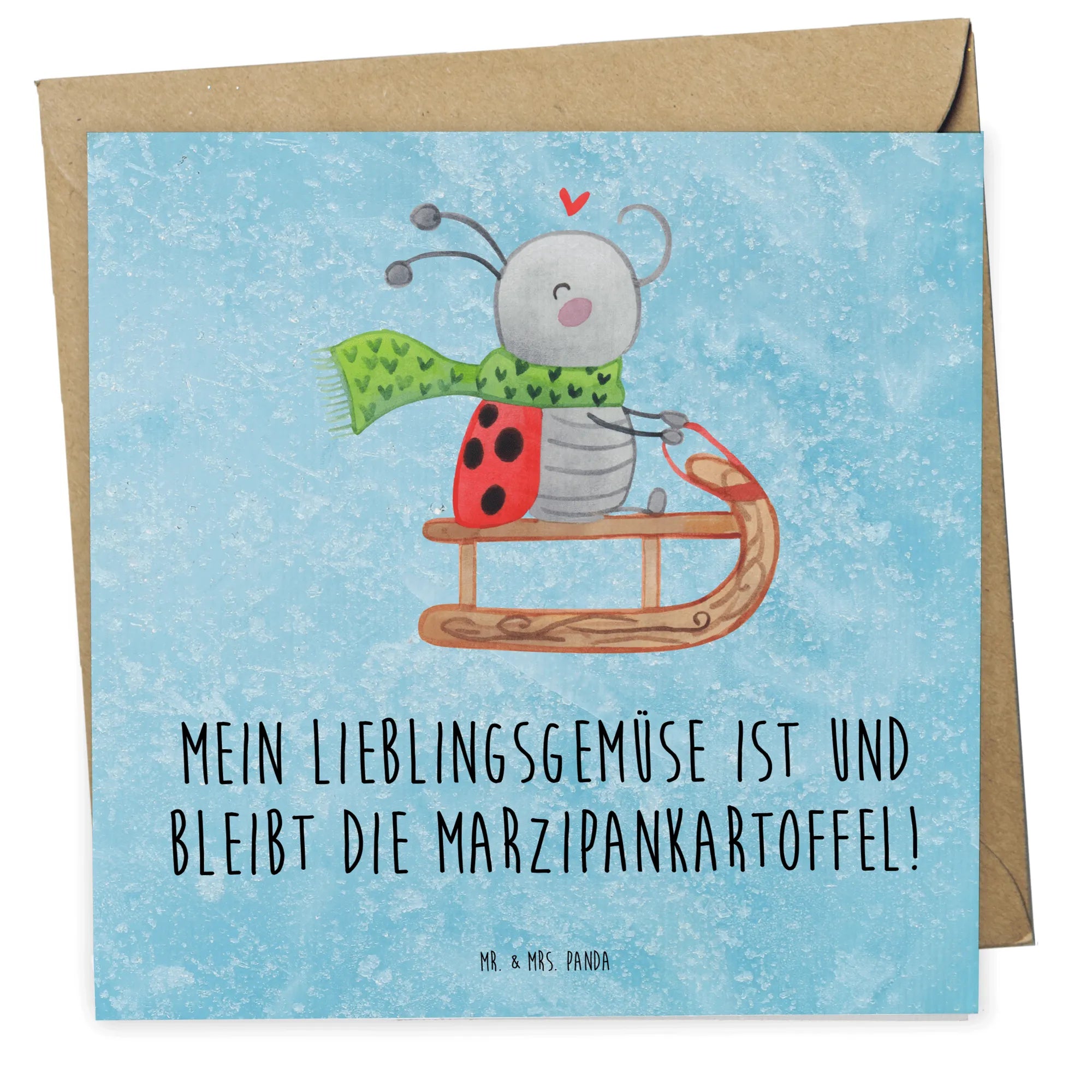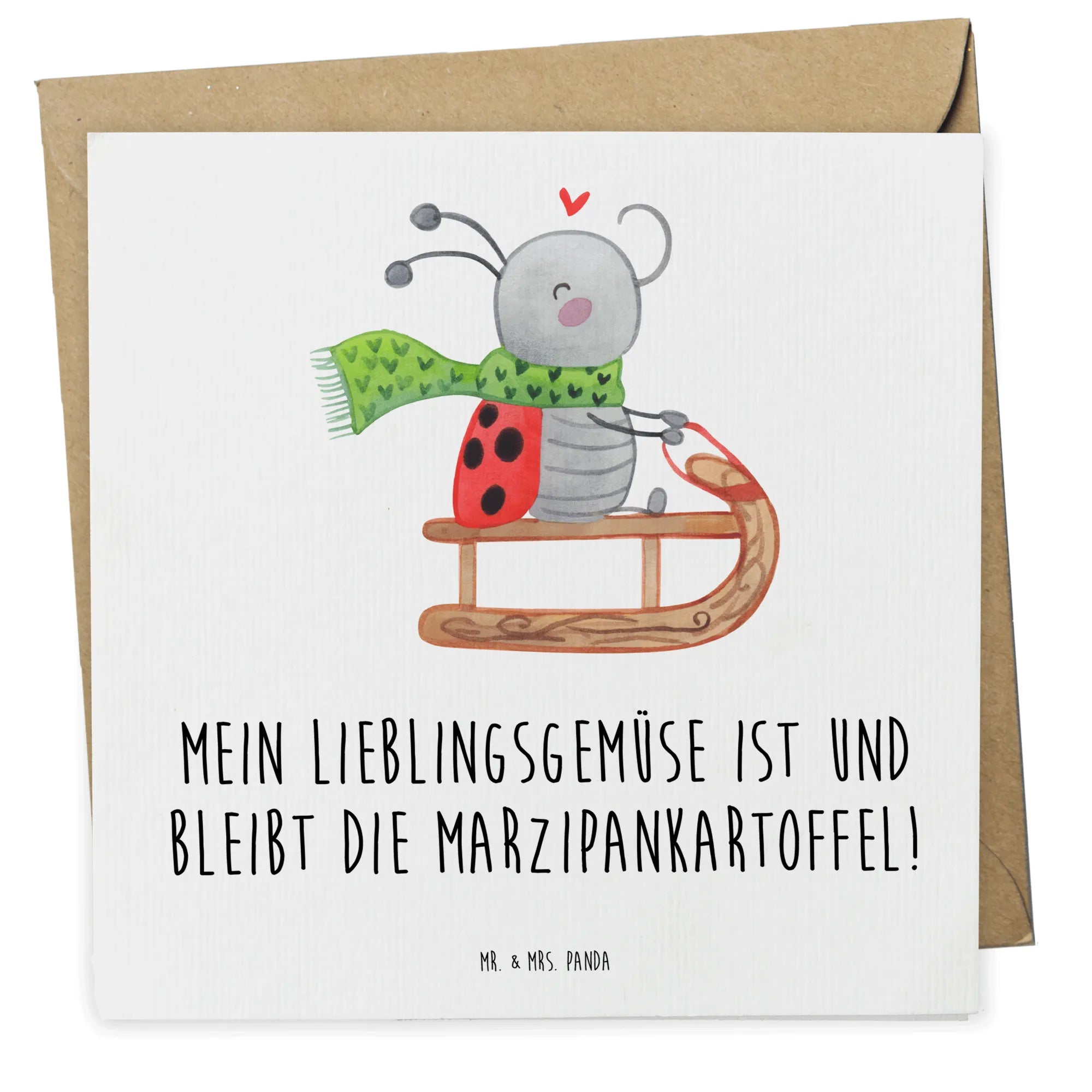Ob für einen schönen Adventsgruss, eine Einladung zur Weihnachtsfeier oder einfach als nette Aufmerksamkeit während der kalten Wintertage, diese Karte ist immer eine gute Wahl. Die Kombination aus dem winterlichen Motiv und dem liebevollen Spruch "Mein Lieblingsgemüse ist und bleibt die Marzipankartoffel!" wird sicherlich ein Lächeln auf die Gesichter deiner Liebsten zaubern.