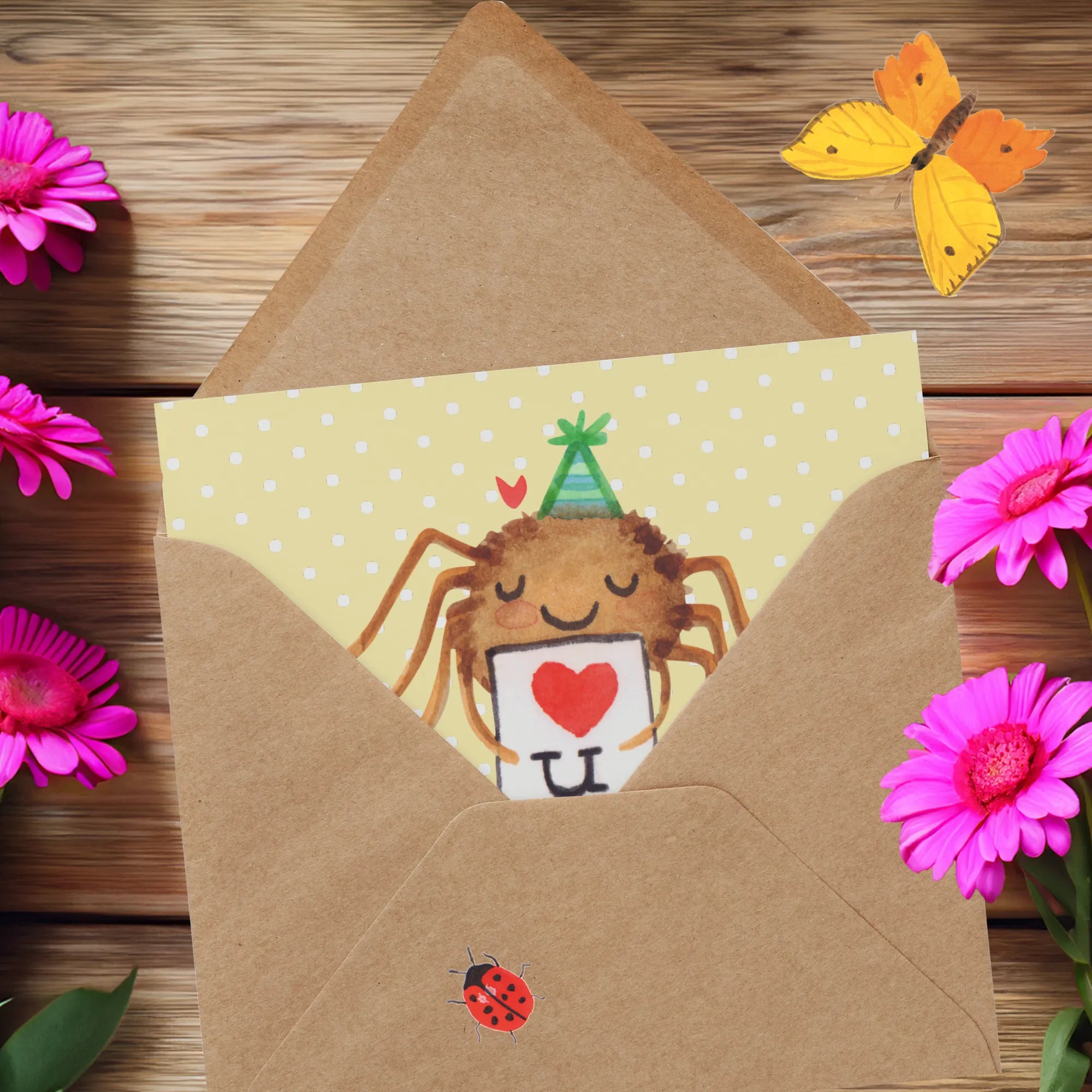 Die Deluxe Karte "Spinne Agathe Brief" aus der zauberhaften Kollektion von Mr. & Mrs. Panda ist das perfekte Geschenk für all jene, die ihre Liebsten mit einem ganz besonderen Gruß überraschen möchten! Ob zum Geburtstag, zur Hochzeit oder einfach nur, um mal "Ich denke an dich" zu sagen – diese Karte ist ein wahrer Liebesbeweis.