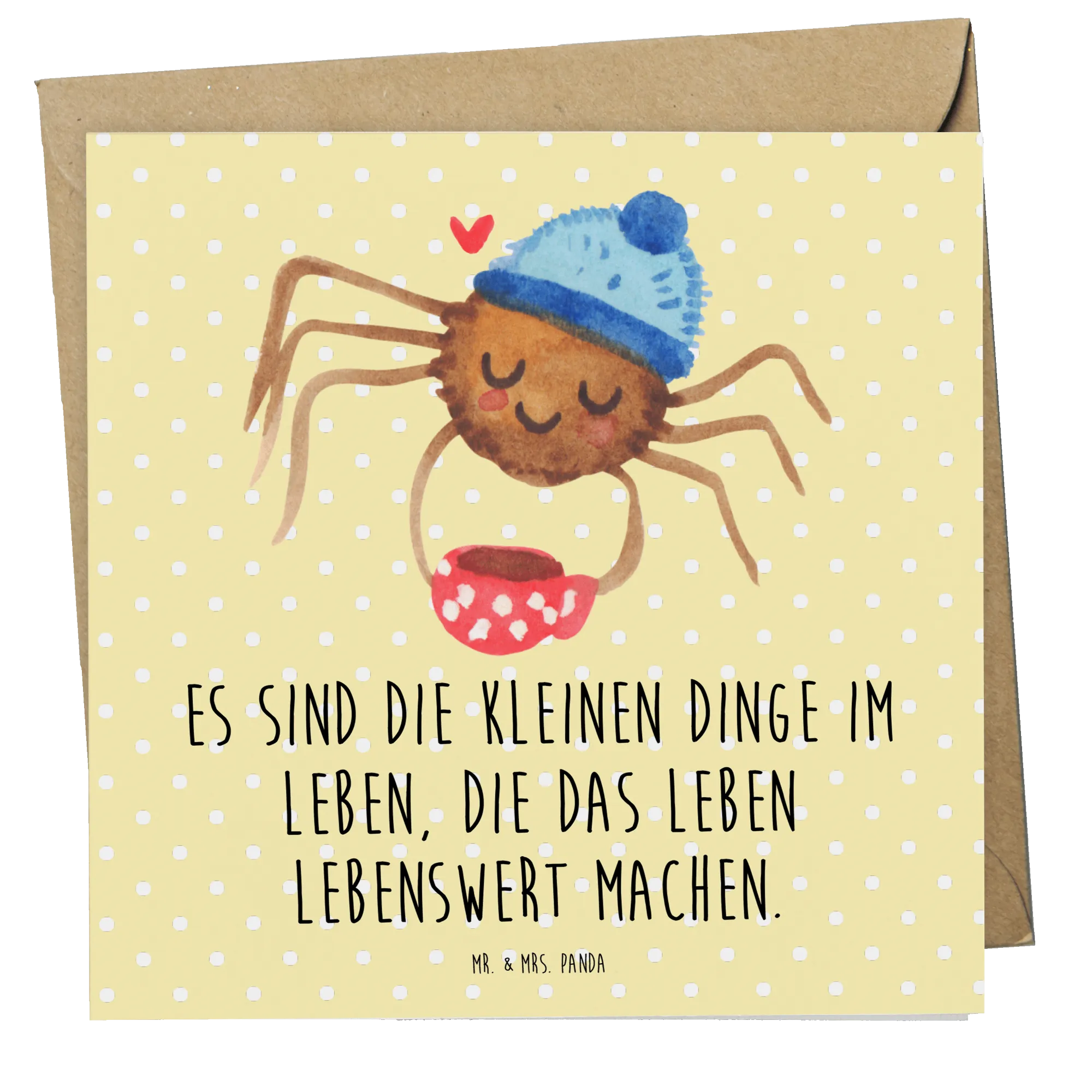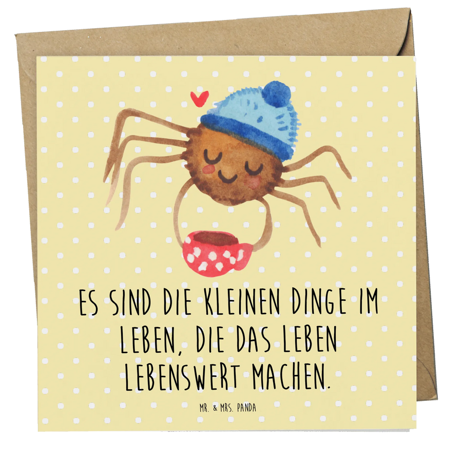Die Deluxe Karte mit dem Motiv Spinne Agathe Kaffee von Mr. & Mrs. Panda ist das perfekte Geschenk für all jene, die die kleinen Dinge im Leben schätzen!