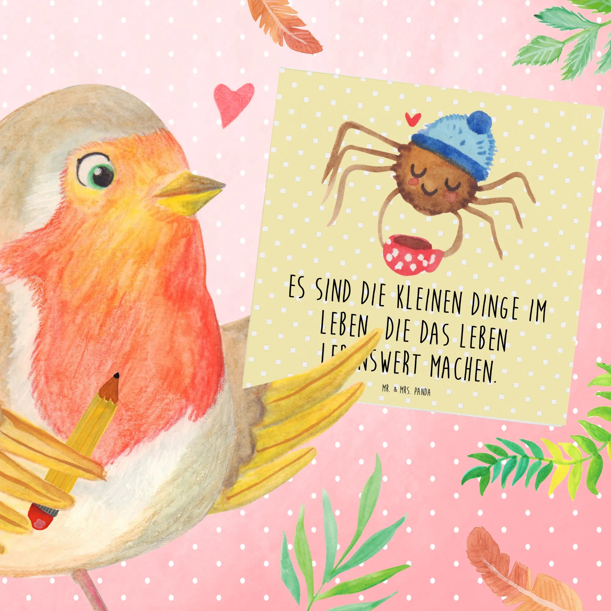 Diese Karte gehört zur einzigartigen Spinne Agathe Kollektion, die durch die emotionale Geschichte von Mrs. Panda und ihrer kleinen Spinne Agathe inspiriert wurde. Mit liebevollen Aquarellmotiven, die alle von Mrs. Panda handgezeichnet wurden, sprichst Du nicht nur die Herzen der Empfänger an, sondern auch das Deiner Liebsten, die vielleicht zu den Morgenmuffeln gehören, für die Kaffee der Rettungsanker ist.