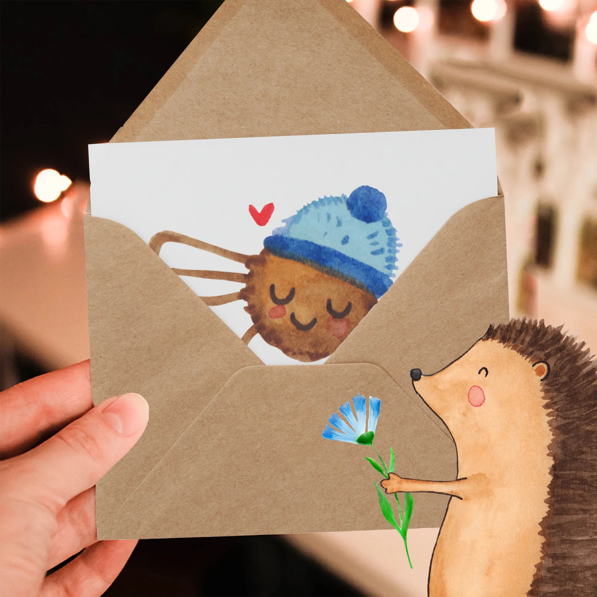 Diese hochwertige Klappkarte hat das Format von 140 mm x 140 mm und wird aus edlem 300 Gramm Karton gefertigt, der sowohl angenehm in der Hand liegt als auch durch seine matte Innenseite ideal zum Beschriften geeignet ist. Die Vorderseite ist hochglänzend veredelt und sorgt dafür, dass das liebevoll handgezeichnete Motiv ein echter Hingucker bleibt. Außerdem kommt die Karte mit einem passenden, eleganten Umschlag, sodass du deine Grüße stilvoll überreichen kannst.