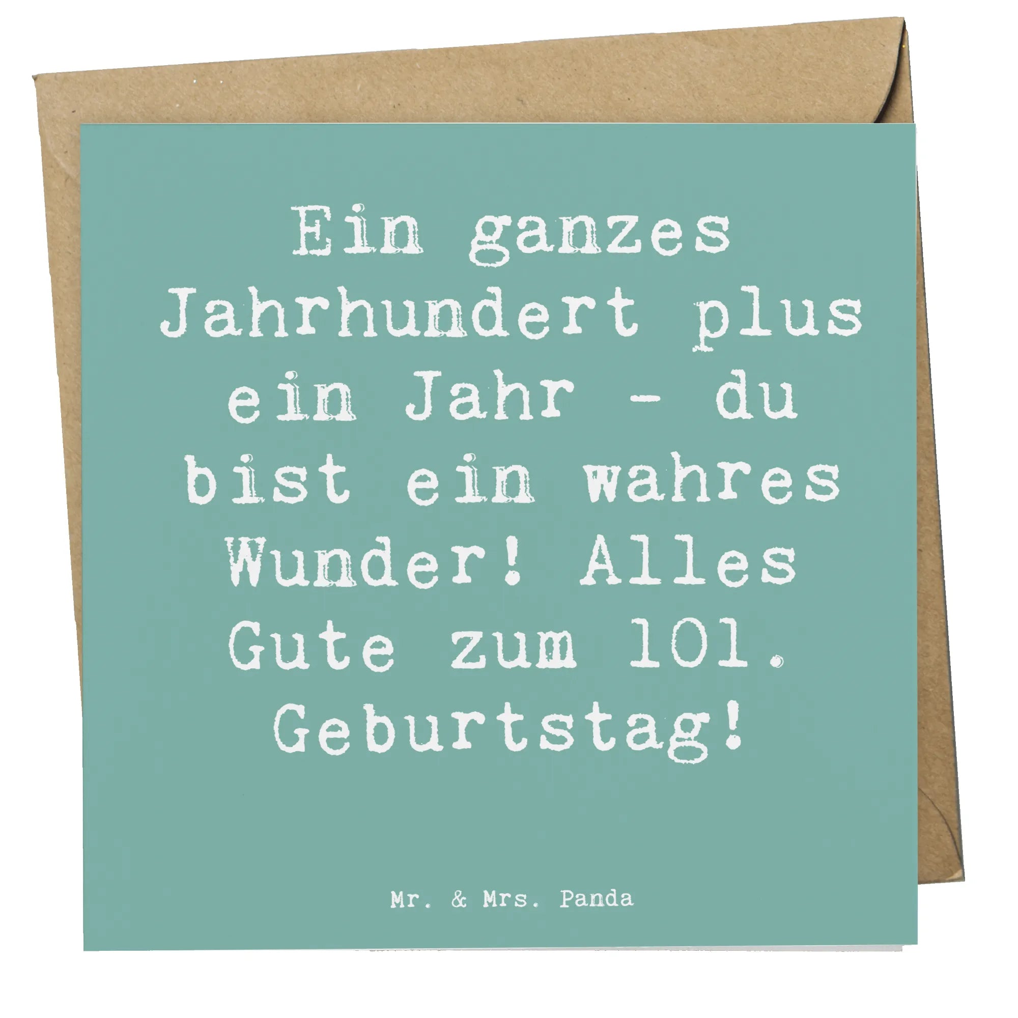Der liebevolle Spruch auf der Vorderseite – "Ein ganzes Jahrhundert plus ein Jahr - du bist ein wahres Wunder! Alles Gute zum 101. Geburtstag!" – fängt die Freude und das Staunen ein, die mit diesem besonderen Anlass verbunden sind. Bei Mr. & Mrs. Panda stehen die niedlichen, handgezeichneten Motive im Vordergrund, die dafür sorgen, dass deine Glückwünsche immer perfekt verpackt sind.
