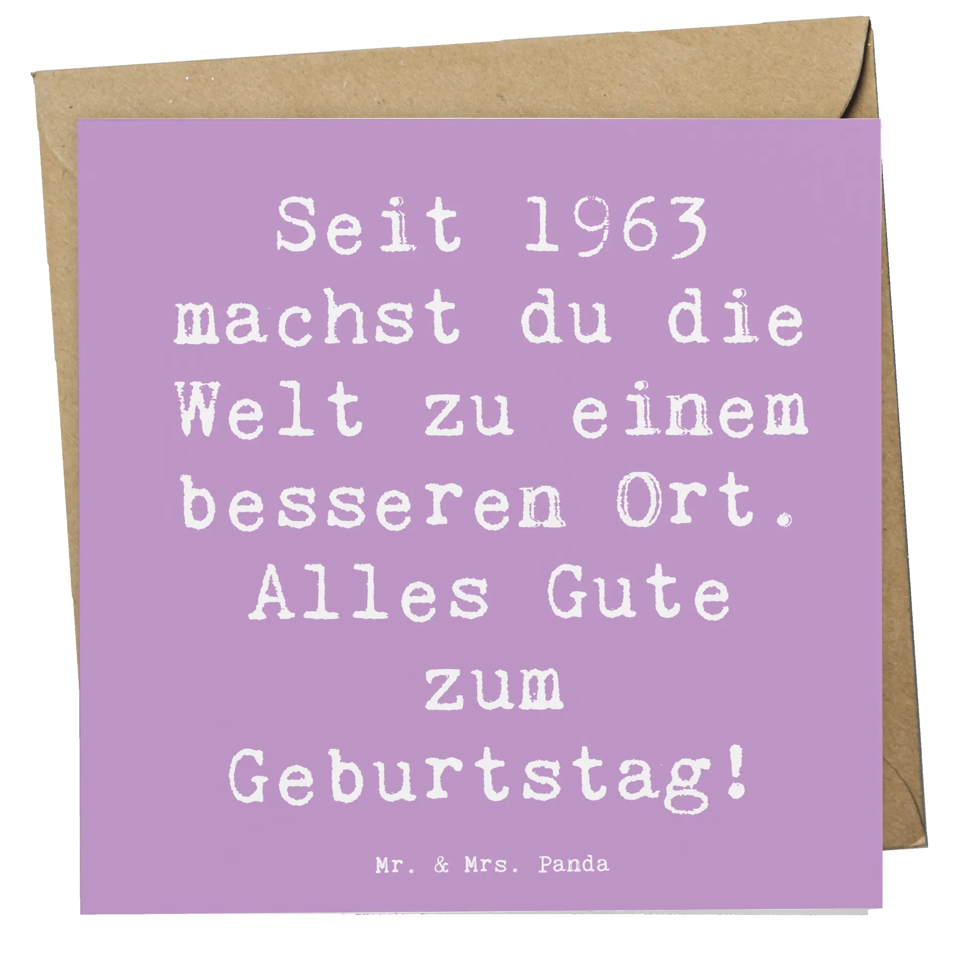 Die Vorderseite der Karte besticht durch einen liebevoll gestalteten Spruch: "Seit 1963 machst du die Welt zu einem besseren Ort. Alles Gute zum Geburtstag!" - ideal, um jemandem an seinem besonderen Tag ein Lächeln zu schenken!