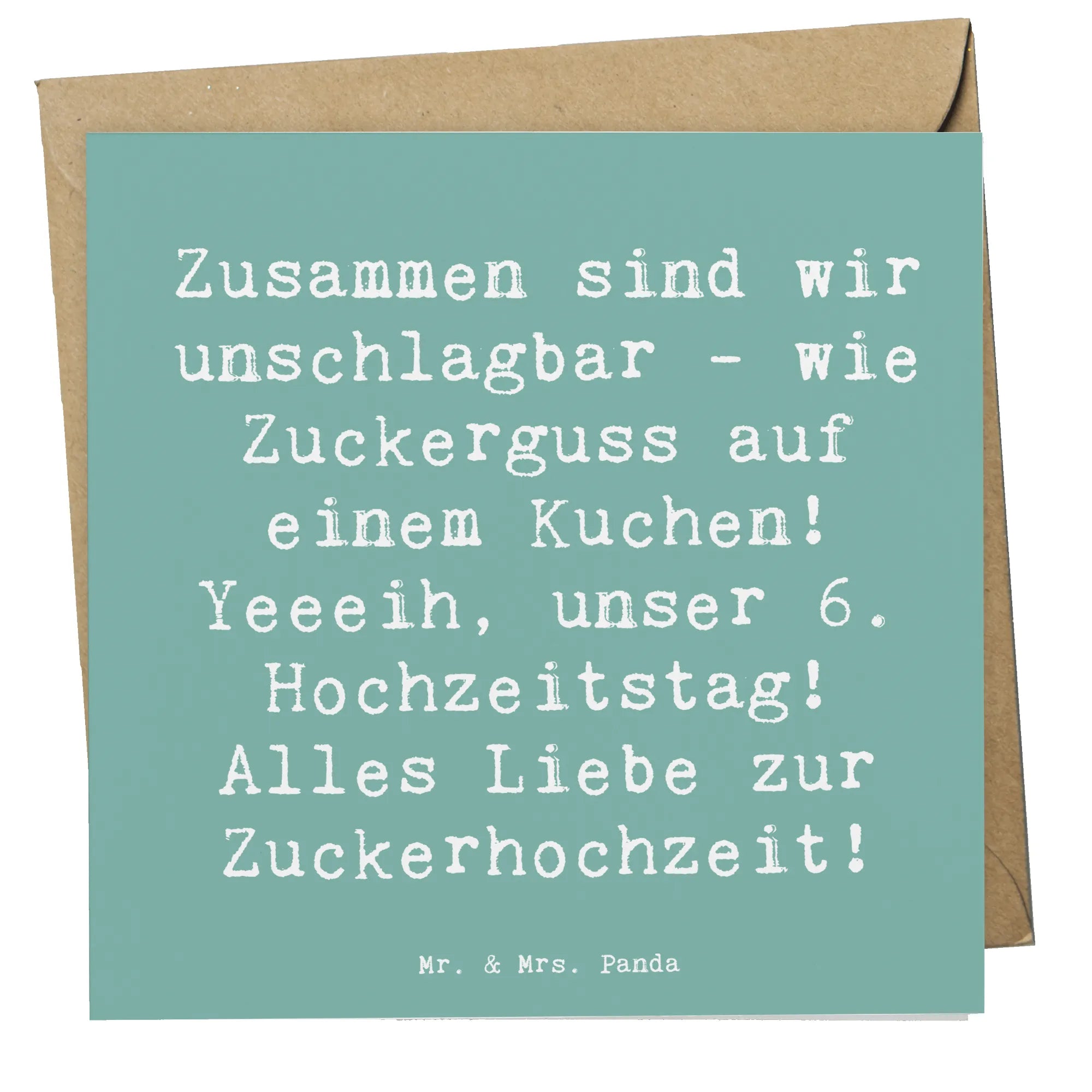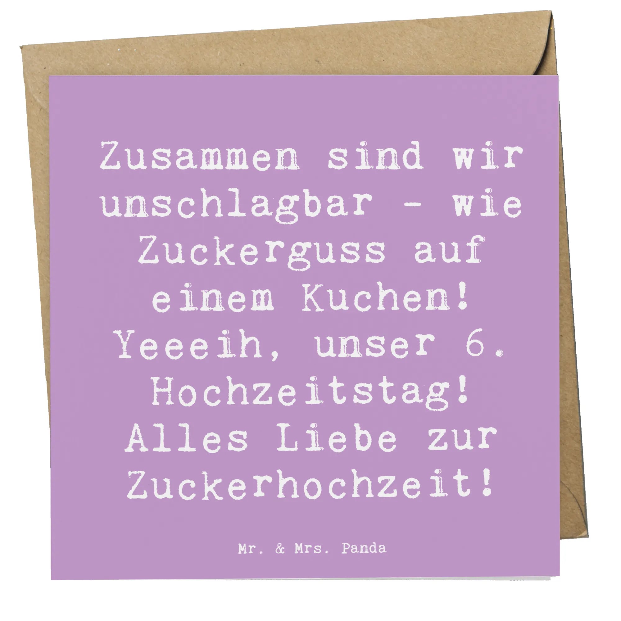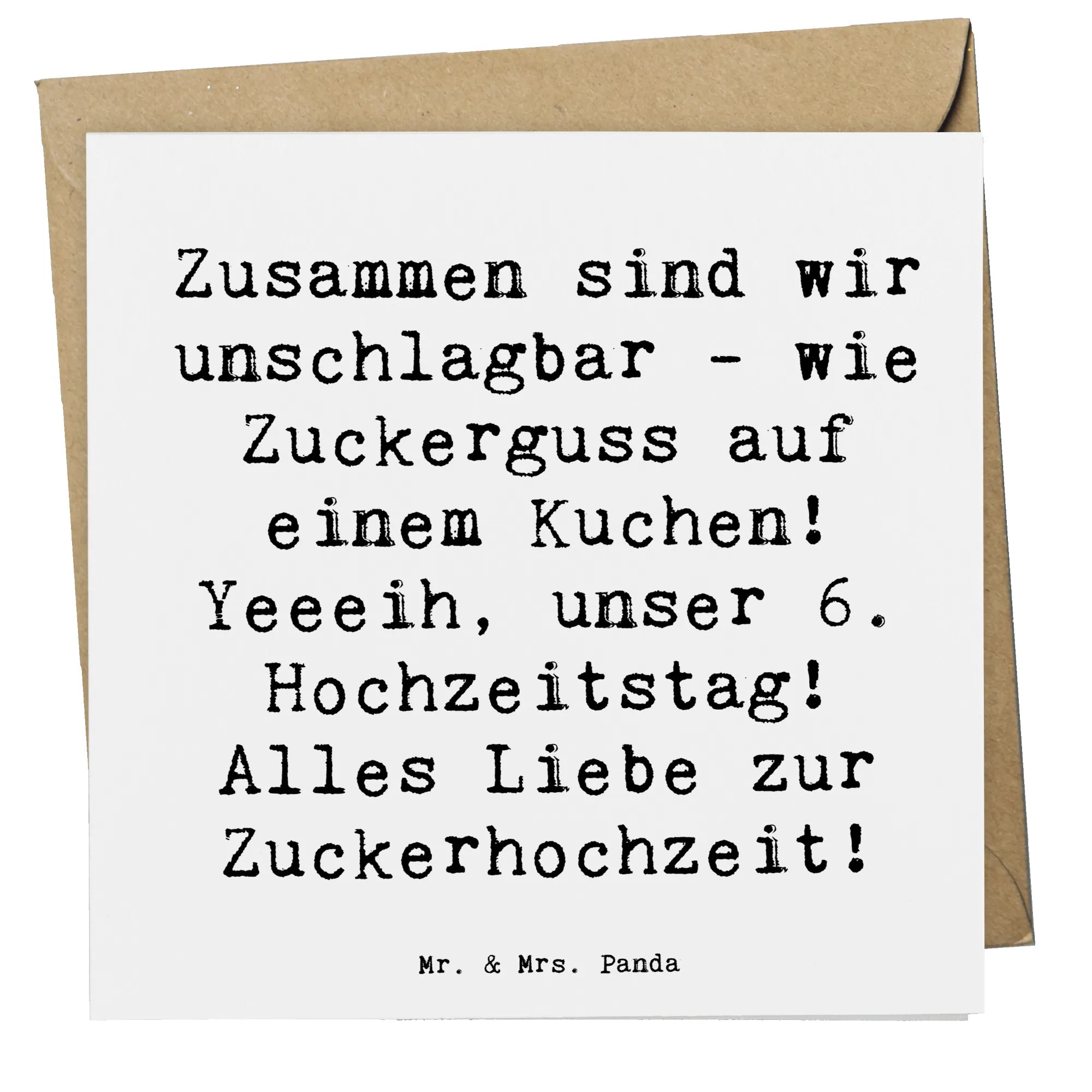 Bist du auf der Suche nach dem perfekten Geschenk für den 6. Hochzeitstag? Dann ist die Deluxe Karte "Zuckerhochzeit" von Mr. & Mrs. Panda genau das richtige!