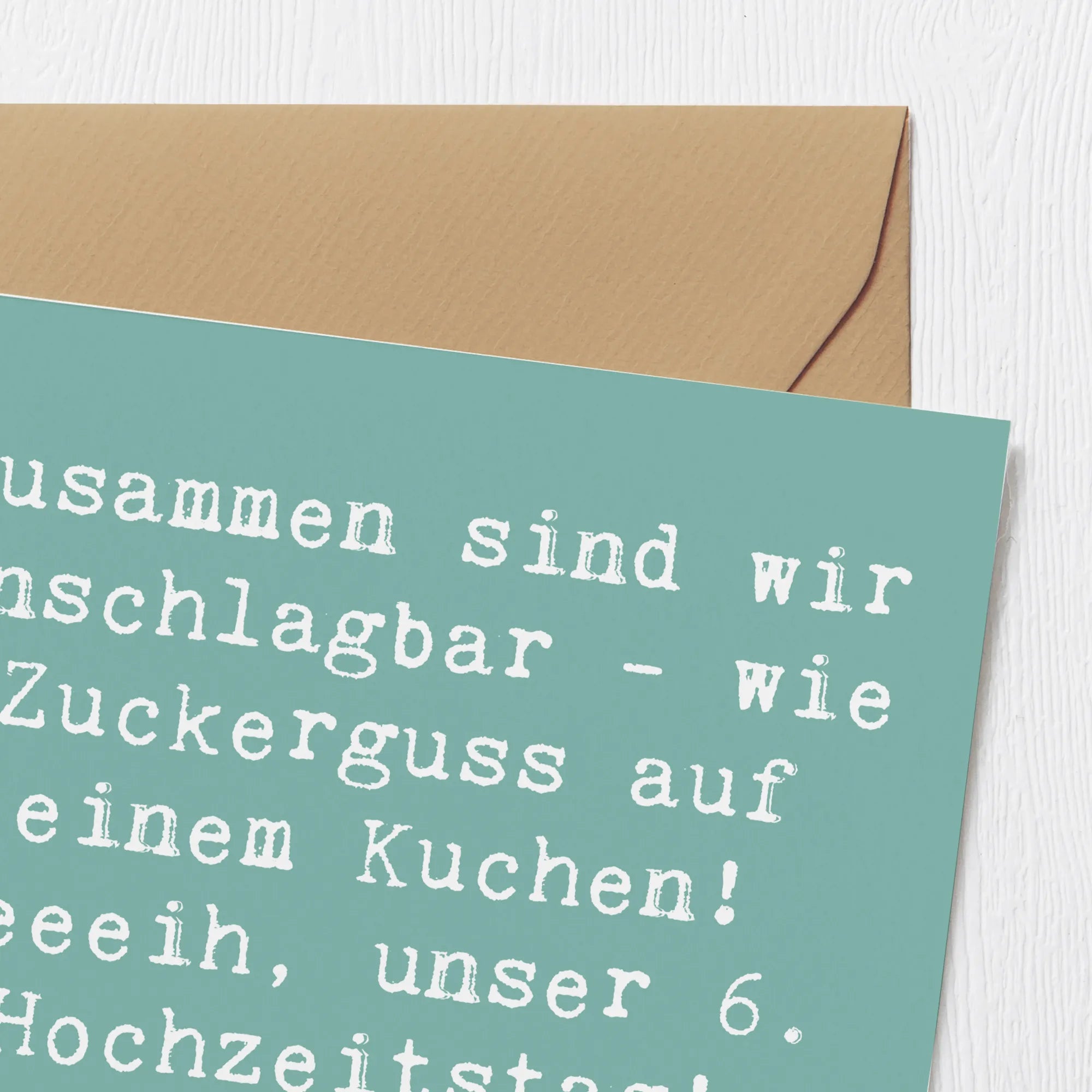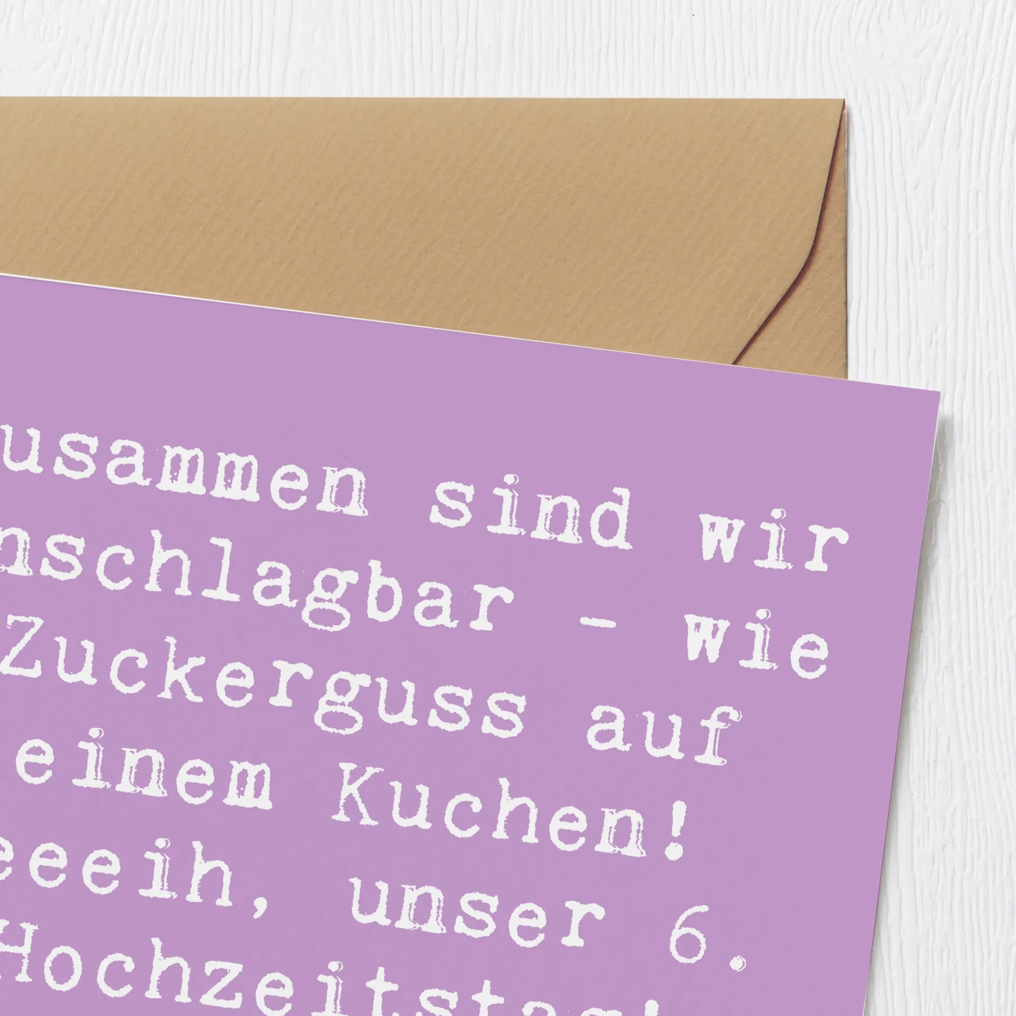 Die Deluxe Karte zum 6. Hochzeitstag – Zuckerhochzeit von Mr. & Mrs. Panda ist der perfekte Begleiter für deinen ganz besonderen Tag! Sie ist nicht nur ein Hingucker, sondern bringt auch die richtigen Worte mit. Die Vorderseite der Karte ist mit dem liebevollen Spruch "Zusammen sind wir unschlagbar - wie Zuckerguss auf einem Kuchen! Yeeeih, unser 6. Hochzeitstag! Alles Liebe zur Zuckerhochzeit!" bedruckt und zaubert ein Lächeln auf jedes Gesicht.