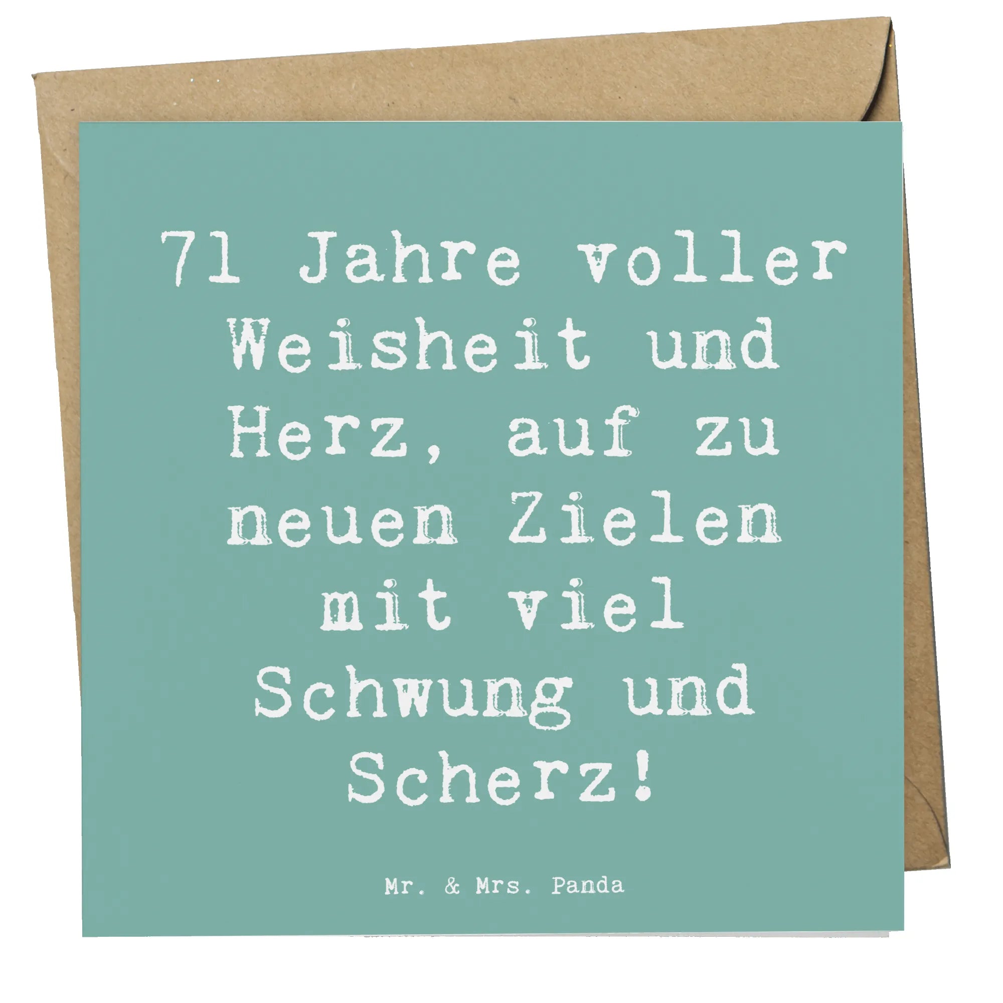 Sie kommt aus unserer einzigartigen Kollektion "Geburtstag Alter" und besticht durch ihr liebevoll gestaltetes Motiv mit dem Spruch "71 Jahre voller Weisheit und Herz, auf zu neuen Zielen mit viel Schwung und Scherz!".