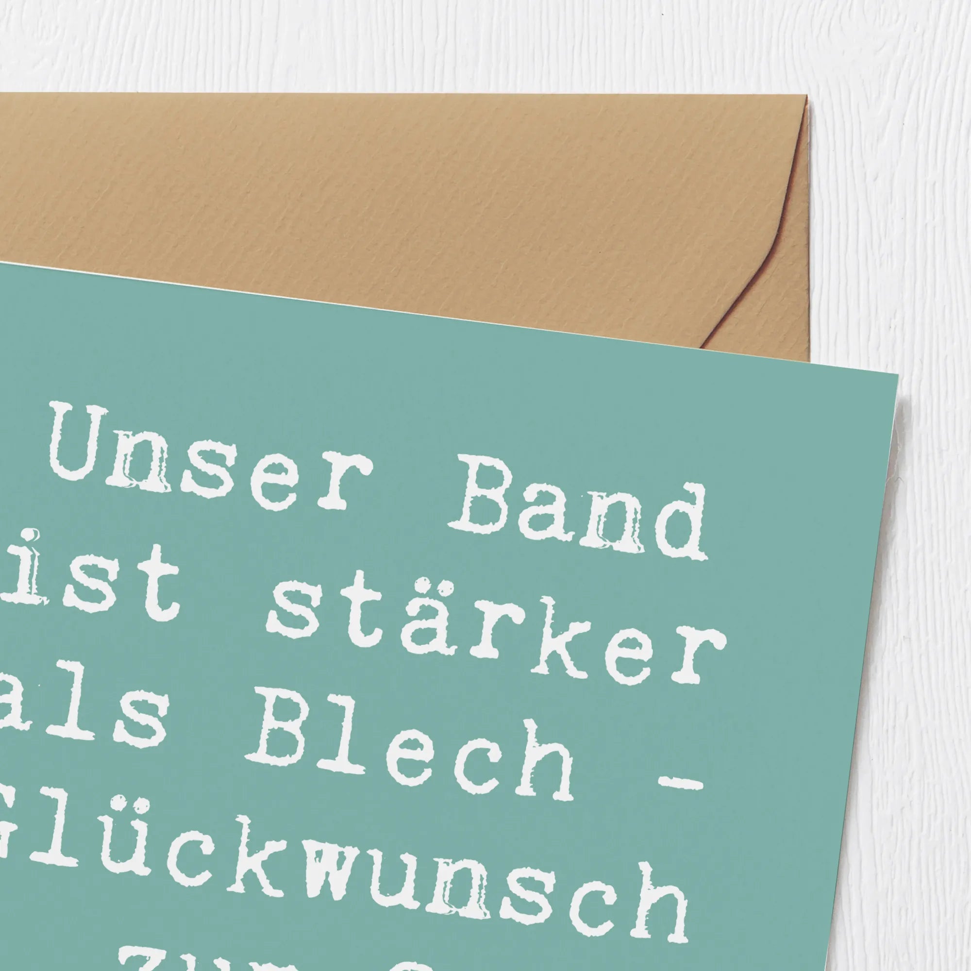Die Karte ist mit dem witzigen Spruch "Unser Band ist stärker als Blech - Glückwunsch zum 8. Hochzeitstag!" versehen, der mit einem charmanten Design von Mr. & Mrs. Panda begeistert. Auf der hochglänzend veredelten Vorderseite leuchtet der Spruch sichtbar, während die matte Innenseite perfekt für persönliche Botschaften geeignet ist. Hier kannst Du Deine ganz eigenen Worte einflicken und der Karte eine individuelle Note verleihen.