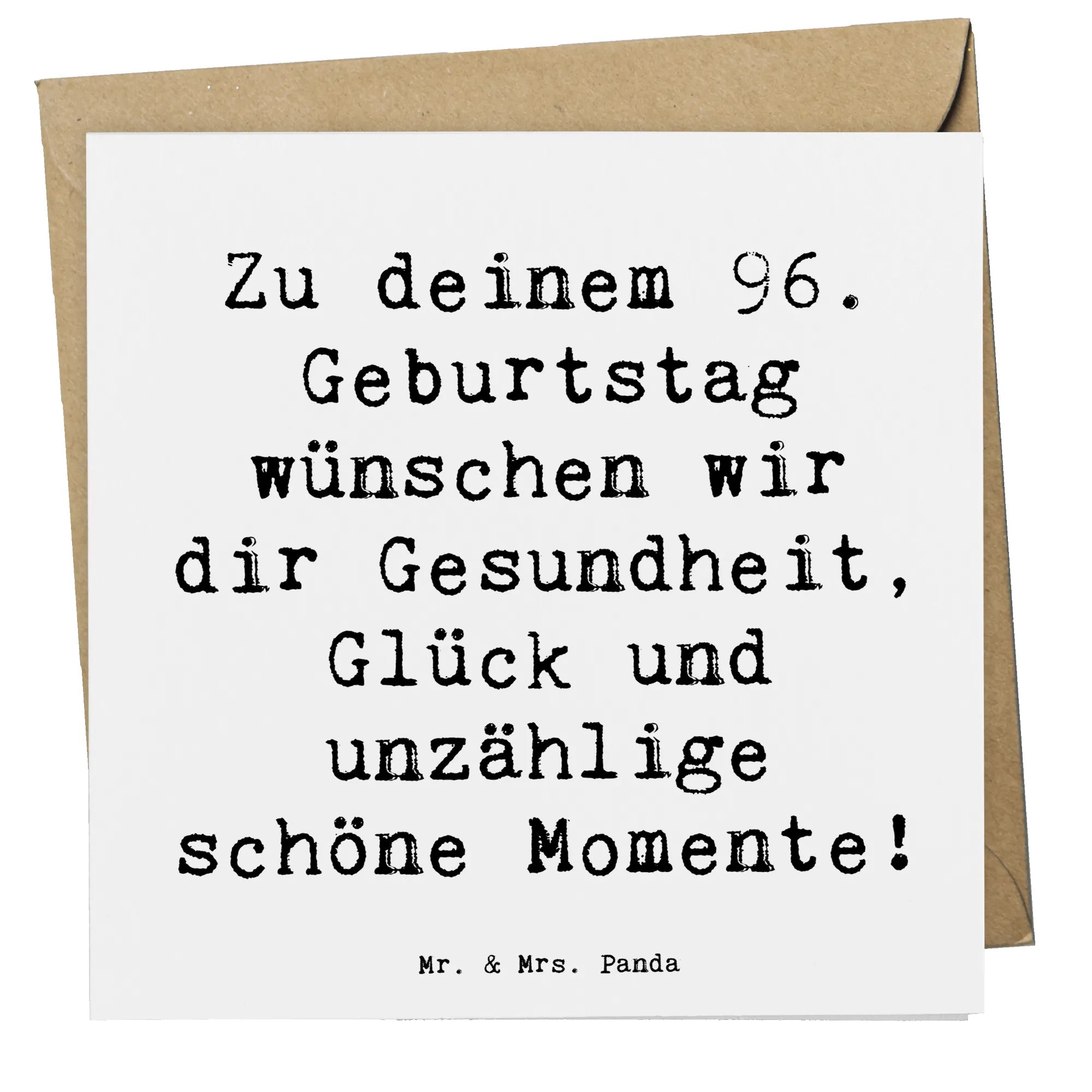 Entdecke die wundervolle Deluxe Karte zum 96. Geburtstag aus der einzigartigen Geburtstagskollektion von Mr. & Mrs. Panda! Diese hochwertige quadratische Karte, gefertigt aus edlem 300 Gramm Papier, ist nicht nur ein schöner Gruß, sondern auch eine liebevolle Botschaft.