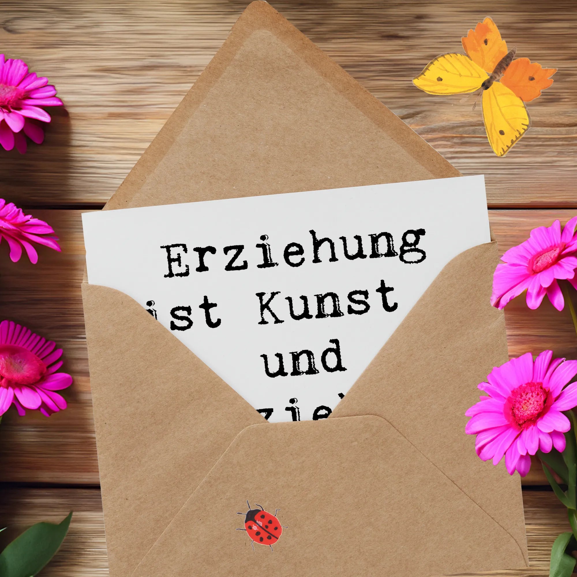 Die Karte ist nicht nur ein einfacher Gruß, sondern ein kleines Kunstwerk, das voller Herz steckt. Mit dem Spruch "Erziehung ist Kunst - und Erzieher sind Künstler!" auf der Vorderseite spricht sie direkt das große Talent der Erzieher an und vermittelt, wie wichtig ihre Arbeit ist.