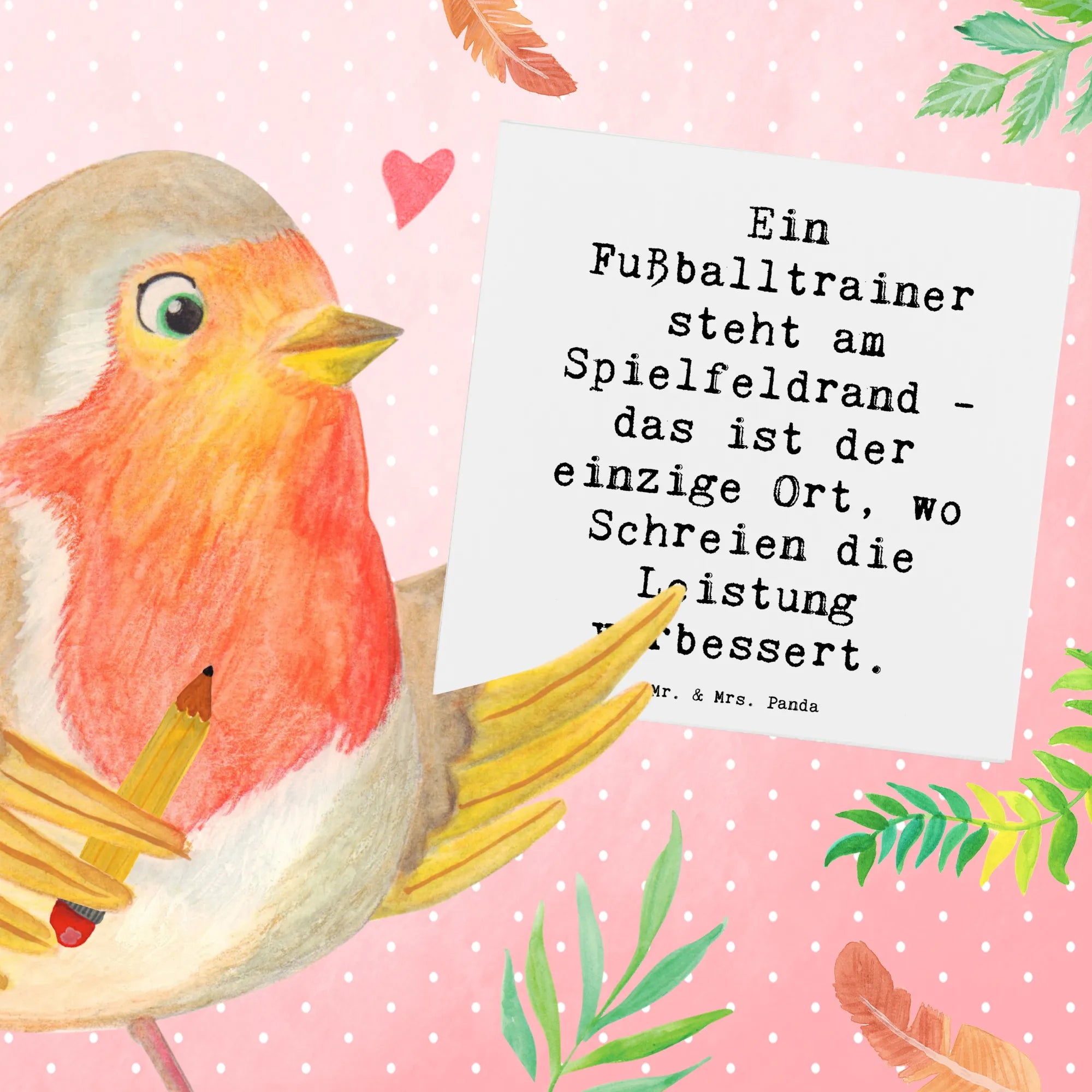 Die Deluxe Karte Fußballtrainer von Mr. & Mrs. Panda ist das perfekte Geschenk für alle, die eine Leidenschaft für den Fußball und das Coaching haben! Mit einer liebevollen Gestaltung strahlt diese hochwertige Klappkarte eine besondere Atmosphäre aus. Sie misst 140 mm x 140 mm und besteht aus edlem 300 Gramm Karton, der matt glänzend verarbeitet ist.