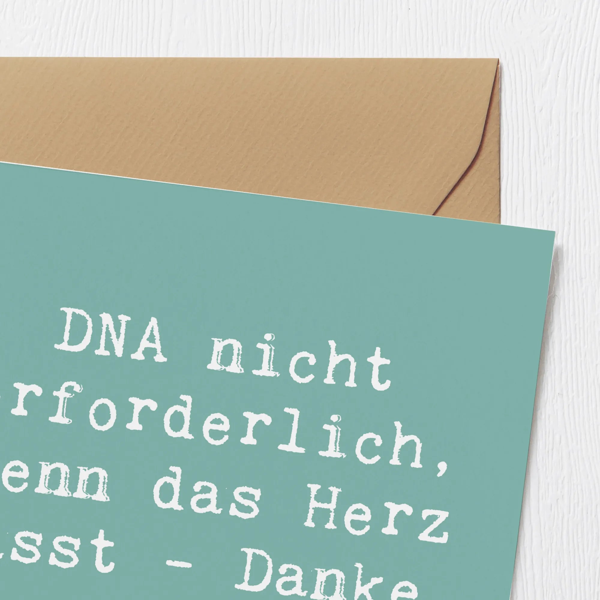 Diese hochwertige Grußkarte bietet einen einzigartigen Spruch: "DNA nicht erforderlich, wenn das Herz passt - Danke, Adoptiveltern!", und ist damit nicht nur eine herzliche Botschaft, sondern auch eine würdige Hommage an die immense Wichtigkeit von elterlicher Liebe und familiärer Bindung. Der edle Umschlag und das 300 Gramm schwere Papier verleihen der Karte eine stilvolle Note und sorgen dafür, dass sie nicht nur ein einfacher Gruß bleibt, sondern ein besonderes Andenken wird.