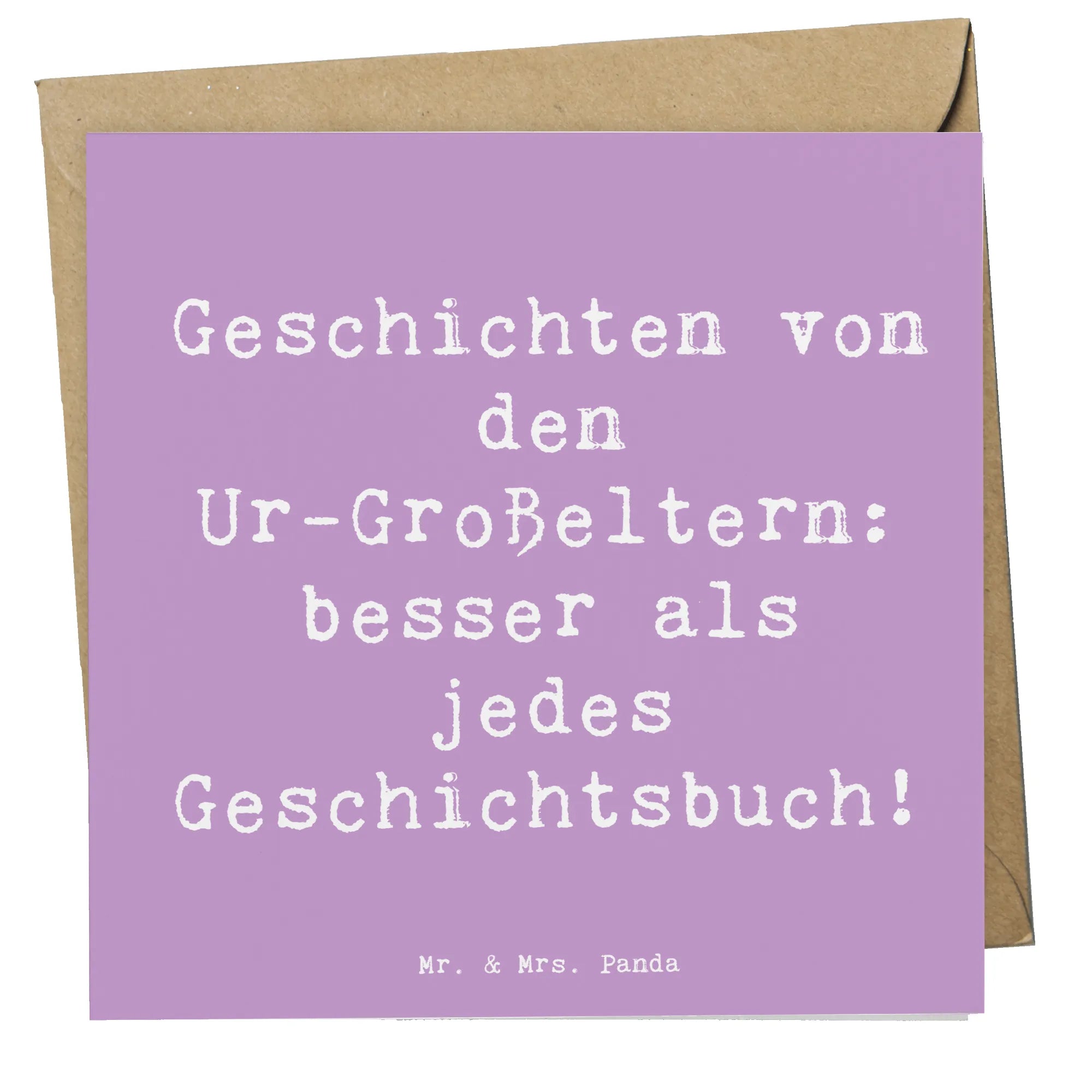Die Ur-Großeltern sind die Wurzeln unserer Familie, und sie besitzen eine Fülle von Geschichten und Weisheiten, die es wert sind, erzählt zu werden! Mit dem Spruch 'Geschichten von den Ur-Großeltern: besser als jedes Geschichtsbuch!' wird diese Karte zu einem schönen Utensil, das die Verbundenheit über Generationen hinweg zelebriert.