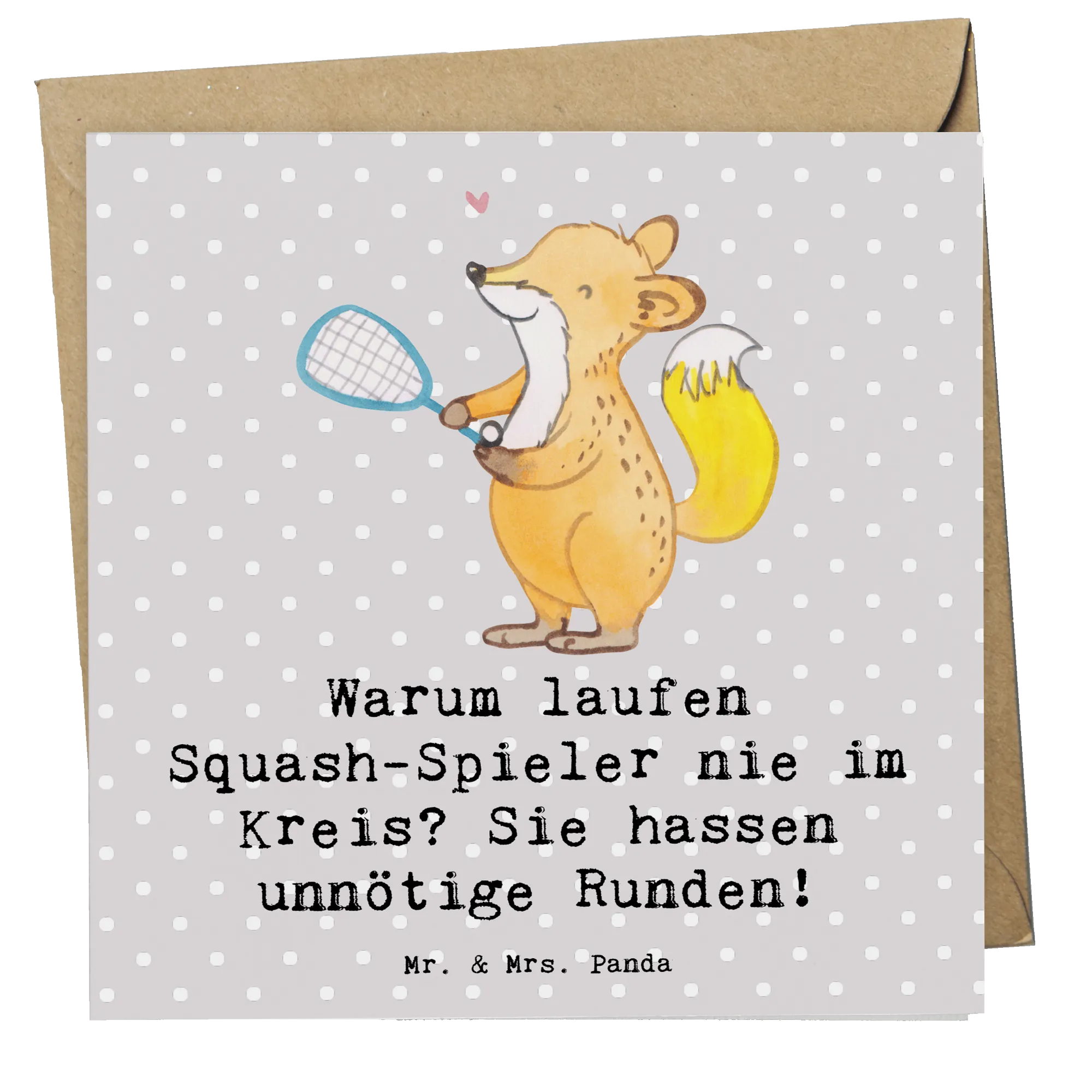 Die Deluxe Karte mit dem Motiv Squash aus der Kollektion Sportarten von Mr. & Mrs. Panda ist das perfekte Geschenk für Sportliebhaber und Squash-Fans! Sie zeigt ein originelles und humorvolles Design mit dem Spruch: 'Warum laufen Squash-Spieler nie im Kreis? Sie hassen unnötige Runden!'. Diese Karte ist nicht nur ein Blickfang, sondern bringt auch ein Schmunzeln auf die Gesichter der Empfänger. Ob als Glückwunschkarte zur Geburtstagsfeier eines Sportlers, als Einladungskarte zu einem Squash-Event oder zur Gratulation zu einem sportlichen Erfolg – diese Karte ist vielseitig einsetzbar und perfekt für jede Gelegenheit!