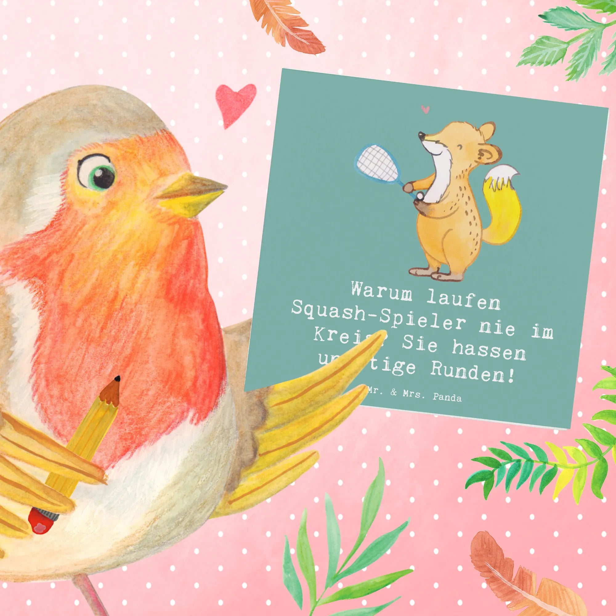 Jedes Design wurde liebevoll von Mrs. Panda von Hand gezeichnet, was die Karte zu einem Unikat macht. Ob du die Karte selbst behalten oder als Geschenk weitergeben möchtest – die Deluxe Karte mit dem Motiv Squash ist immer eine gute Wahl. Sie bringt nicht nur Glückwünsche, sondern auch ein Stück Sportbegeisterung in jeden Briefkasten. Mache deinen Liebsten eine Freude oder erfreue dich selbst an einer liebevollen Grußkarte, die sportliche Leidenschaft und Heiterkeit verbindet!