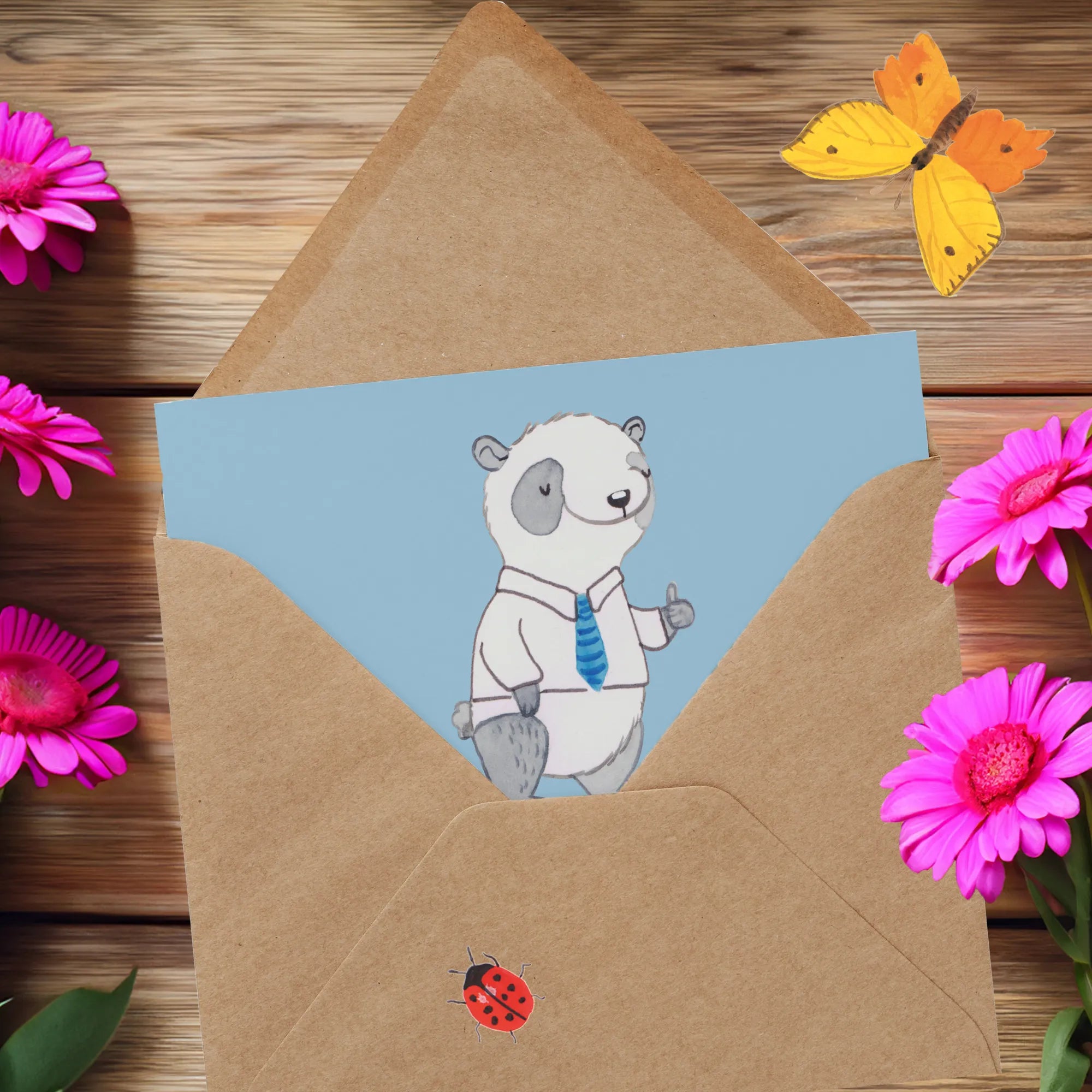 Perfekt geeignet für alle Anlässe, die Du mit einem Stiefvater feierst, sei es ein Jubiläum, ein Dankeschön, oder einfach nur um eine herzliche Botschaft zu übermitteln. Diese Grußkarte ist ein kleines Kunstwerk, handgezeichnet von Mrs. Panda, und gehört zur charmanten Kollektion 'Familie & Verwandte'.