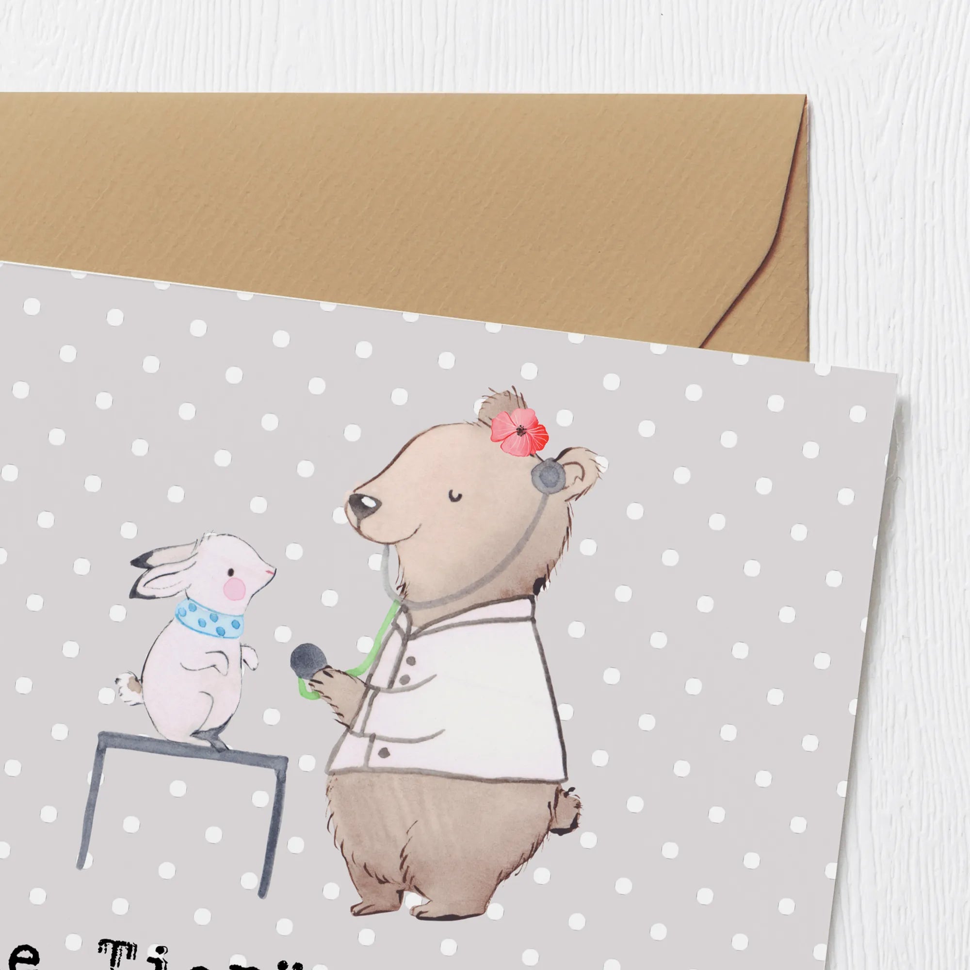 Die Deluxe Karte zum Thema Tierarzt aus der Kollektion Berufe von Mr. & Mrs. Panda ist das perfekte Geschenk für jeden, der in der Tiermedizin tätig ist oder einfach eine besondere Wertschätzung für tierärztliche Berufe hat.