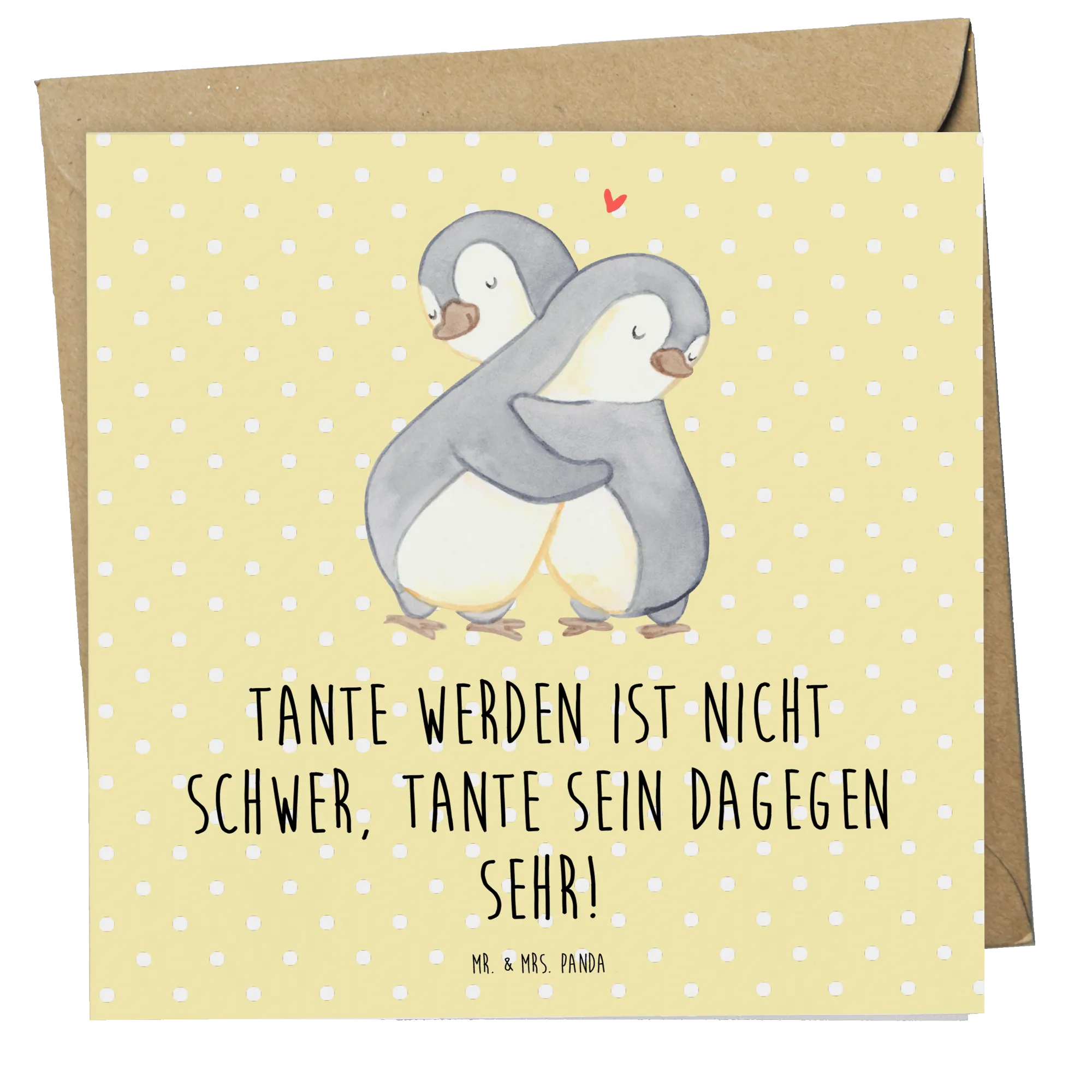 Die Deluxe Karte zum Thema Tante von Mr. & Mrs. Panda ist das perfekte Geschenk für all jene, die eine besondere Tante in ihrem Leben haben. Diese hochwertige quadratische Karte misst 140 mm x 140 mm und wird aus edlem 300 Gramm Karton hergestellt, der nicht nur robust, sondern auch sehr angenehm in der Haptik ist. Das traumhafte Design und der liebevolle Spruch „Tante werden ist nicht schwer, Tante sein dagegen sehr!“ versprühen sofort gute Laune und zeigen der Tante, wie wichtig sie ist.