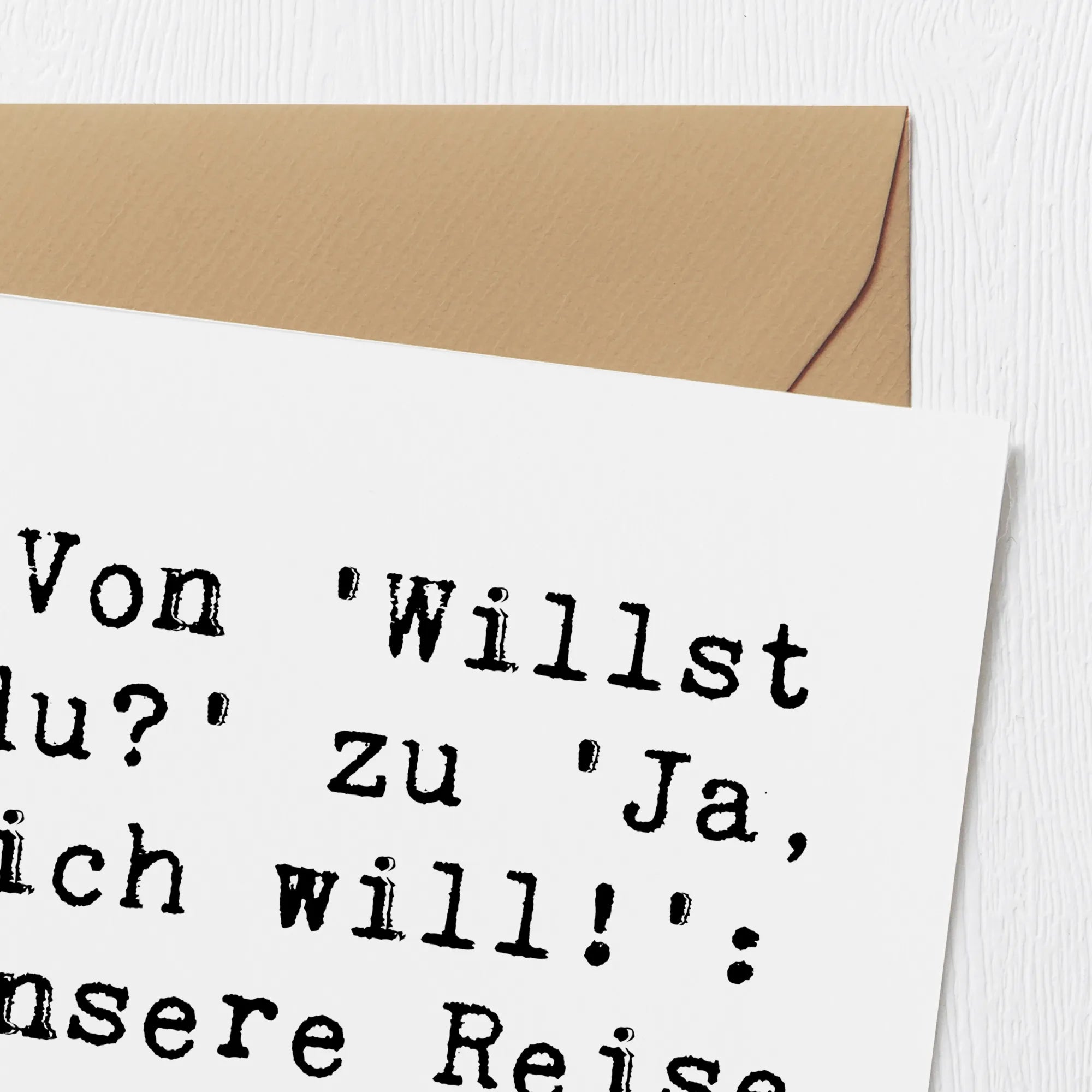Der Spruch „Von 'Willst du?' zu 'Ja, ich will!': Unsere Reise beginnt hier!“ setzt einen romantischen Akzent und feiert den besonderen Moment der Verlobung. Diese Karte ist nicht nur ein schönes Accessoire für Verlobungsfeiern, sondern auch ein kreatives Geschenk für das Brautpaar.