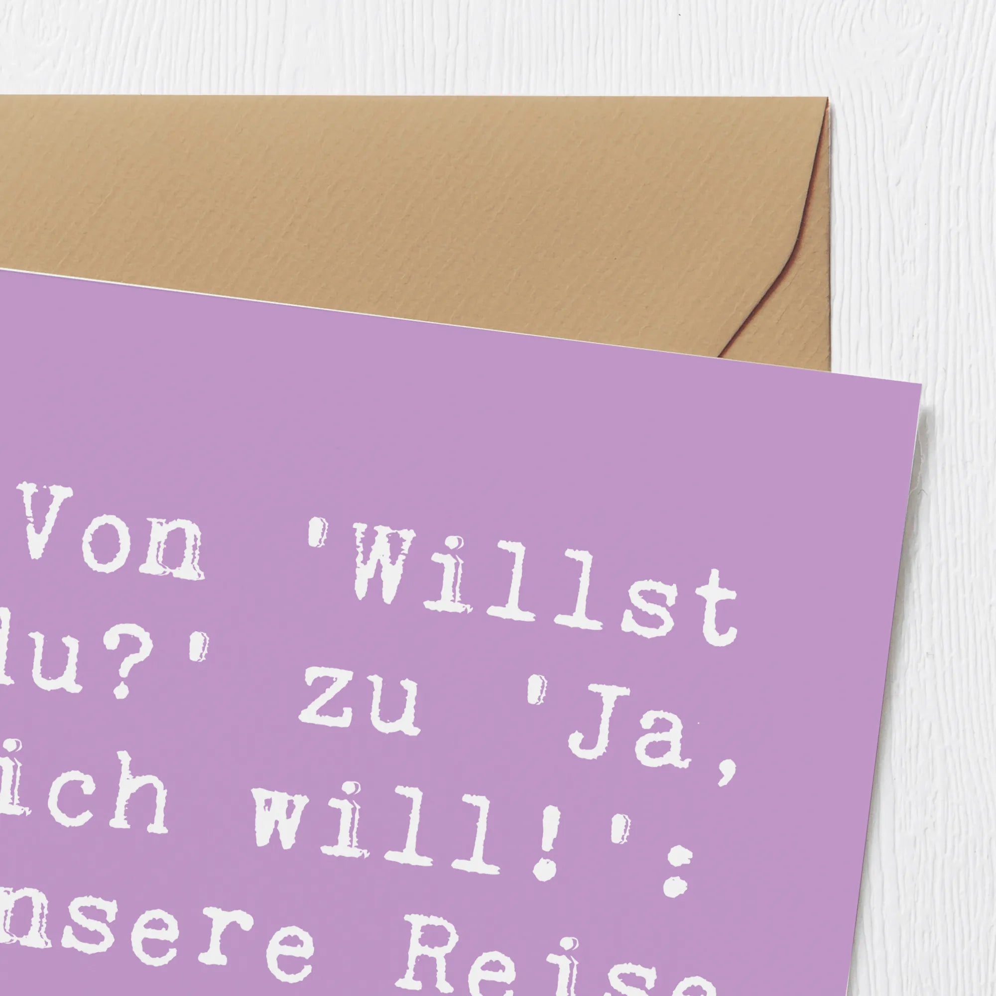 Egal, ob Du sie zu einer Verlobungsfeier, als Glückwunschkarte für ein frisch verlobtes Paar oder einfach zur Feier der Liebe verschenken möchtest, mit dieser Karte hast Du die ideale Wahl getroffen. Mit dem Spruch 'Von 'Willst du?' zu 'Ja, ich will!': Unsere Reise beginnt hier!' bringt sie die Freude und Aufregung, die mit dem Verlobungszeitpunkt verbunden ist, perfekt zum Ausdruck.