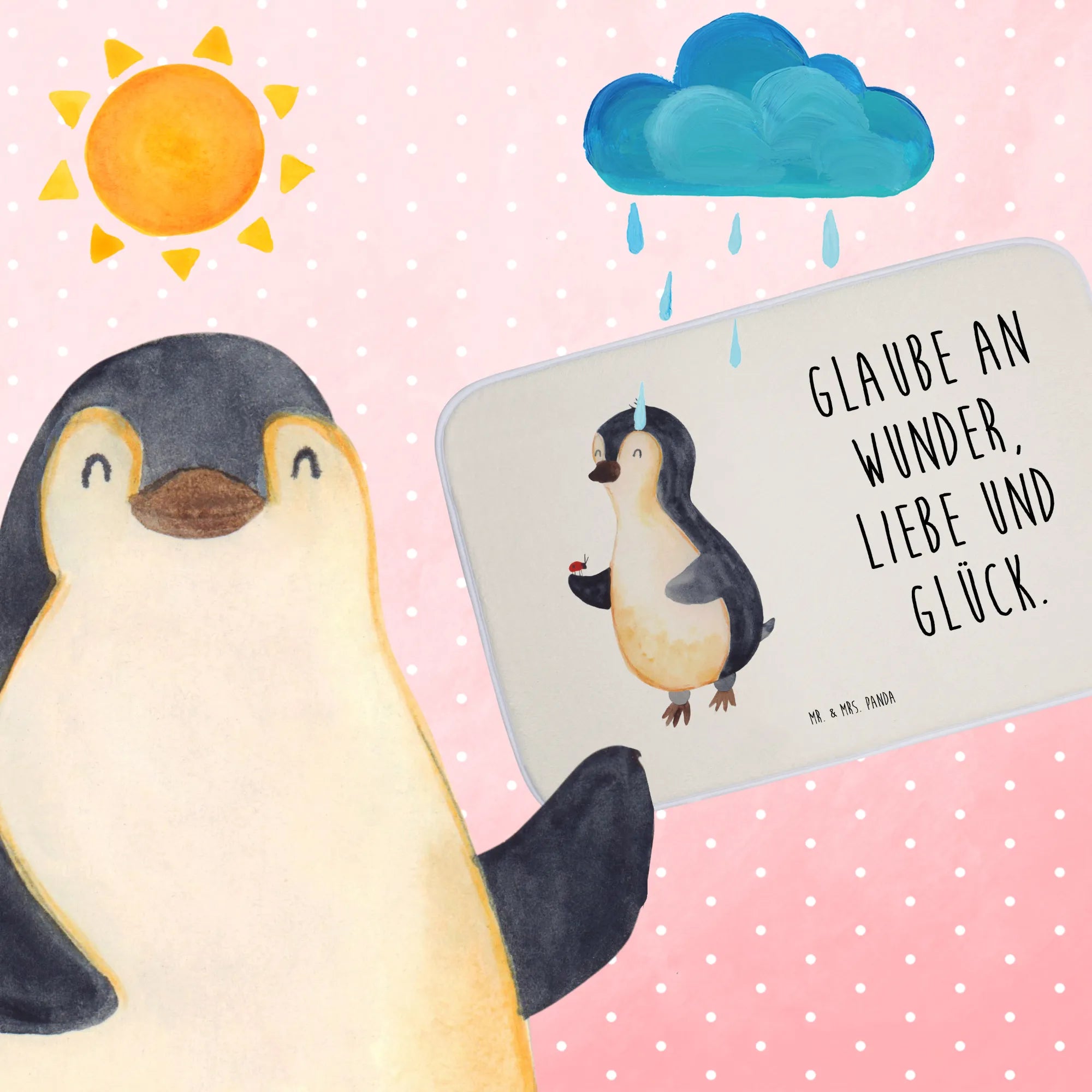 dywanik łazienkowy Pingwin biedronka - z napisem - lodowoniebieski