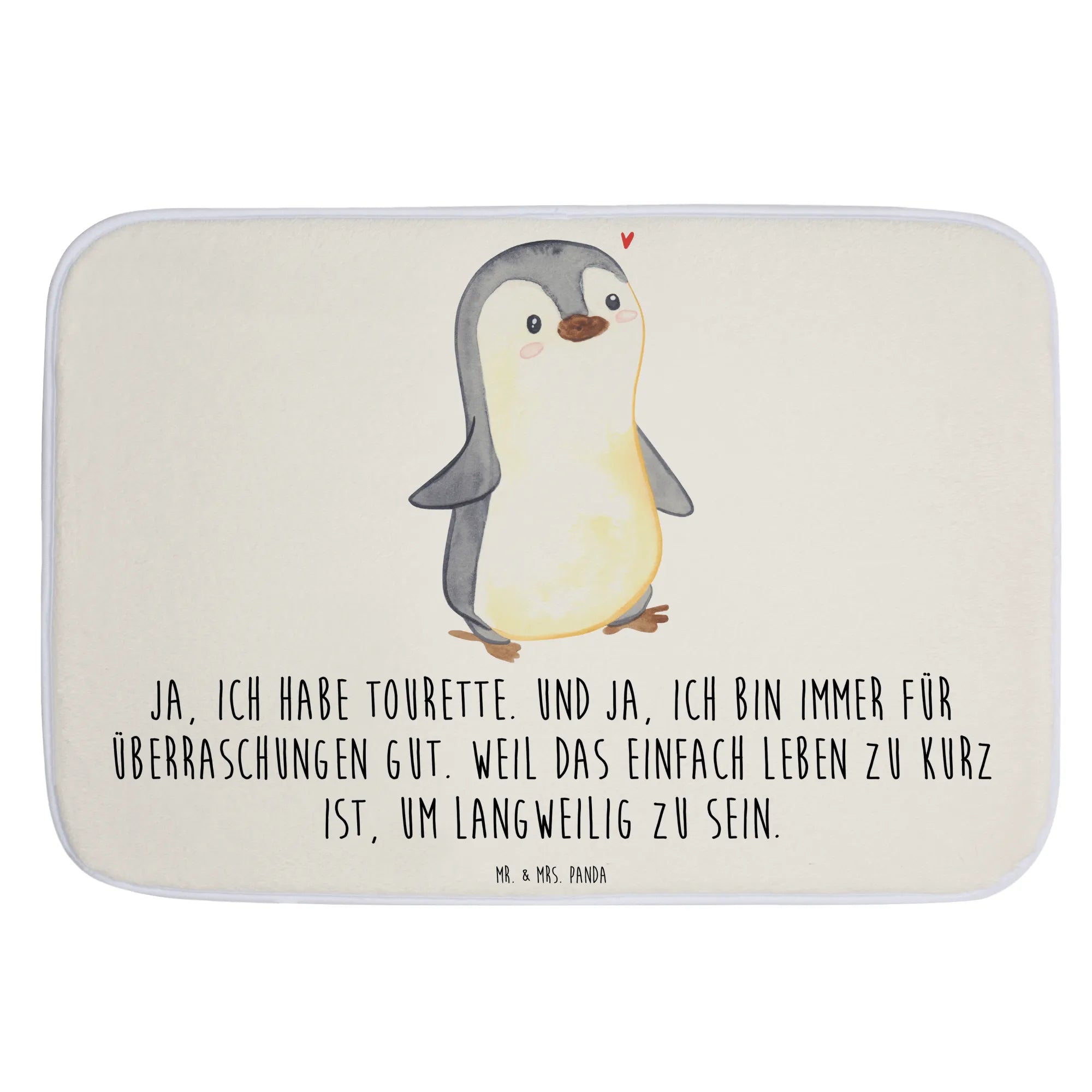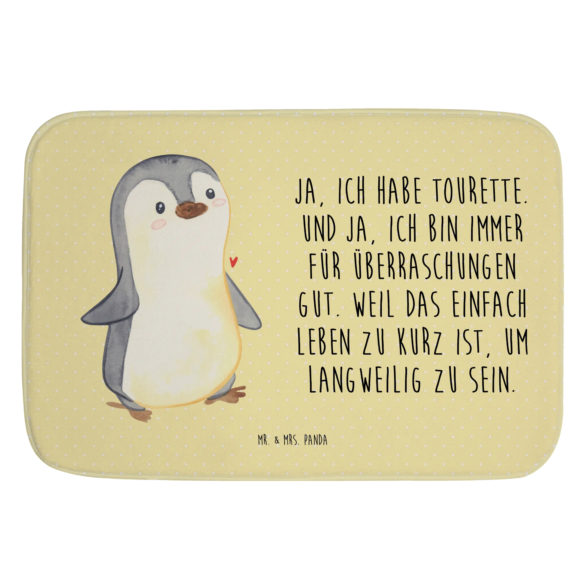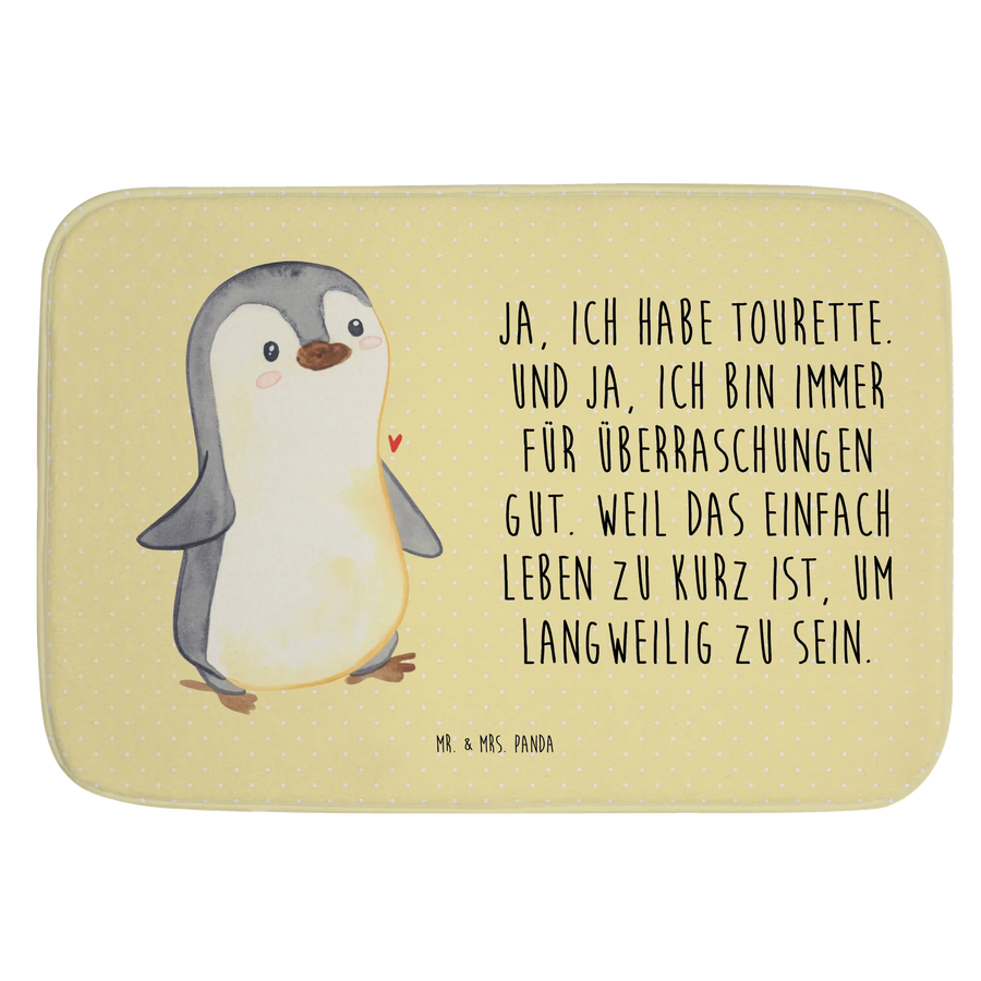 Entdecke die einzigartige Badematte "Pinguin Tourette" aus der Kollektion Tiere mit Superkräften von Mr. & Mrs. Panda. Diese besondere Badmatte ist nicht nur ein stilvolles Accessoire für dein Badezimmer, sondern trägt auch eine wichtige Botschaft.