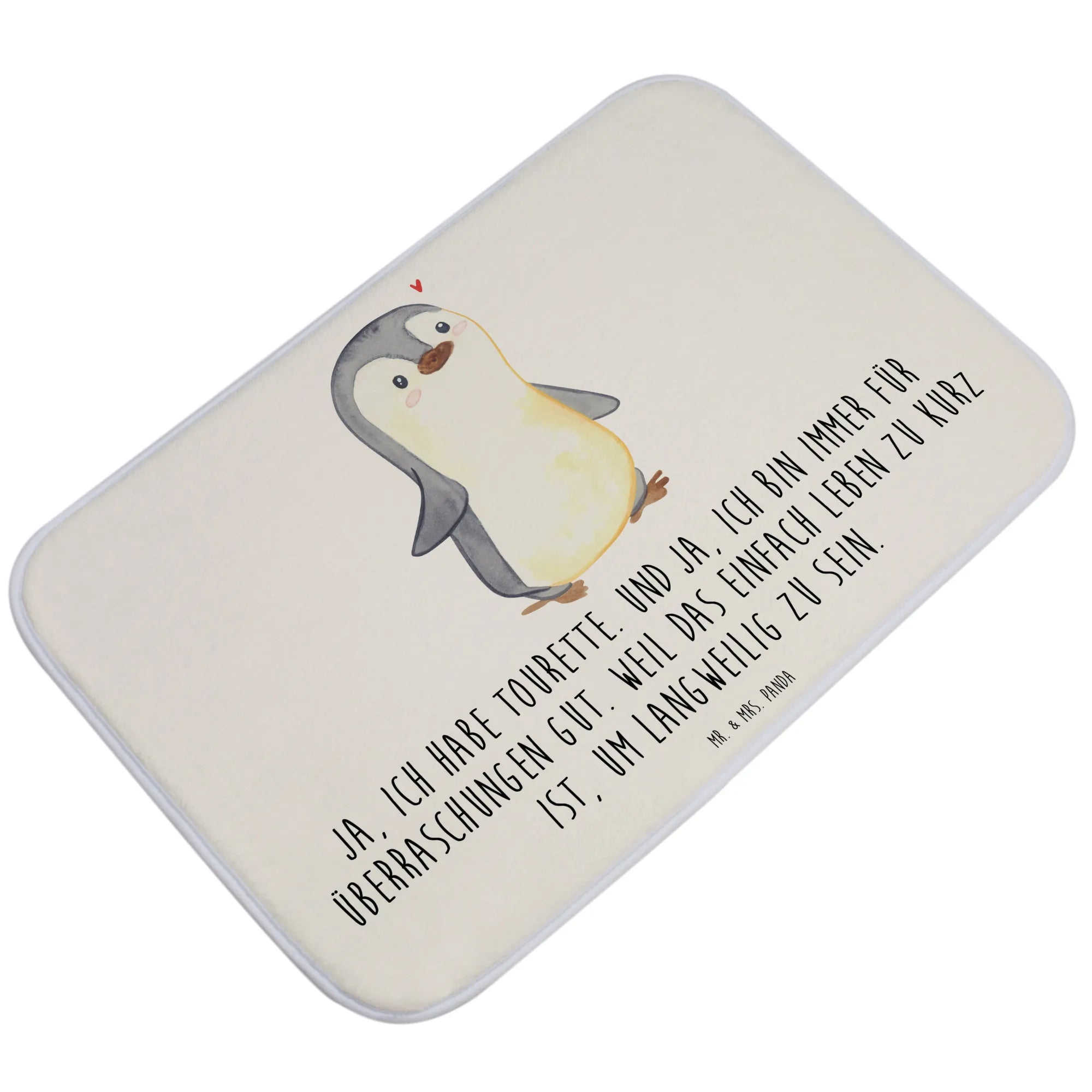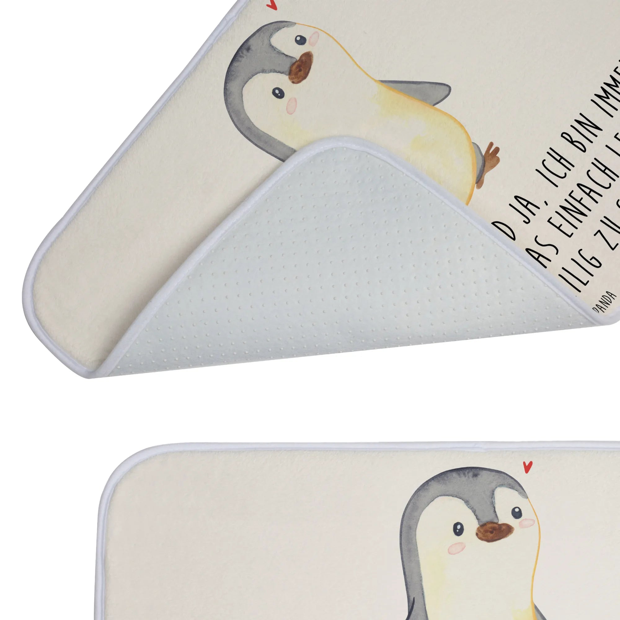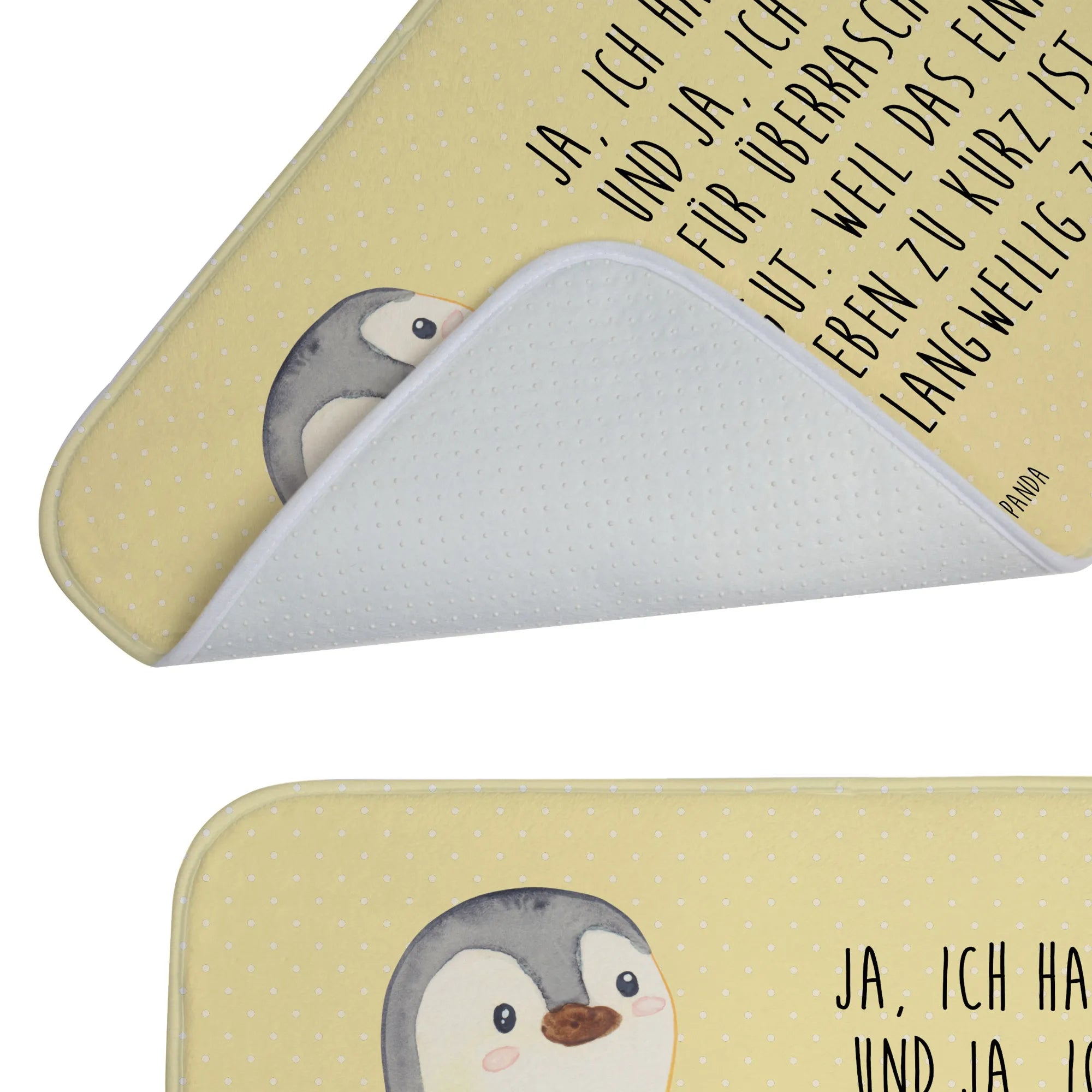 Entdecke die einzigartige Badematte "Pinguin Tourette" aus der Kollektion Tiere mit Superkräften von Mr. & Mrs. Panda. Diese besondere Badmatte ist nicht nur ein stilvolles Accessoire für dein Badezimmer, sondern trägt auch eine wichtige Botschaft.