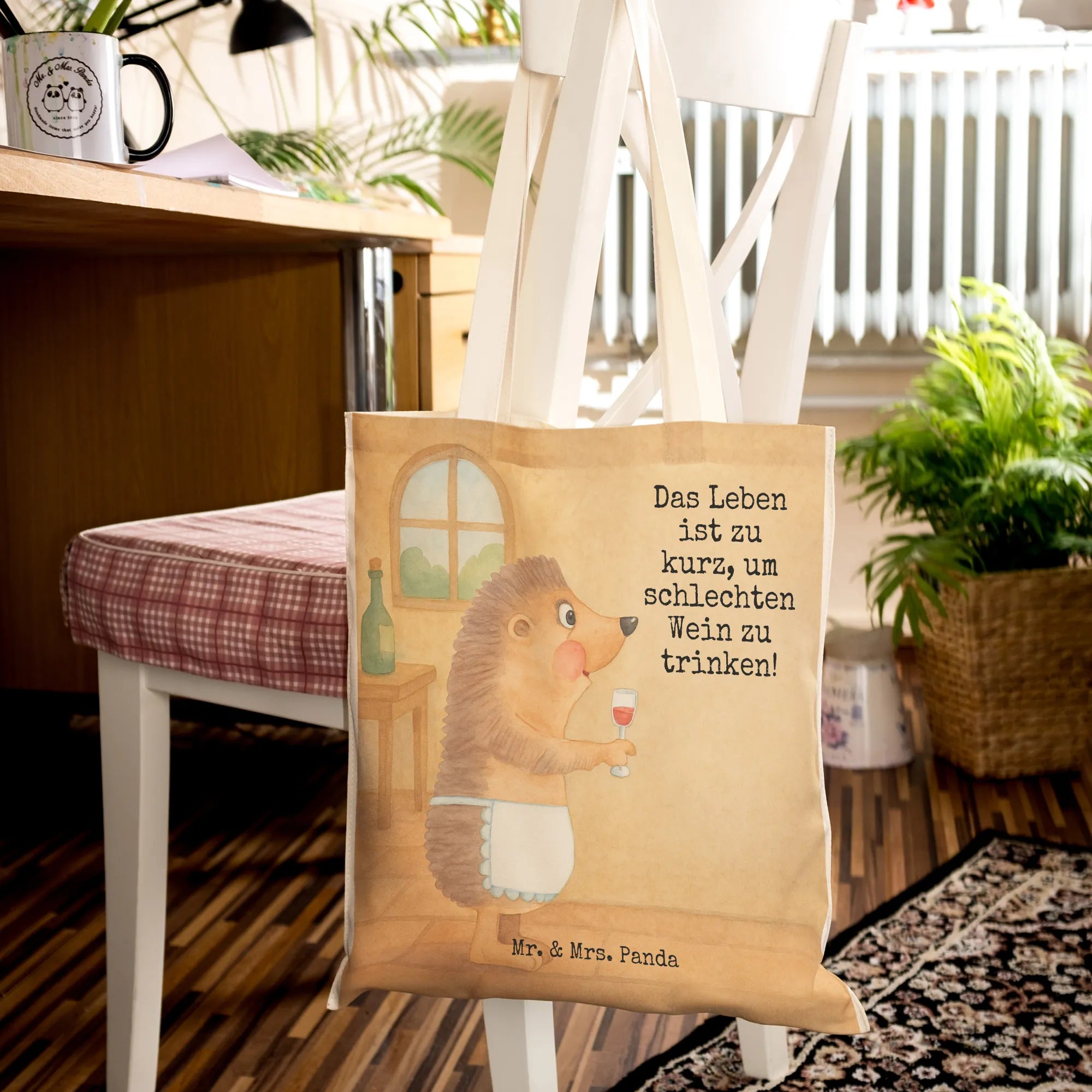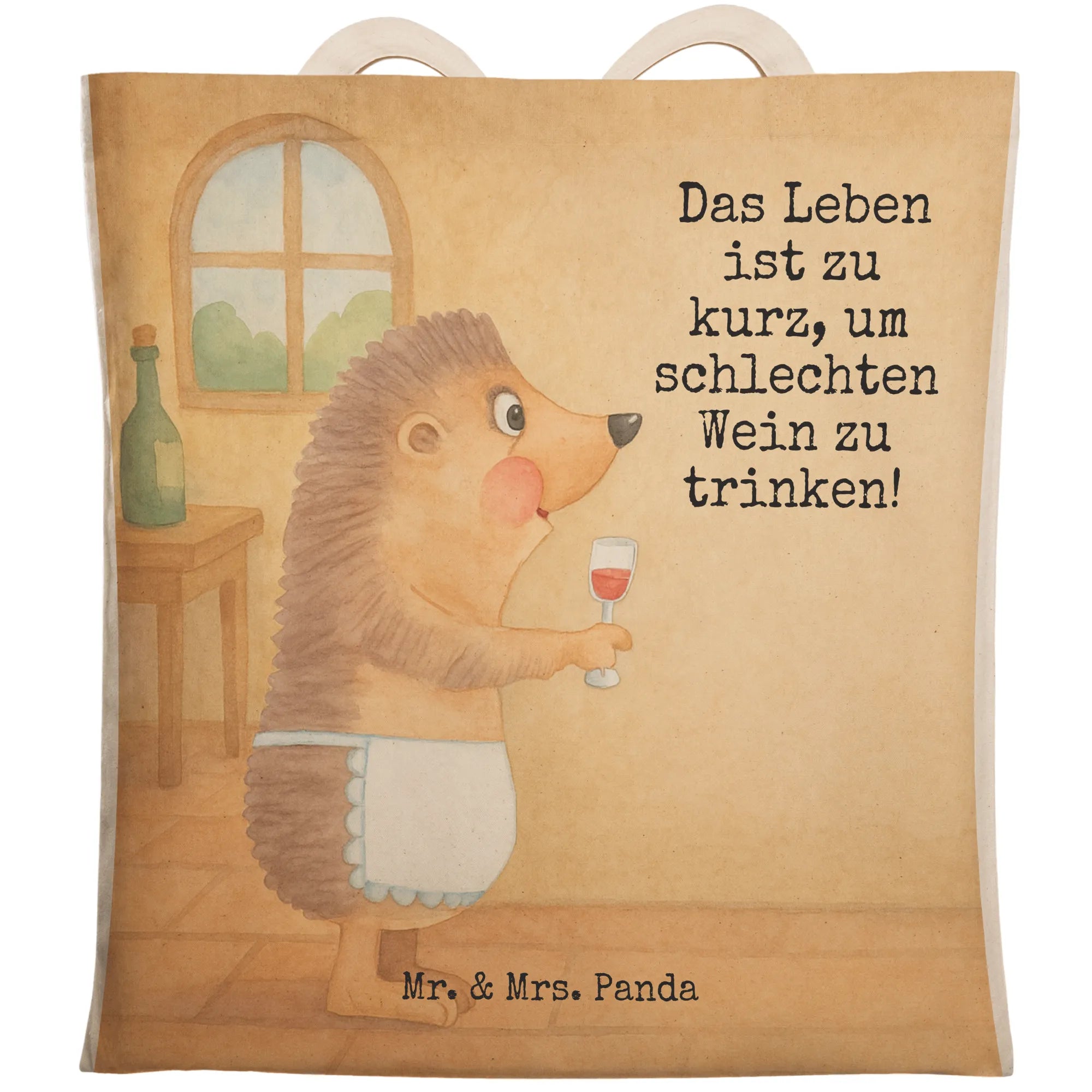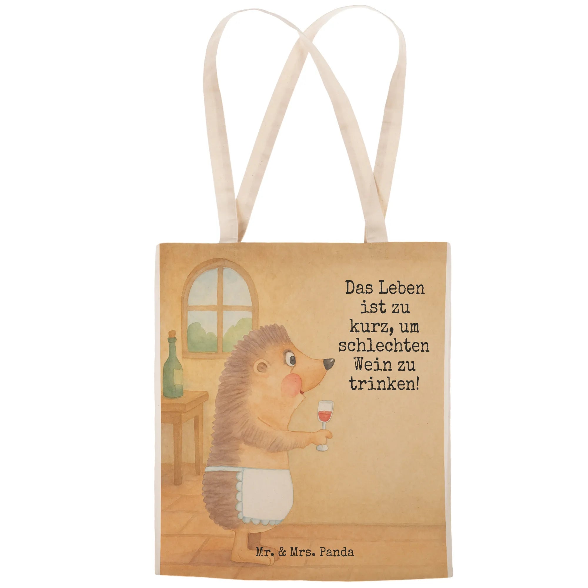 Einkaufstasche Igel Wein Design - mit Spruch
