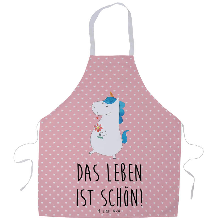 Fartuch kuchenny Jednorożec spacer - z napisem - Pastelowy czerwony