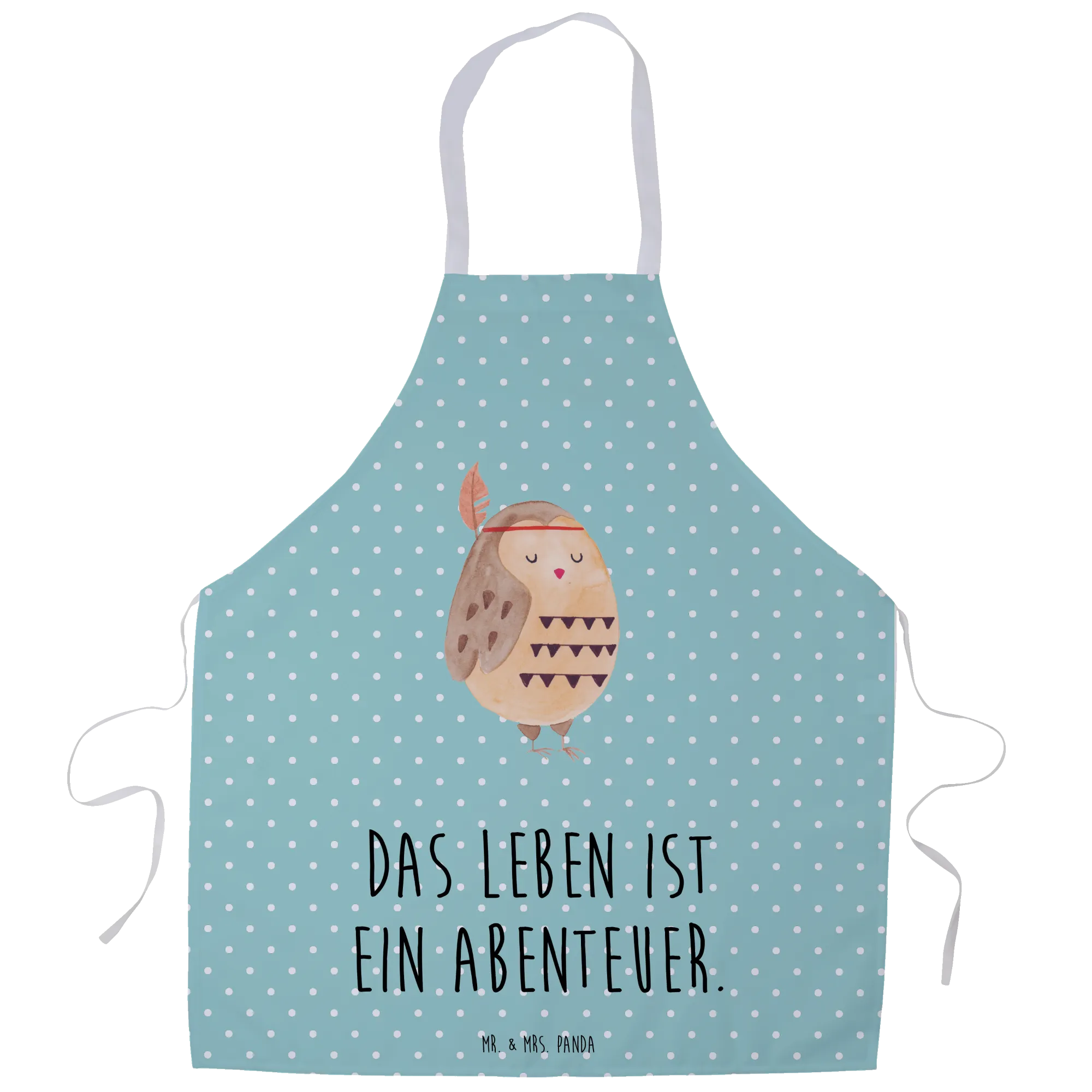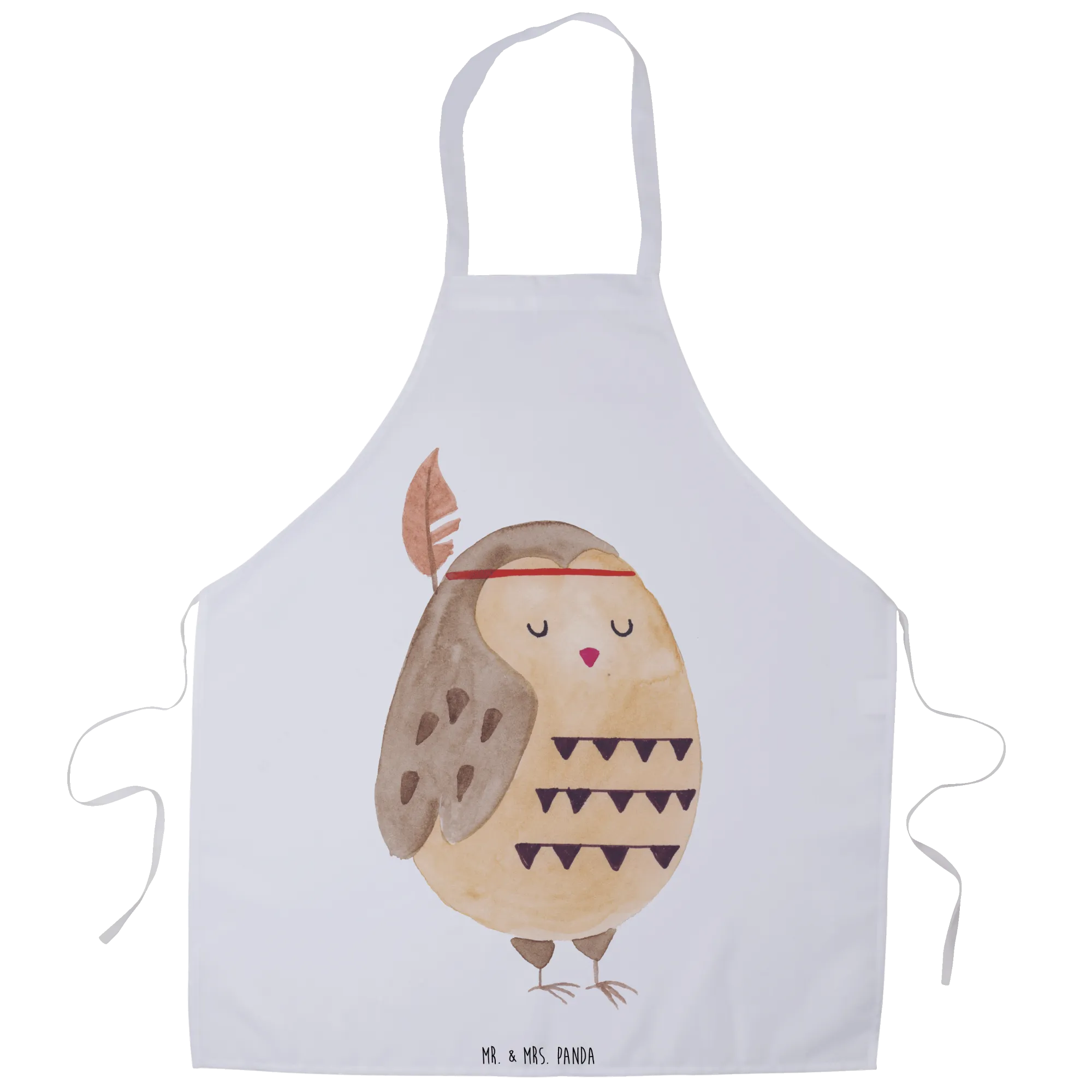Fartuch kuchenny sowa Ozdoba z piór - z napisem - biały
