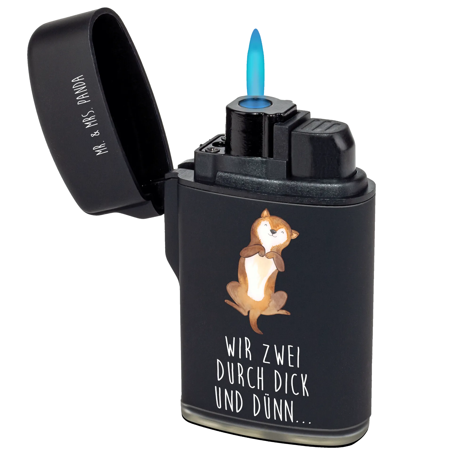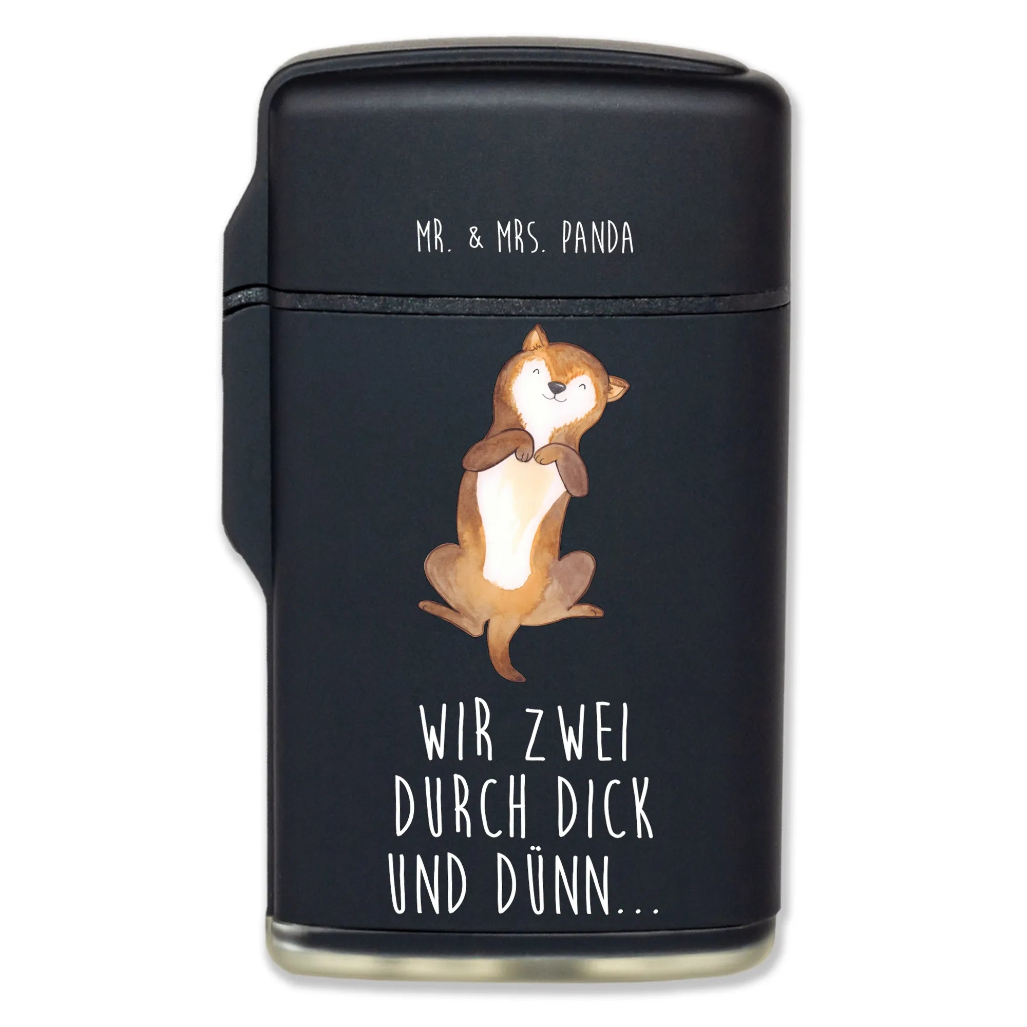 Entdecke unser einzigartiges Feuerzeug aus der Hunde Kollektion von Mr. & Mrs. Panda! Dieses praktische Sturmfeuerzeug ist nicht nur ein nützliches Tool, sondern auch ein echter Hingucker für alle Hundeliebhaber. Mit dem süßen Motiv eines Hundes, der in voller Lebensfreude auf dem Rücken liegt und sich ein paar liebevolle Bauch-kraulen gönnt, bringt dieses Feuerzeug ein Lächeln in den Alltag.