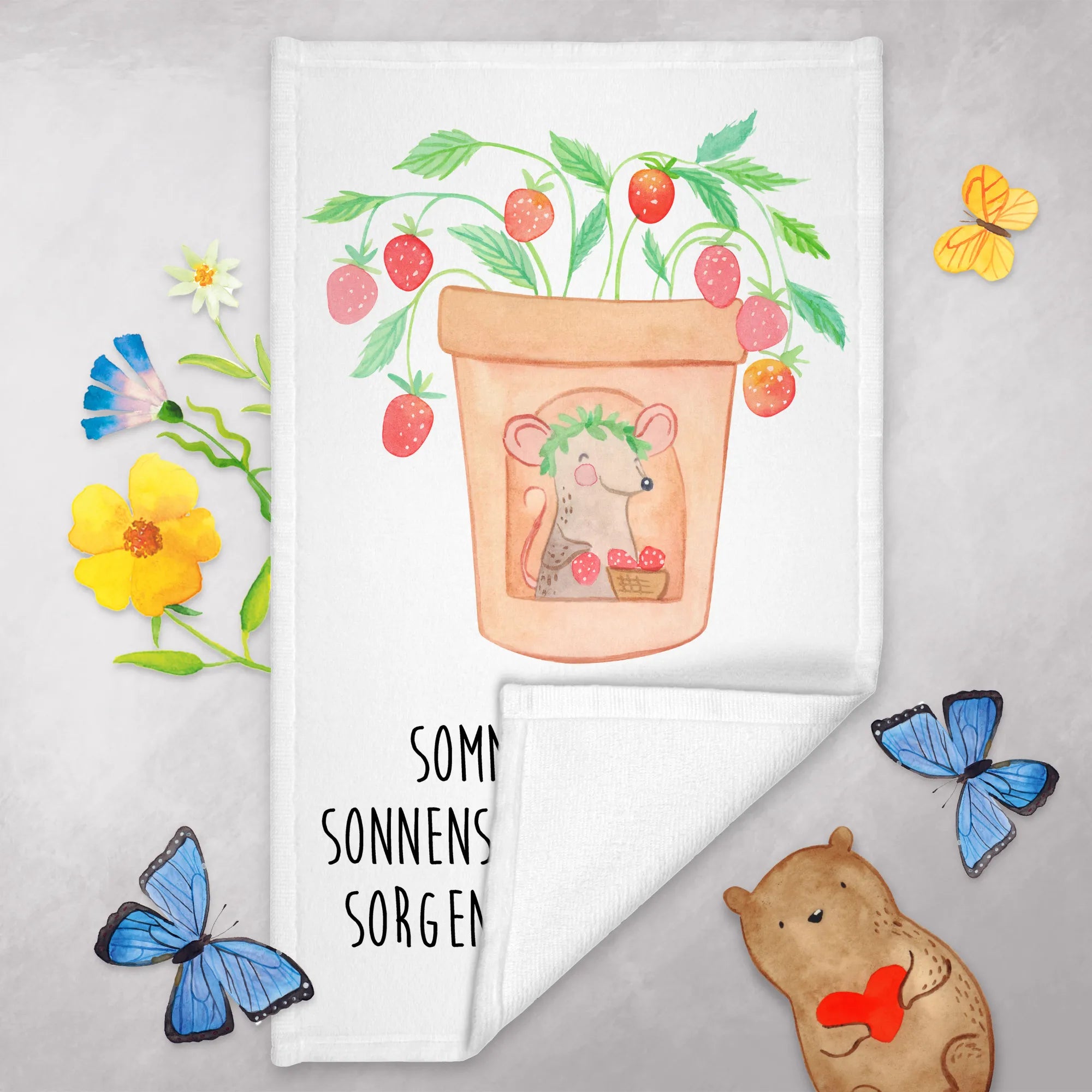 Das bezaubernde Gästehandtuch von Mr. & Mrs. Panda ist der perfekte Begleiter für die sonnigen Tage des Jahres! Mit seinem fröhlichen Sommermotiv und dem liebevollen Slogan "Sommer, Sonne, Sonnenschein, lass die Sorgen einfach sein!" zaubert es sofort ein Lächeln auf die Gesichter deiner Gäste.