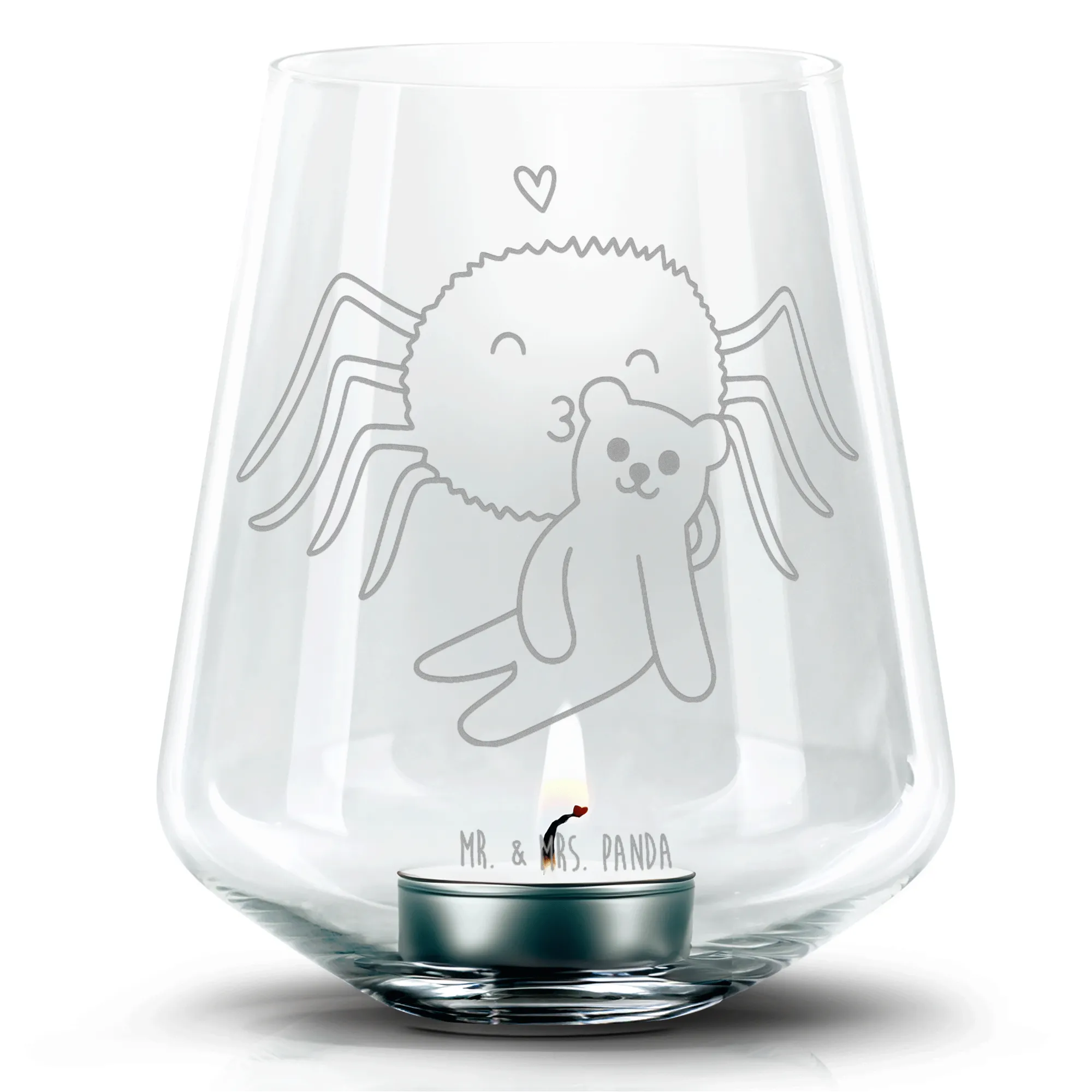 Graviertes Windlicht Spinne Agathe Teddy - mit Spruch