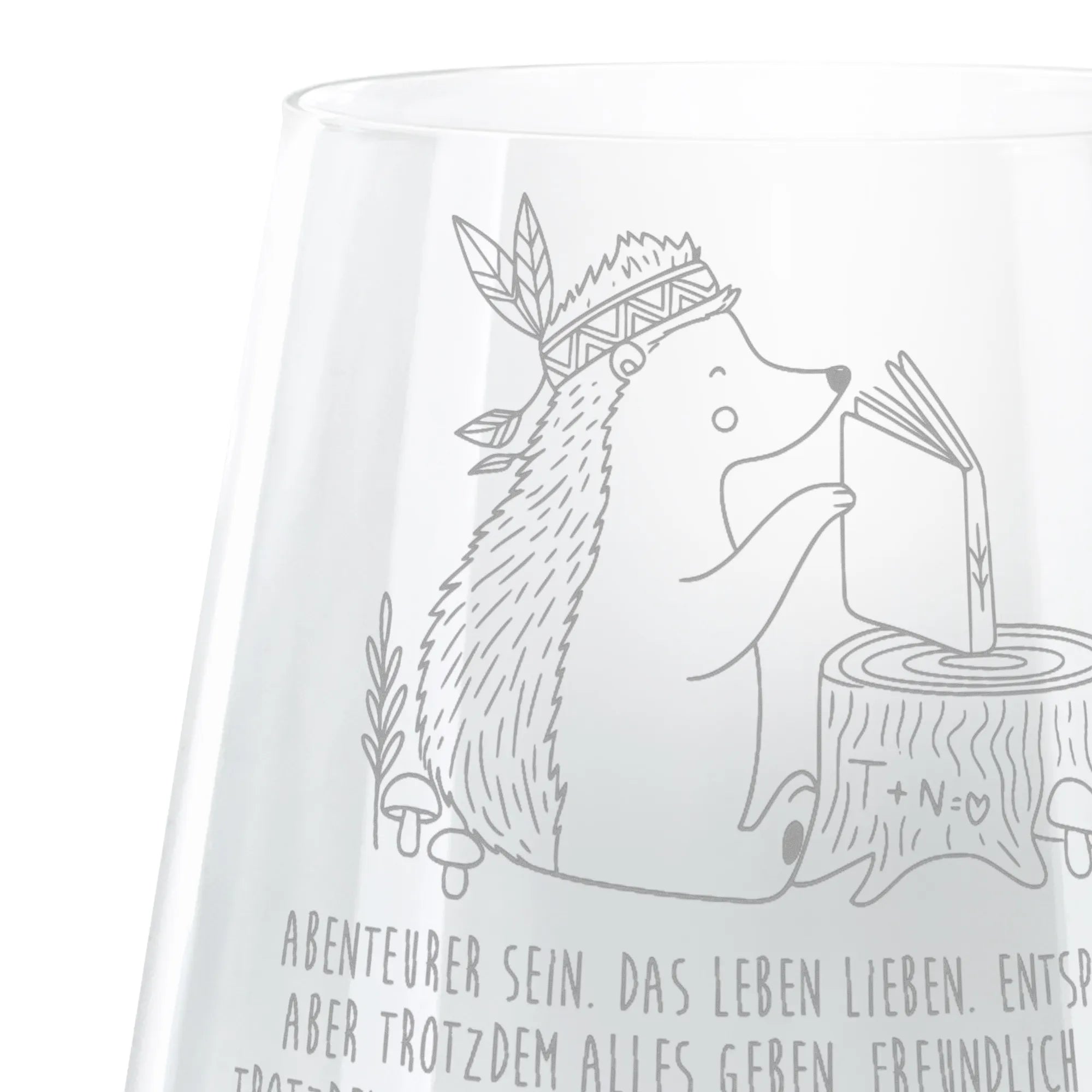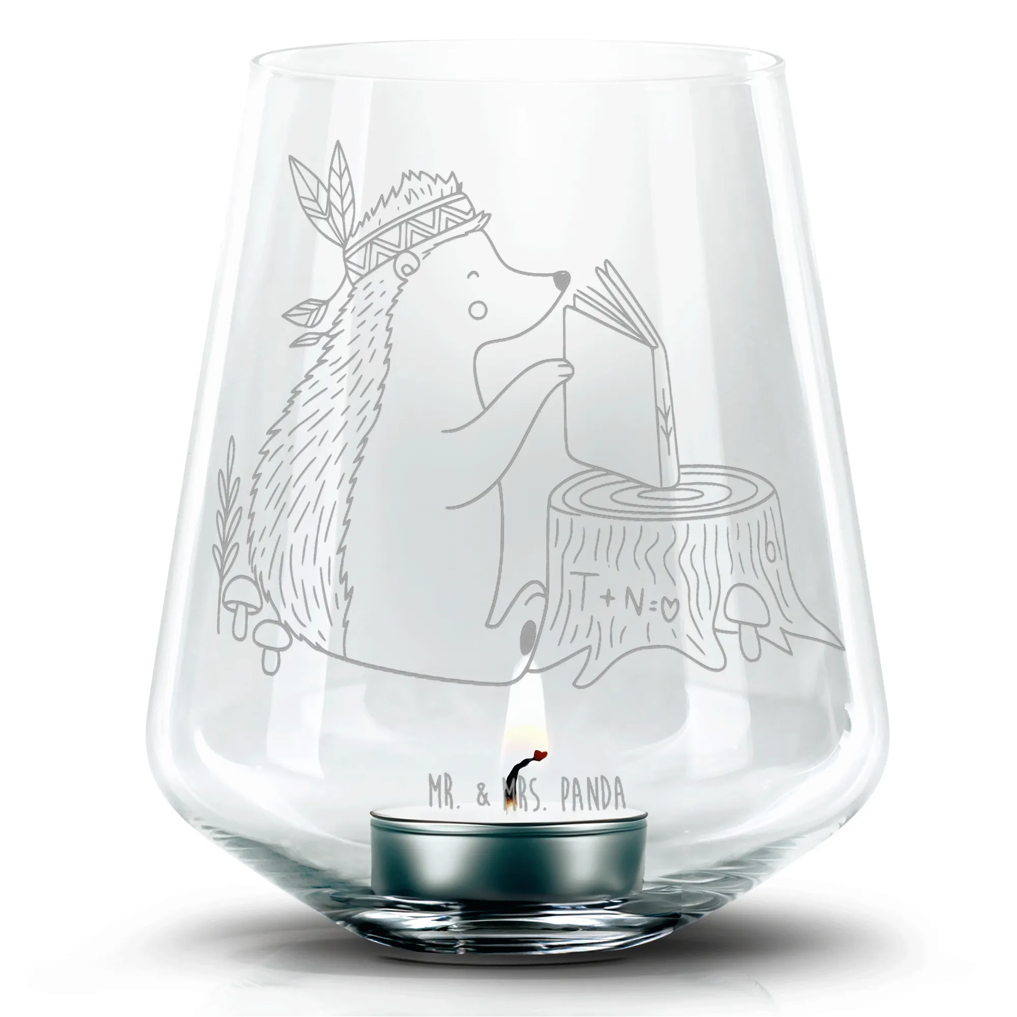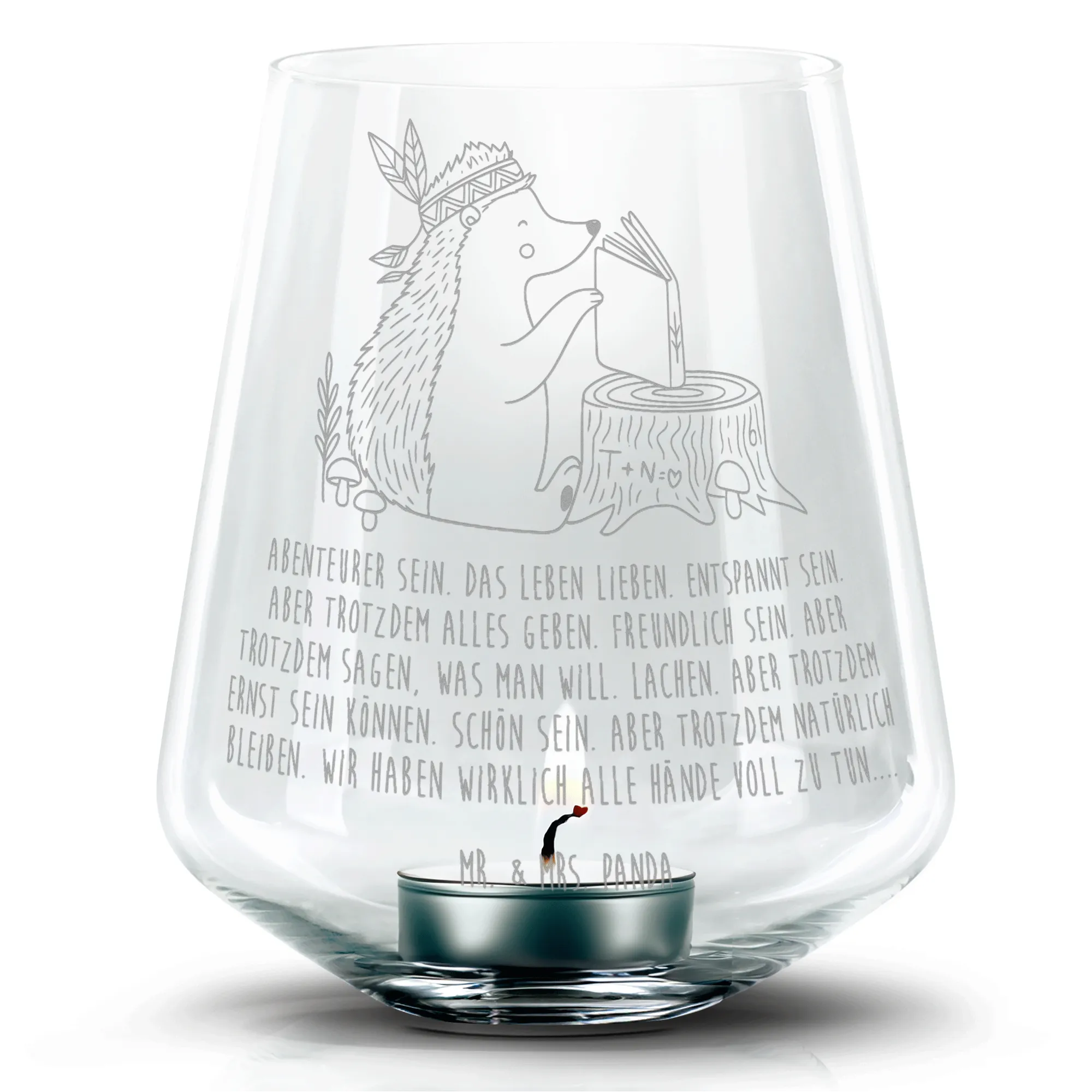 Gravur Windlicht Igel Federschmuck - mit Spruch