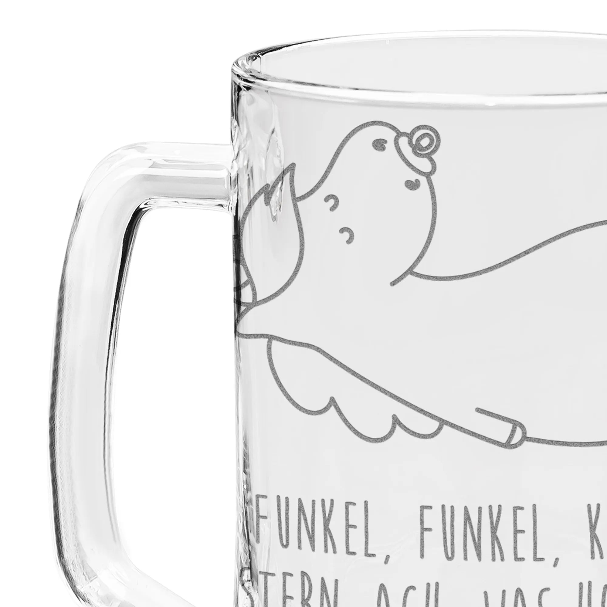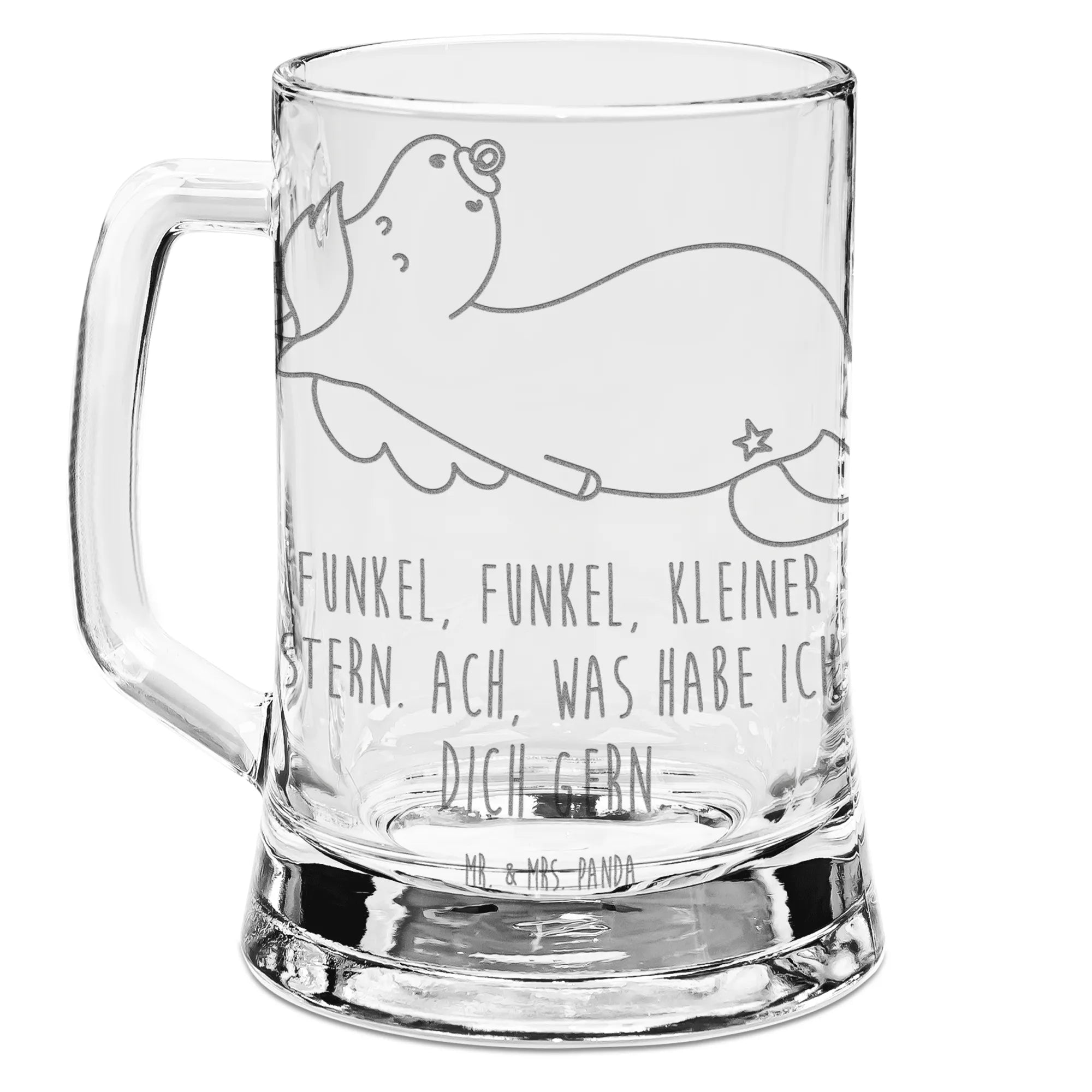 Der Gravur Bierkrug 'Einhorn Schnullie' aus der zauberhaften Einhorn-Kollektion von Mr. & Mrs. Panda ist das perfekte Geschenk für alle, die die magische Welt der Einhörner lieben. Egal, ob es sich um einen Geburtstag, Vatertag oder zur Feier eines besonderen Anlasses handelt – dieser Bierkrug wird das Herz jedes Bierliebhabers höher schlagen lassen. Er ist nicht nur ein stilvolles Trinkgefäß, sondern auch ein echter Blickfang und bietet Platz für bis zu 450 ml köstliches Bier.