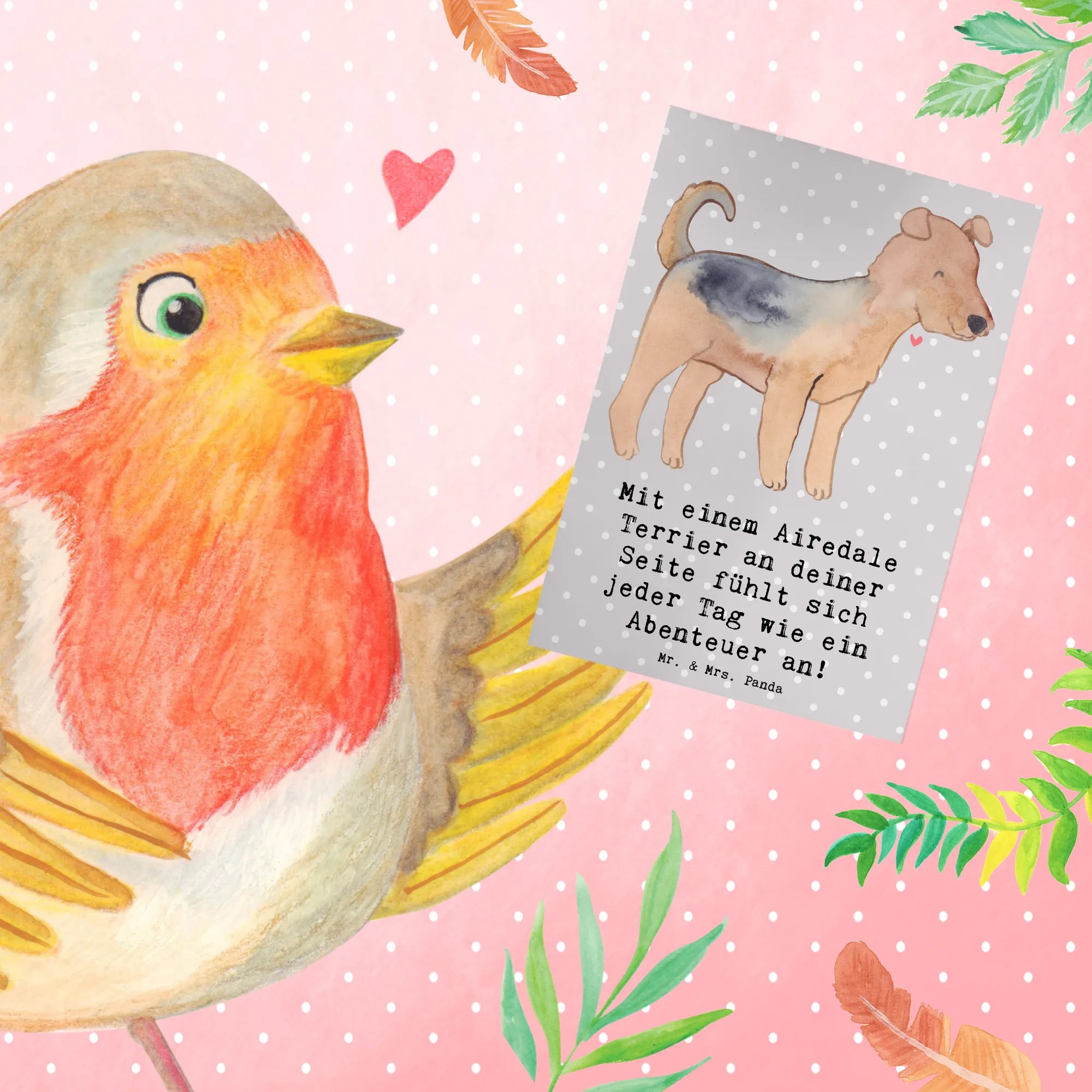 Entdecke die charmante Grußkarte mit dem liebevollen Motiv des Airedale Terriers aus der einzigartigen Hunderassen-Kollektion von Mr. & Mrs. Panda! Diese wunderschöne Grußkarte ist mehr als nur ein Stück Papier; sie ist ein kleines Kunstwerk, das jedem Hundeliebhaber ein Lächeln ins Gesicht zaubern wird.