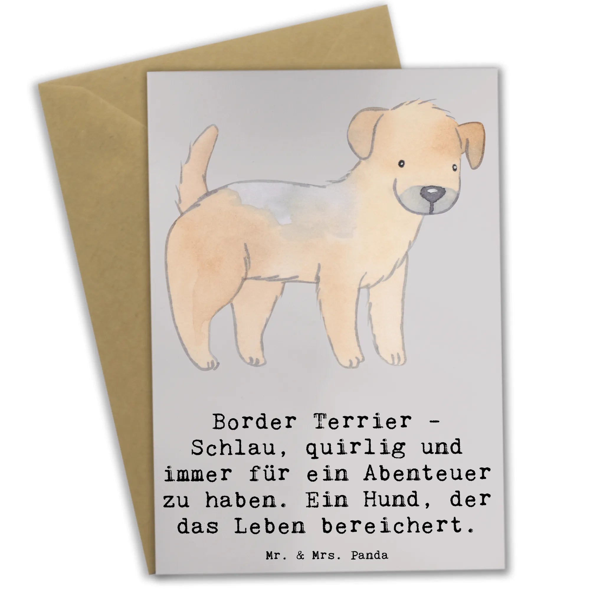 🐾 Bist du ein echter Hundefan? Dann ist die Grußkarte "Border Terrier" von Mr. & Mrs. Panda genau das Richtige für dich! Diese wunderschöne und einzigartige Grußkarte zeigt nicht nur das niedliche Motiv des Border Terriers, sondern bietet auch einen liebevollen Spruch: "Border Terrier - Schlau, quirlig und immer für ein Abenteuer zu haben. Ein Hund, der das Leben bereichert."