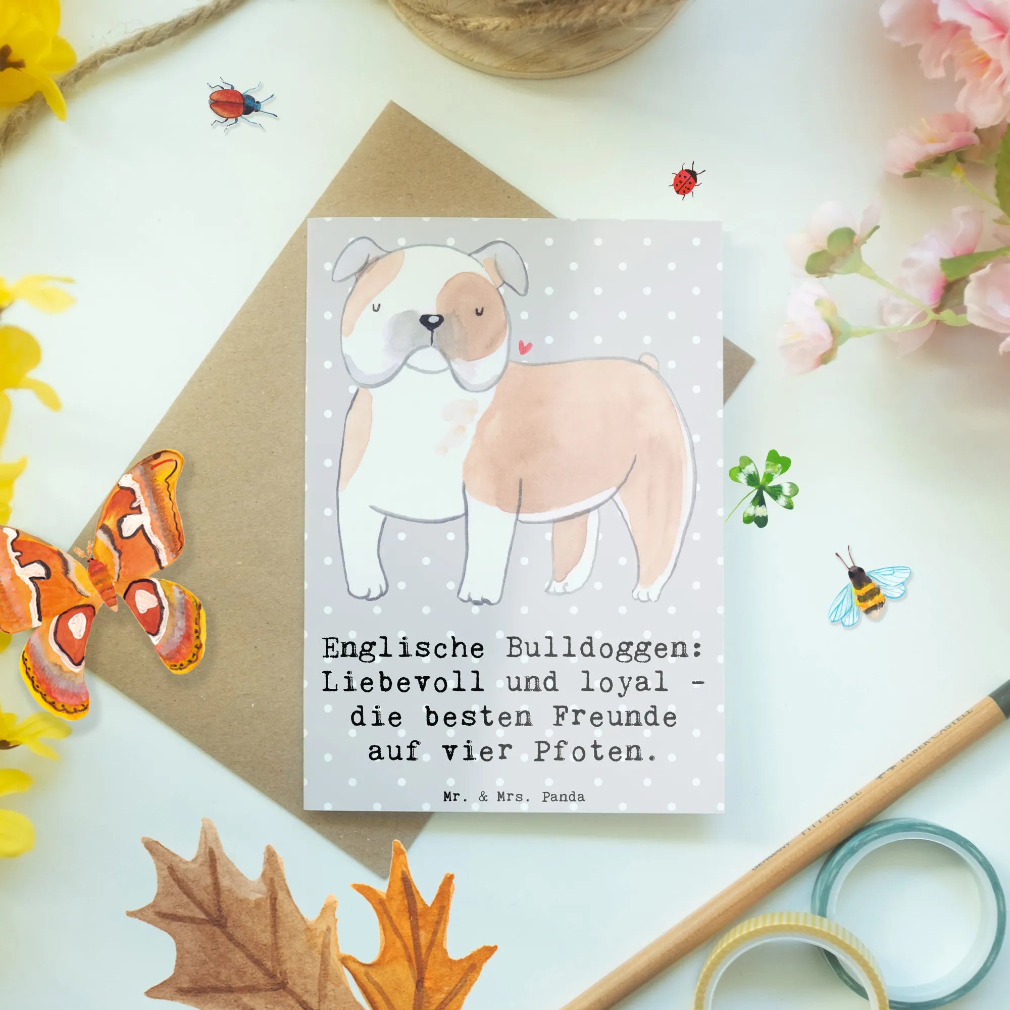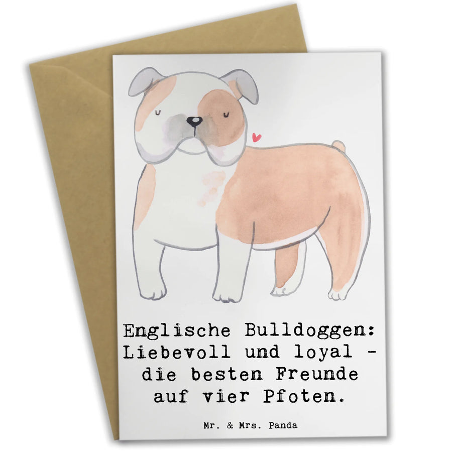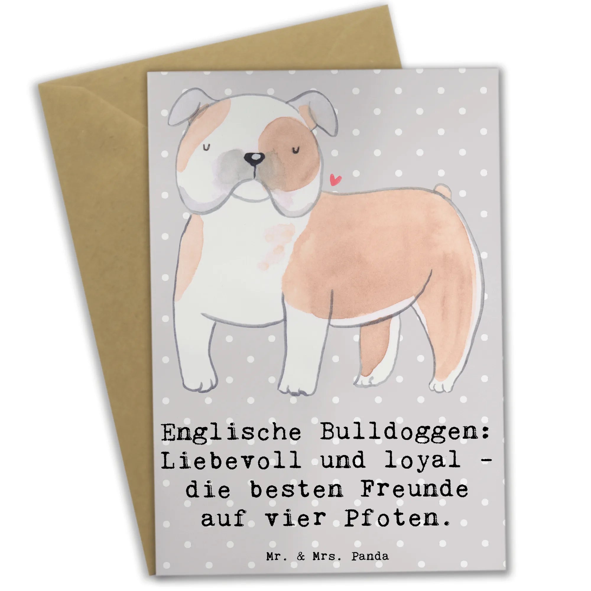 Die Grußkarte mit der Englischen Bulldogge von Mr. & Mrs. Panda ist das perfekte Geschenk für alle Hundeliebhaber und die besten Freunde auf zwei Beinen. Egal, ob du jemanden zu einem besonderen Anlass wie einem Geburtstag, einer Hochzeit oder einfach nur so beschenken möchtest – diese Karte bringt Freude und Liebe in jedes Herz!