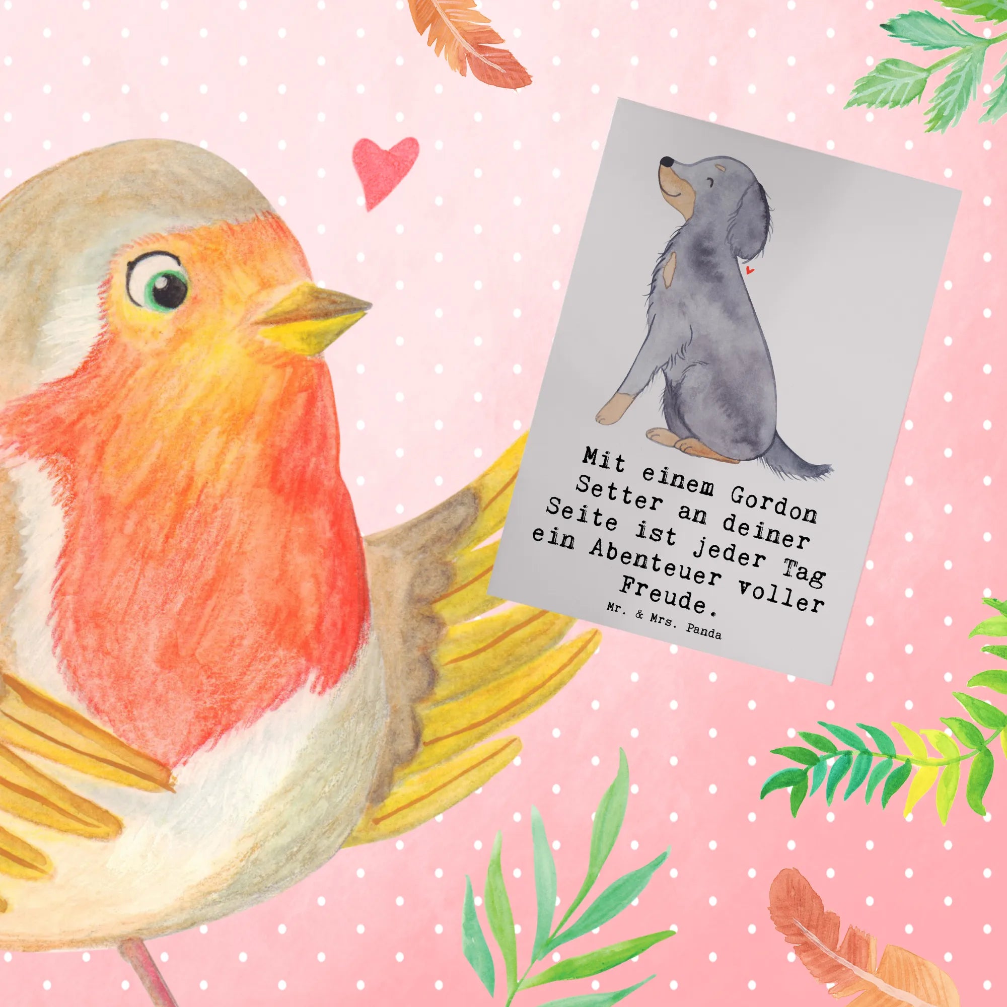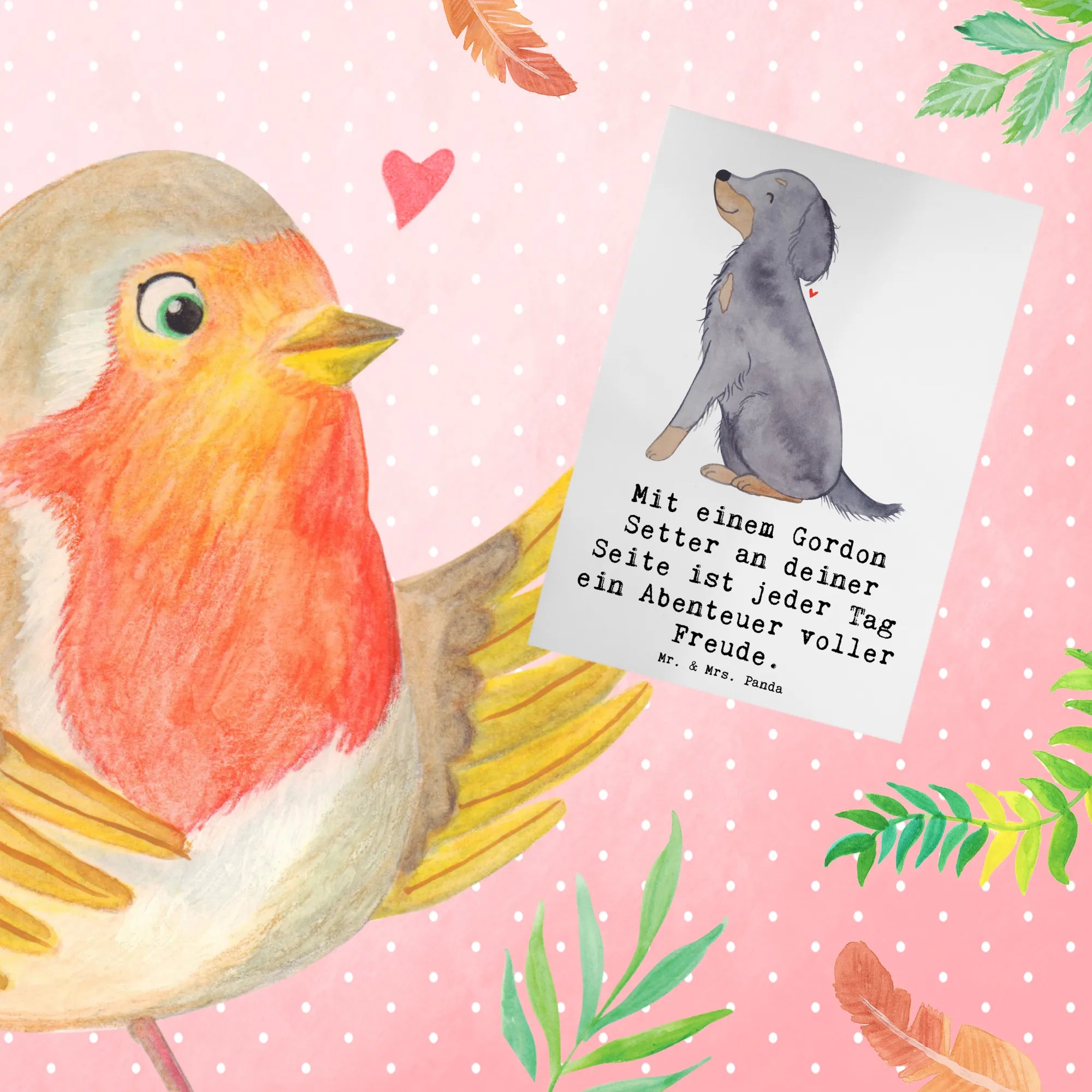Entdecke die wunderschöne Grußkarte mit dem charmanten Motiv des Gordon Setters von Mr. & Mrs. Panda! Diese Karte ist nicht nur ein einfacher Gruß, sondern ein liebevoll gestaltetes Kunstwerk, das die Herzen von Hundeliebhabern höher schlagen lässt. Mit dem Spruch "Mit einem Gordon Setter an deiner Seite ist jeder Tag ein Abenteuer voller Freude" bringt diese Karte die Freude und Lebensfreude, die ein vierbeiniger Freund ins Leben bringt, perfekt zum Ausdruck. Egal, ob du eine Einladung zu einer Geburtstagsfeier, eine Hochzeitskarte oder einfach nur eine herzliche Glückwunschkarte versenden möchtest, diese Grußkarte setzt alles in das richtige Licht.