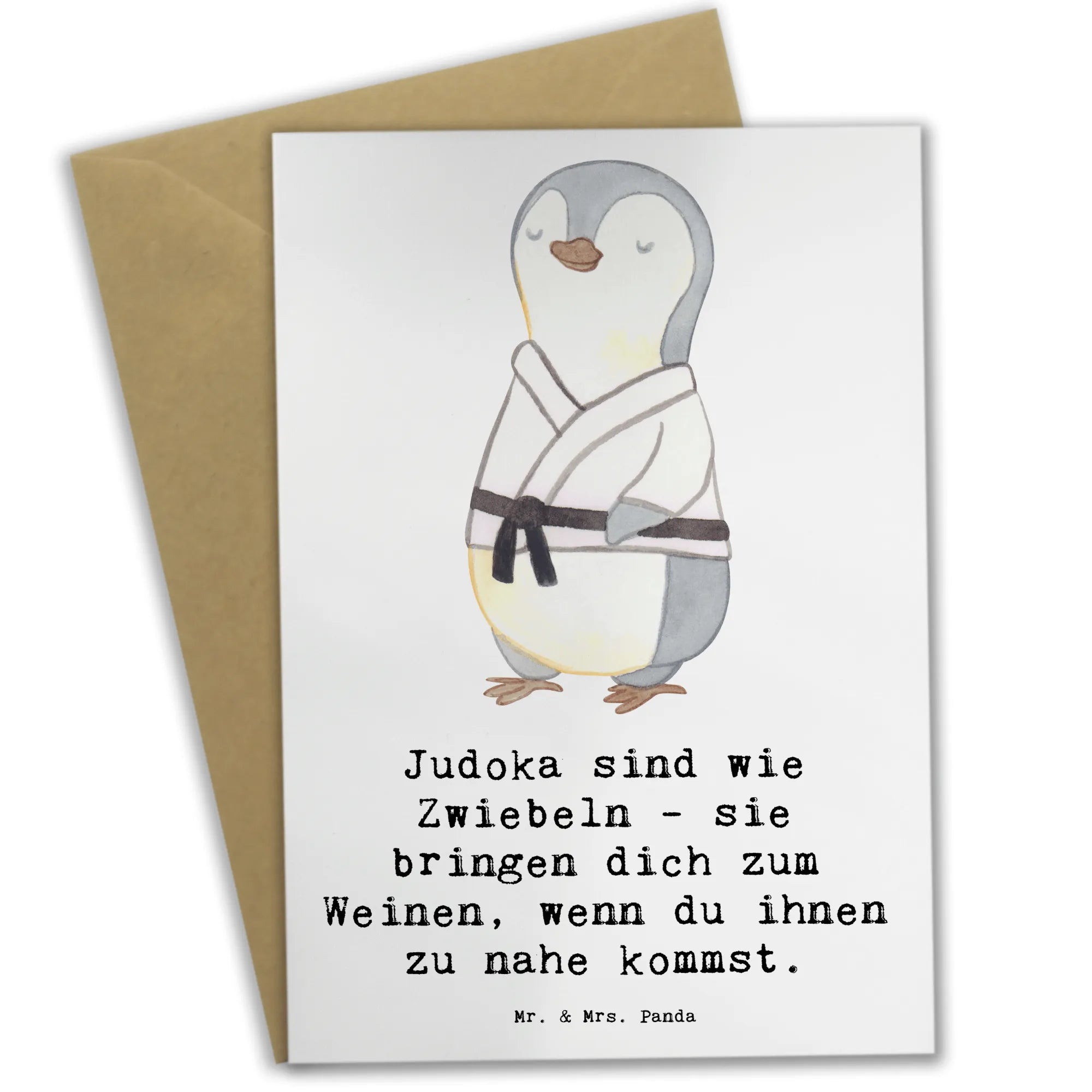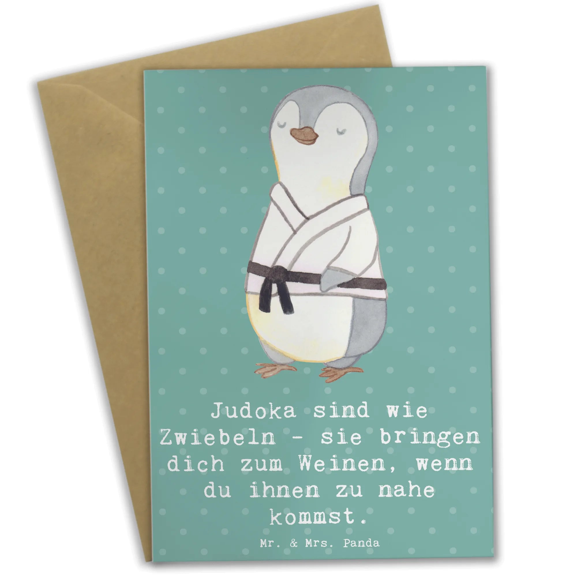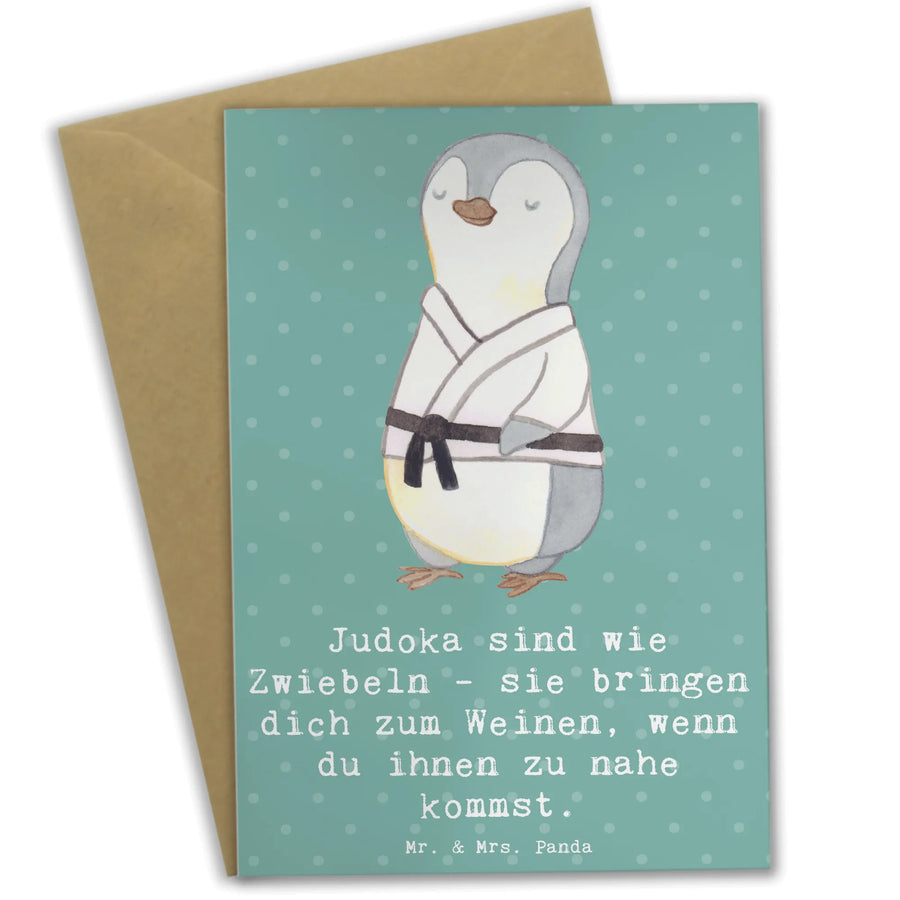 Mit dem humorvollen Spruch 'Judoka sind wie Zwiebeln - sie bringen dich zum Weinen, wenn du ihnen zu nahe kommst.' wird die Karte zum idealen Geschenk für Trainer, Vereinskollegen oder passionierte Judokas. Sie ist perfekt für zahlreiche Anlässe wie Geburtstagsfeiern, Sportfeste oder als kleine Aufmunterung zum Training.