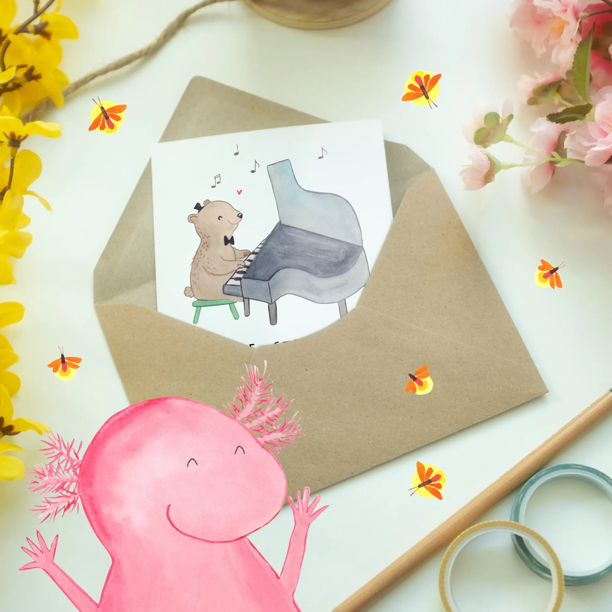 Die Grußkarte mit dem zauberhaften Klavier-Motiv von Mr. & Mrs. Panda ist nicht nur eine Karte, sondern ein kleines Kunstwerk. Egal, ob Du jemandem zu einem besonderen Anlass gratulieren oder einfach nur einen lieben Gruß senden möchtest, diese Karte macht es möglich. Die edlen, schwarz-weißen Tastenkombinationen des Klaviers strahlen eine gewisse Romantik und Wärme aus, die jeden Empfänger berühren wird. Mit unserem Spruch 'Klaviere: Staubfänger mit schwarz-weißen Tasten.' bringst Du ein Schmunzeln in die Gesichter der Musikhobbyisten.
