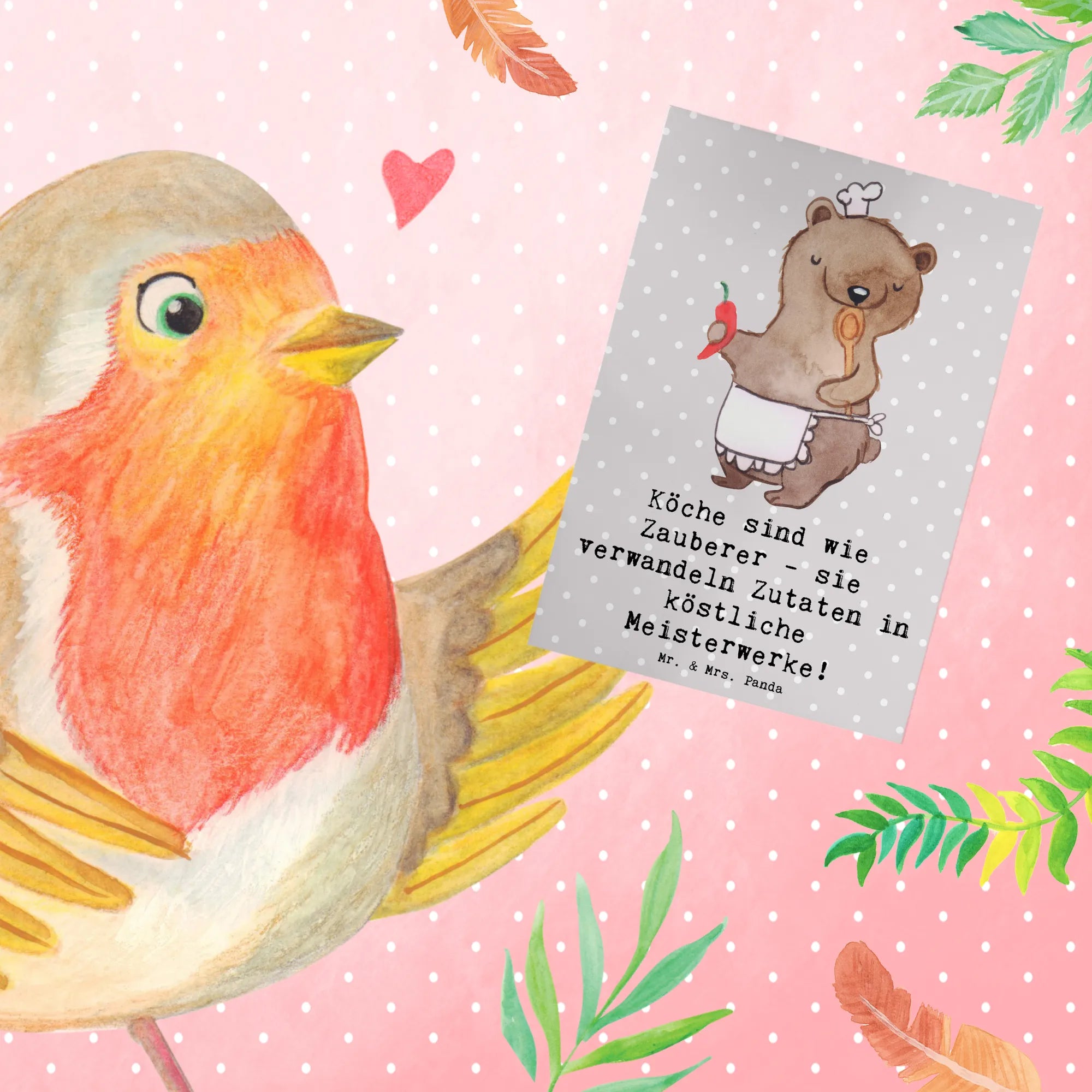 Entdecke die wunderbare Grußkarte "Koch" aus der einzigartigen Berufe-Kollektion von Mr. & Mrs. Panda! Diese liebevoll gestaltete Karte ist perfekt für alle, die ihre Leidenschaft für die Küche und das Kochen zum Ausdruck bringen möchten.