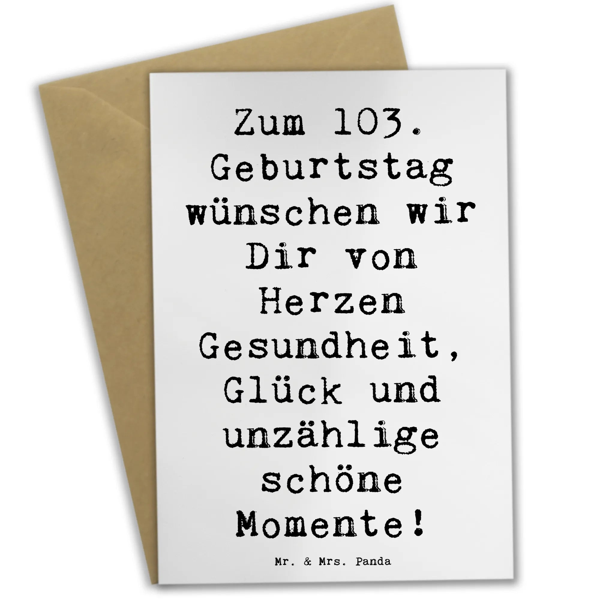 Feiere den einzigartigen 103. Geburtstag mit der liebevollen Grußkarte von Mr. & Mrs. Panda! 🎉 Diese wunderschöne Karte ist nicht nur ein Hochgenuss für die Augen, sondern auch eine wunderbare Möglichkeit, Deine herzlichsten Wünsche für Gesundheit, Glück und unzählige schöne Momente zu übermitteln.