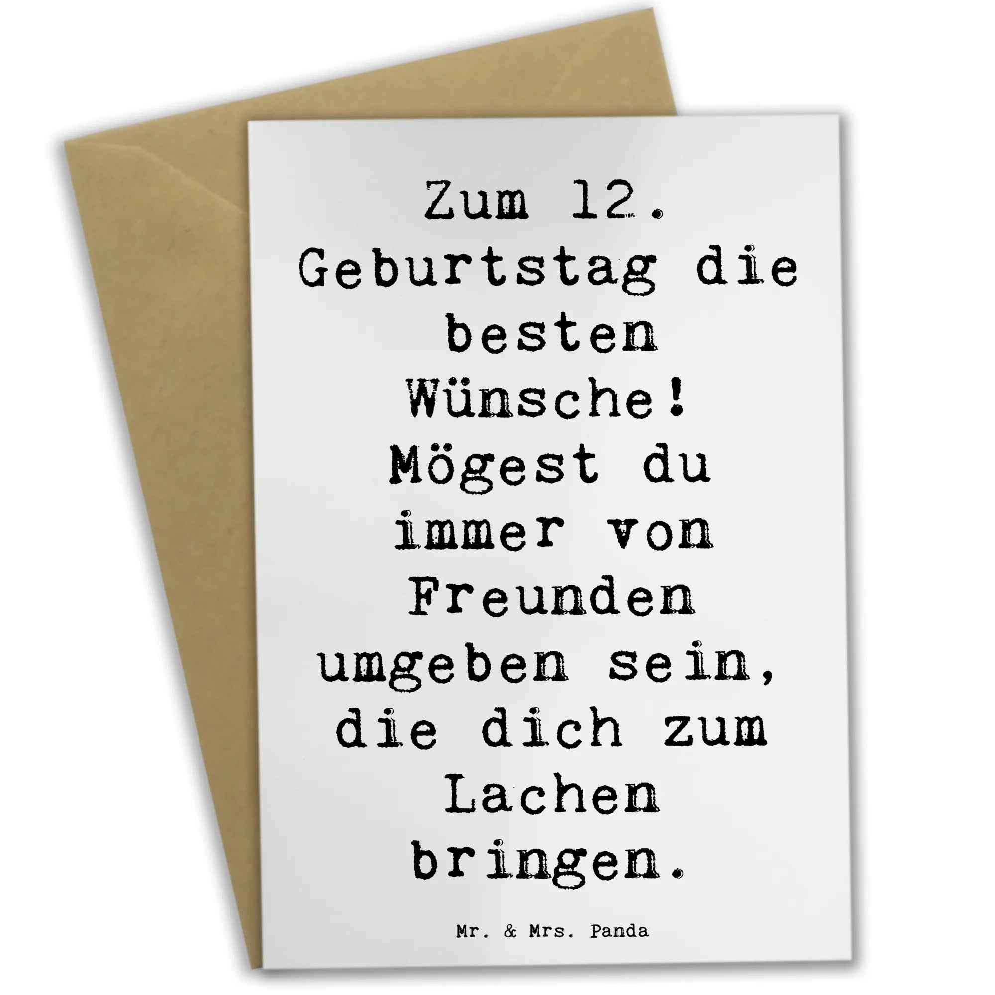 Die wunderschöne Grußkarte von Mr. & Mrs. Panda für den 12. Geburtstag ist das perfekte Geschenk für jeden, der einen besonderen Menschen an seinem Ehrentag feiern möchte. Mit einem liebevollen Motiv und dem herzlichen Spruch "Zum 12. Geburtstag die besten Wünsche! Mögest du immer von Freunden umgeben sein, die dich zum Lachen bringen." bringt diese Karte nicht nur Freude, sondern auch eine persönliche Note in jedes Geschenk. Sie ist ideal für Eltern, Großeltern, Verwandte und Freunde, die dem Geburtstagskind ihre besten Wünsche übermitteln möchten.